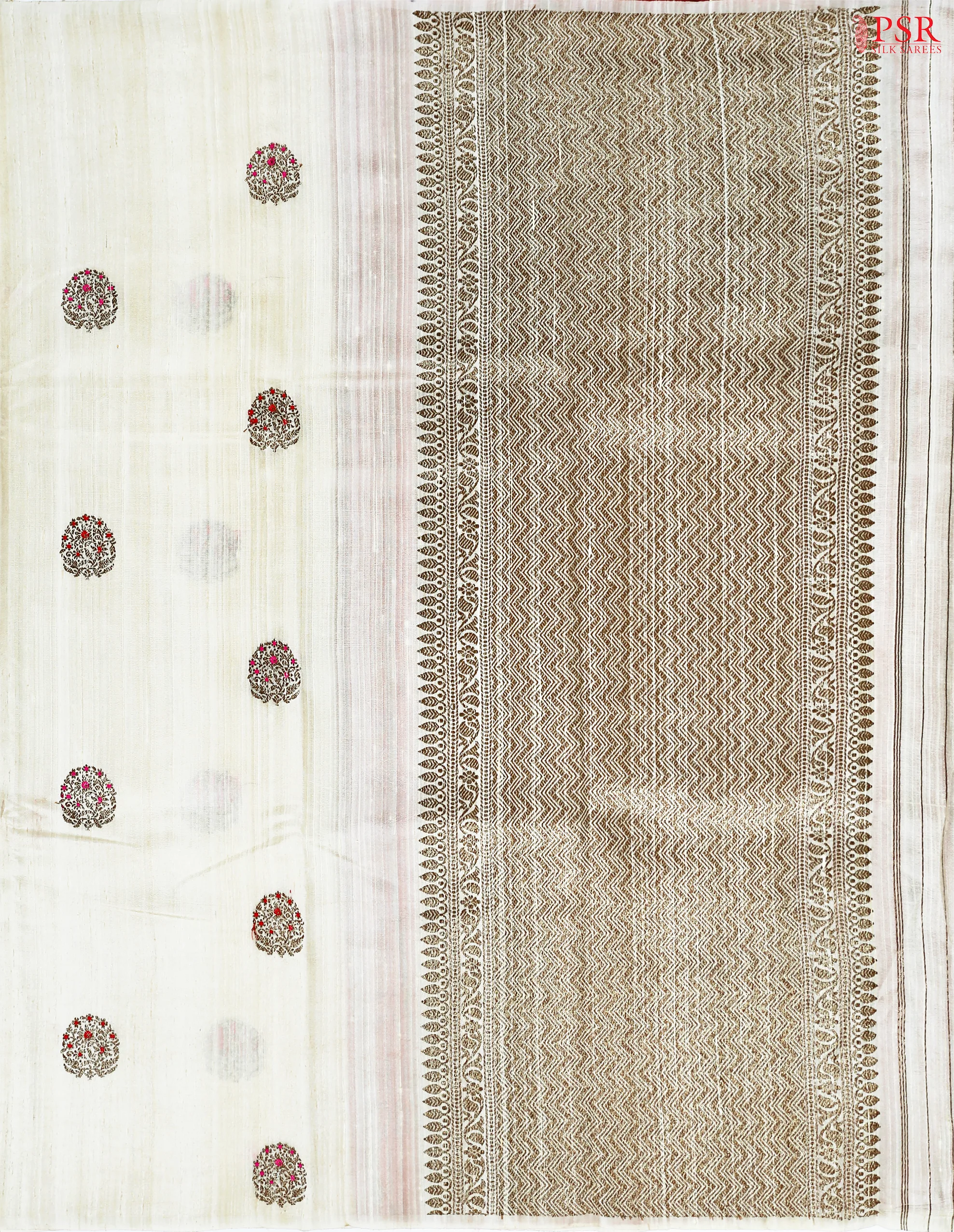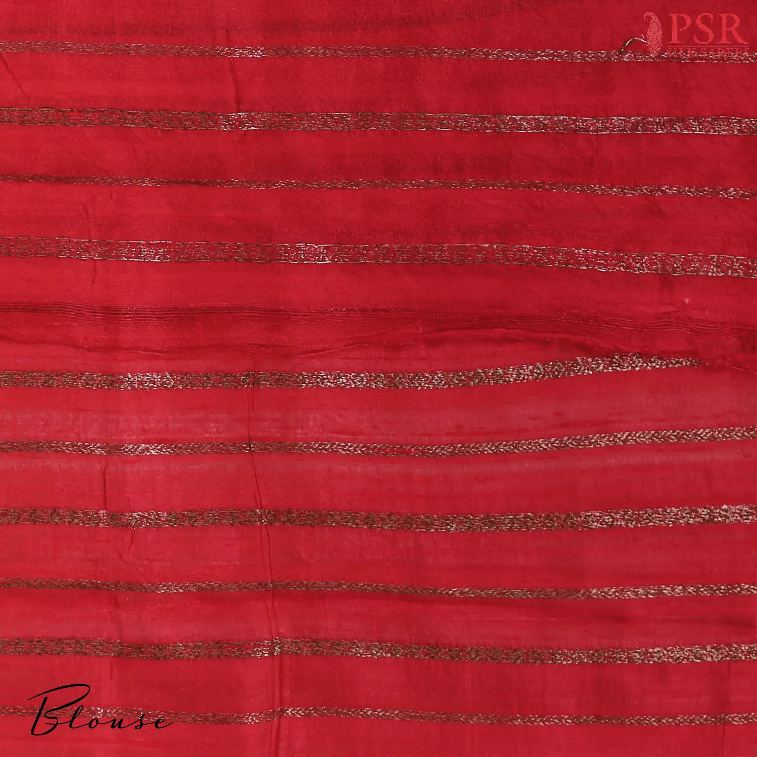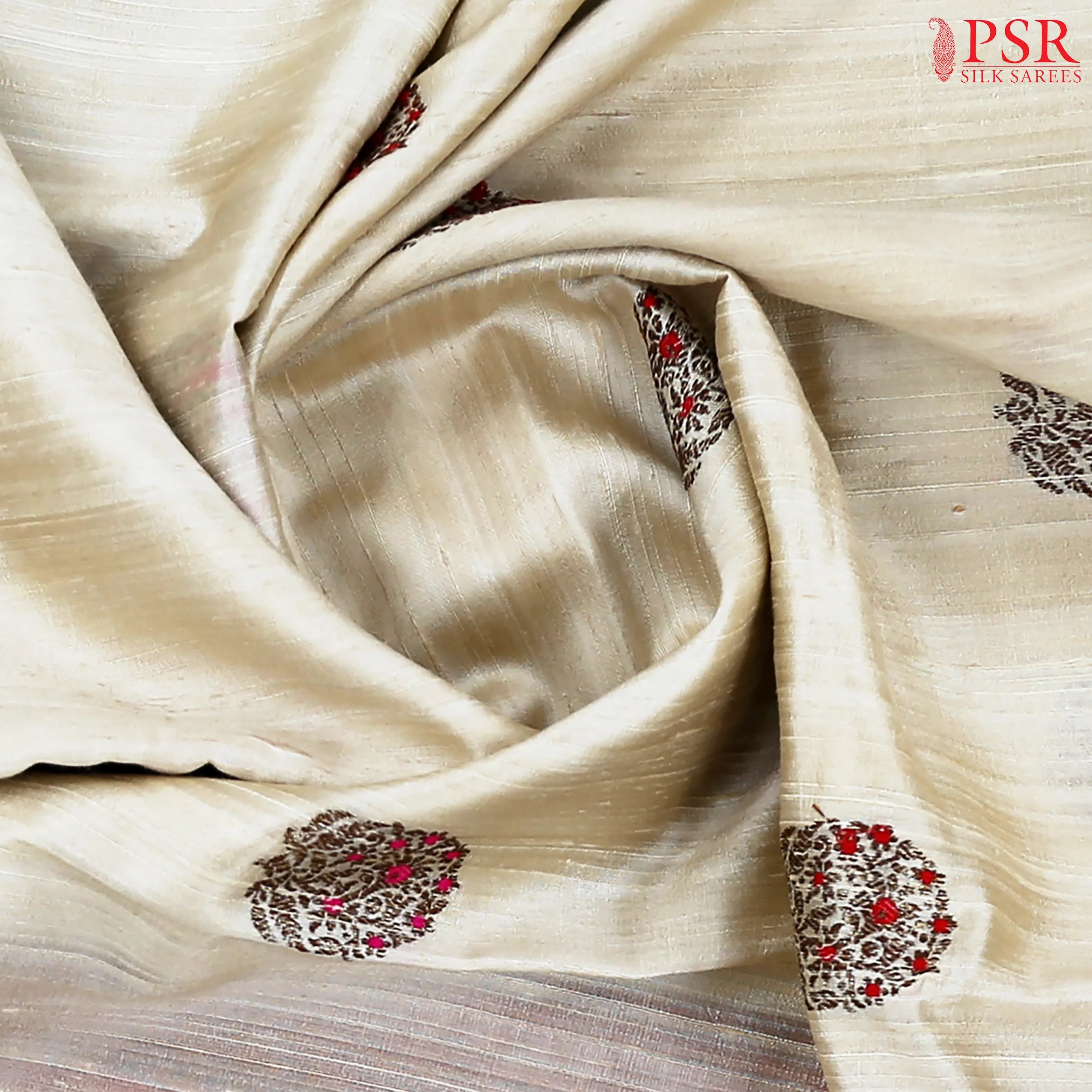 Timeless Beauty: Beige & Red Banaras Jute Silk Saree by PSR Silks!