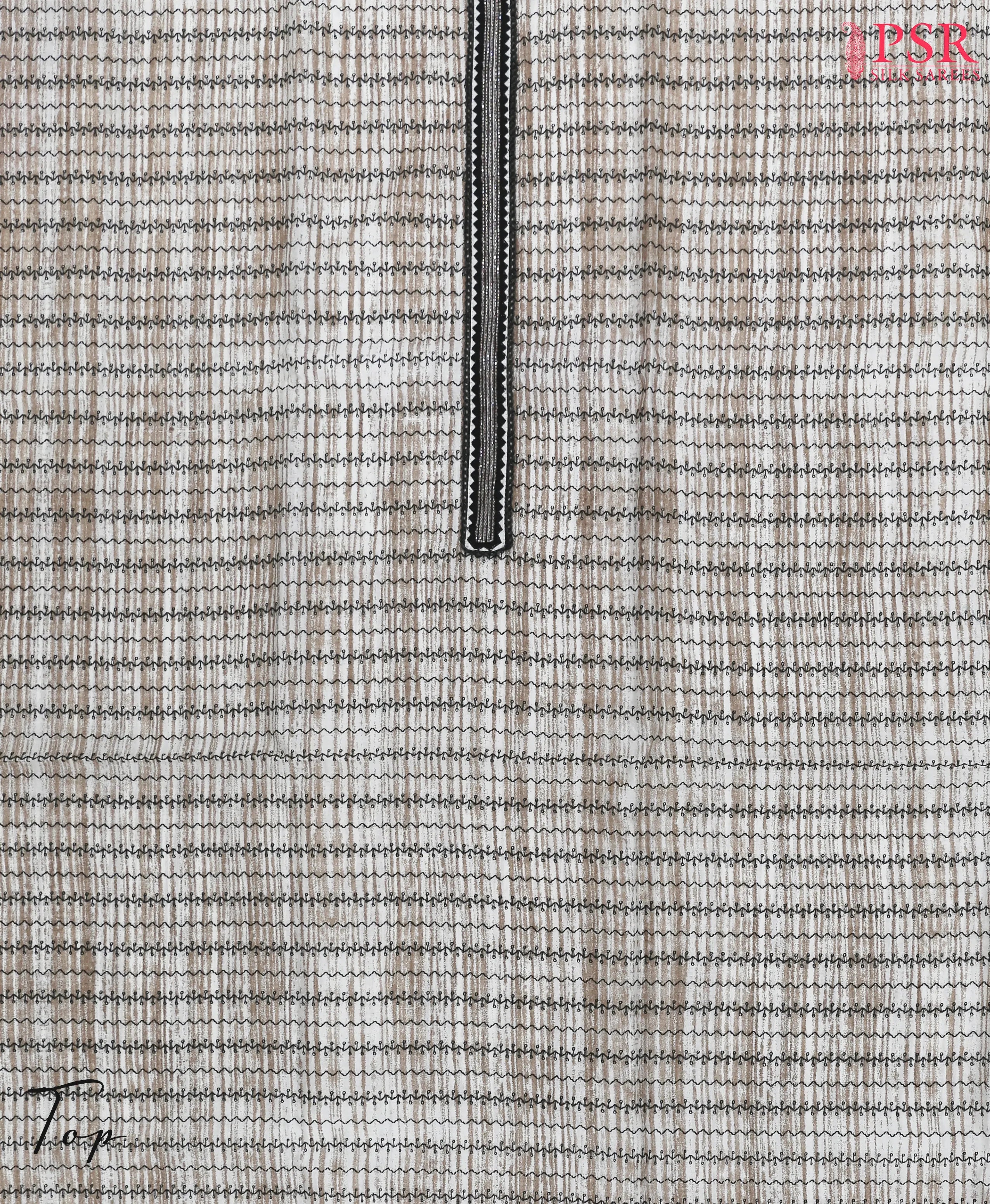 PSR Silks presents Beige & Black Chanderi Silk Cotton Dress Material.