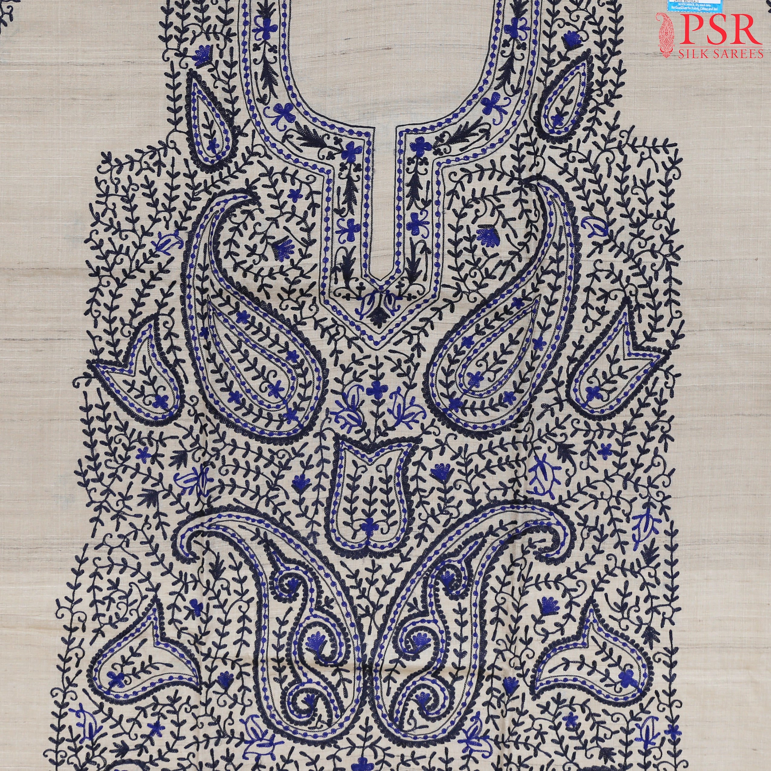 PSR Silks presents Beige & Dark Blue Tussar Silk Dress Material.