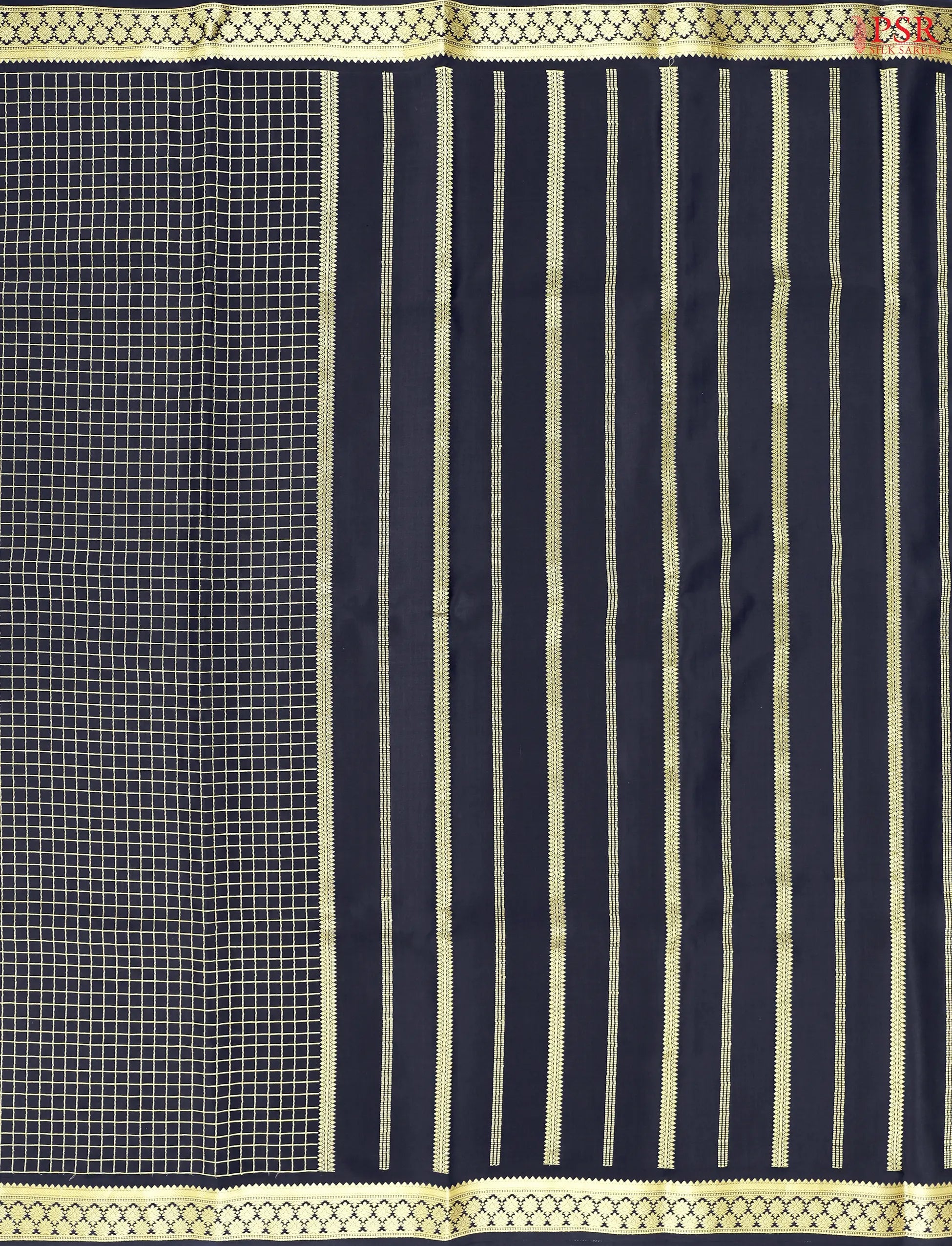 PSR Silk Sarees presents a stunning Black Mysore Silk Saree, crafted in smooth and luxurious fabric that drapes beautifully with classic elegance.