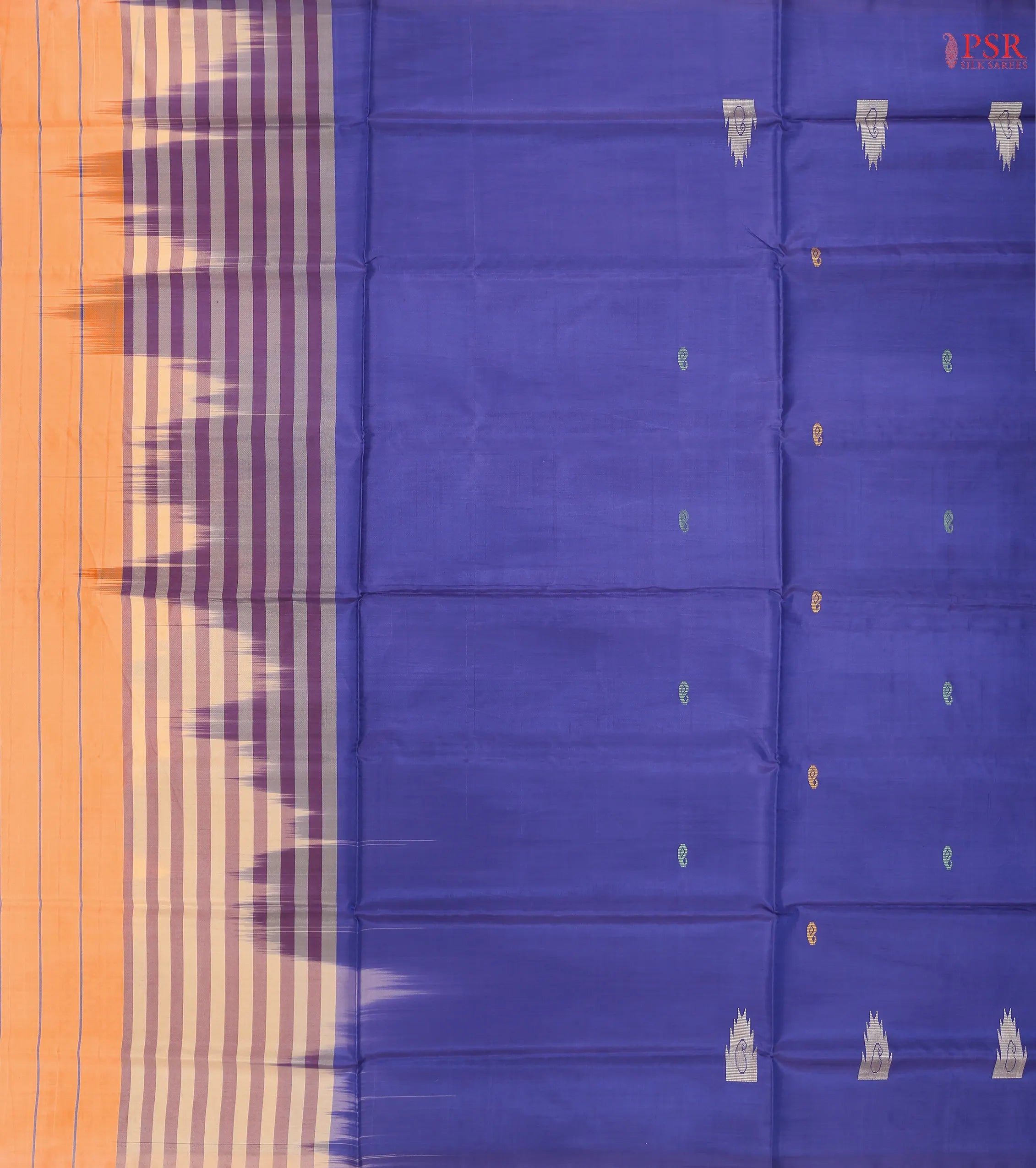 PSR Silk Sarees presents a Cantaloupe Vazhainaar Silk saree with combination of Navy Blue color.