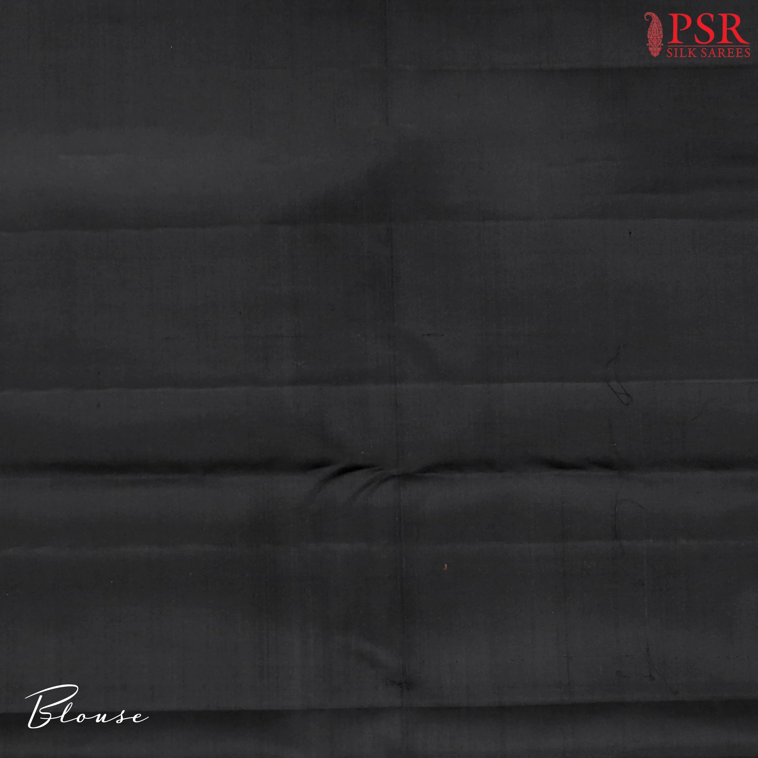 The saree is gracefully complemented by a Black traditional zari work pallu and paired with a plain Black blouse, enhancing its regal appeal.