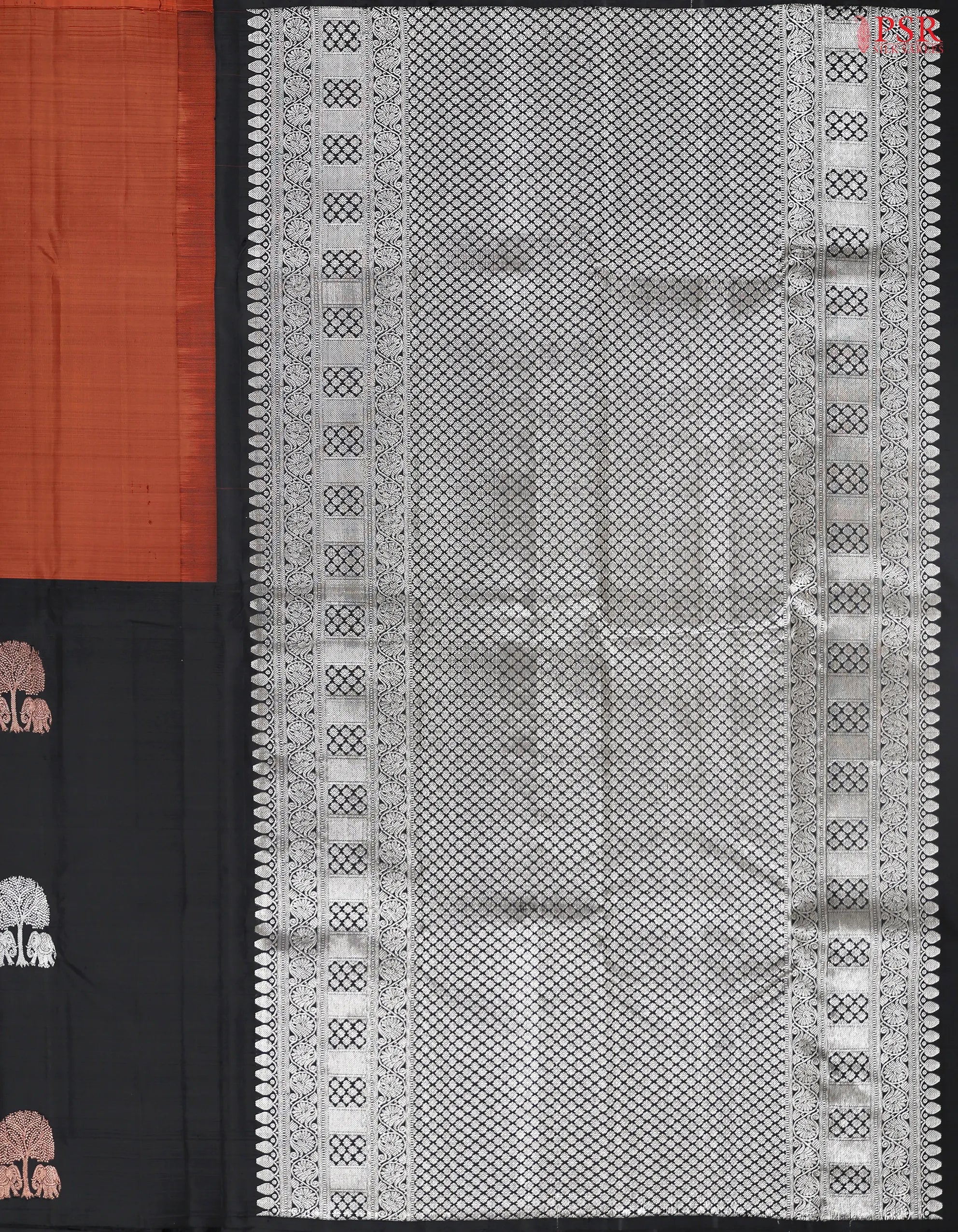 Copper Red & Black Half-and-Half Kanchipuram Silk Saree – PSR Silk Sarees