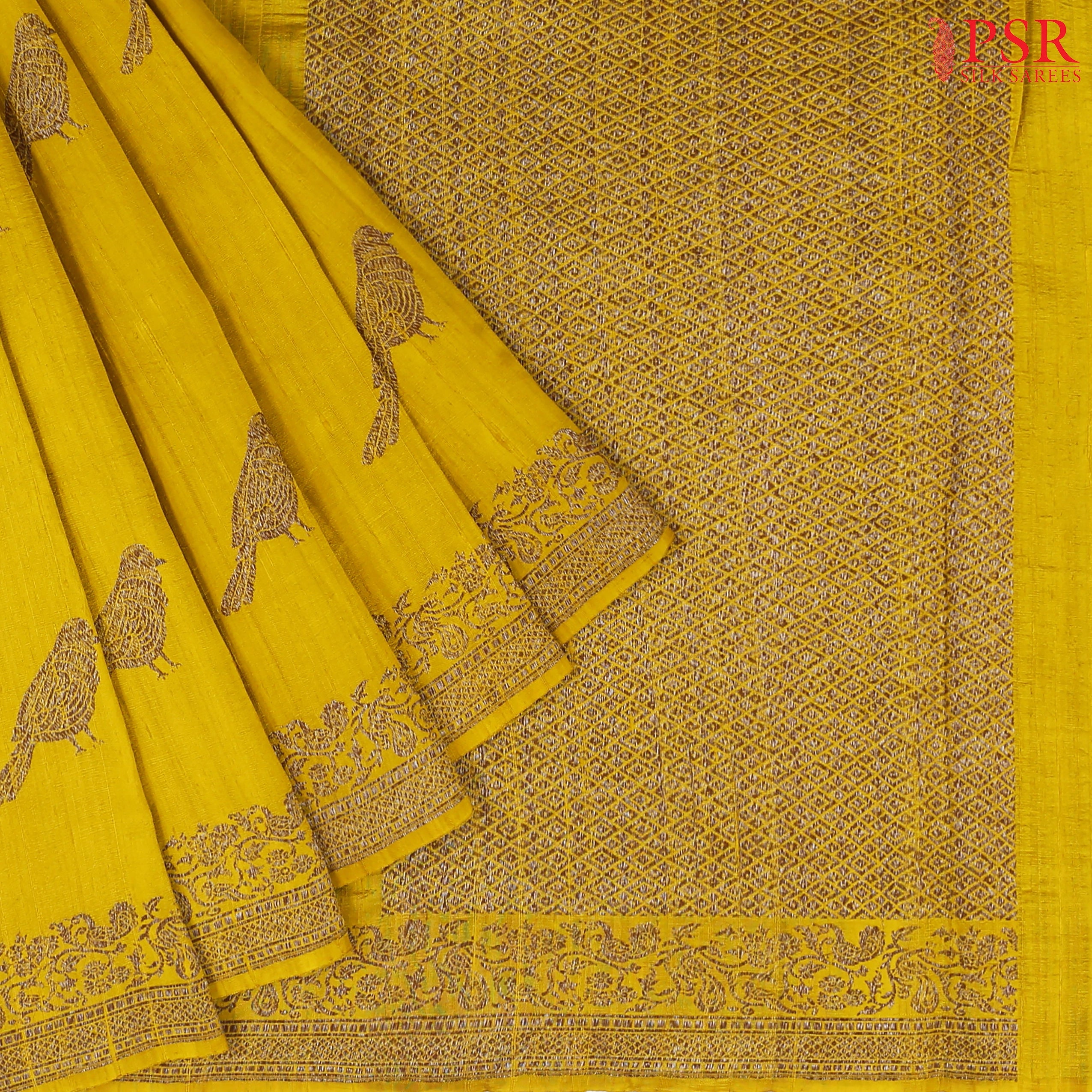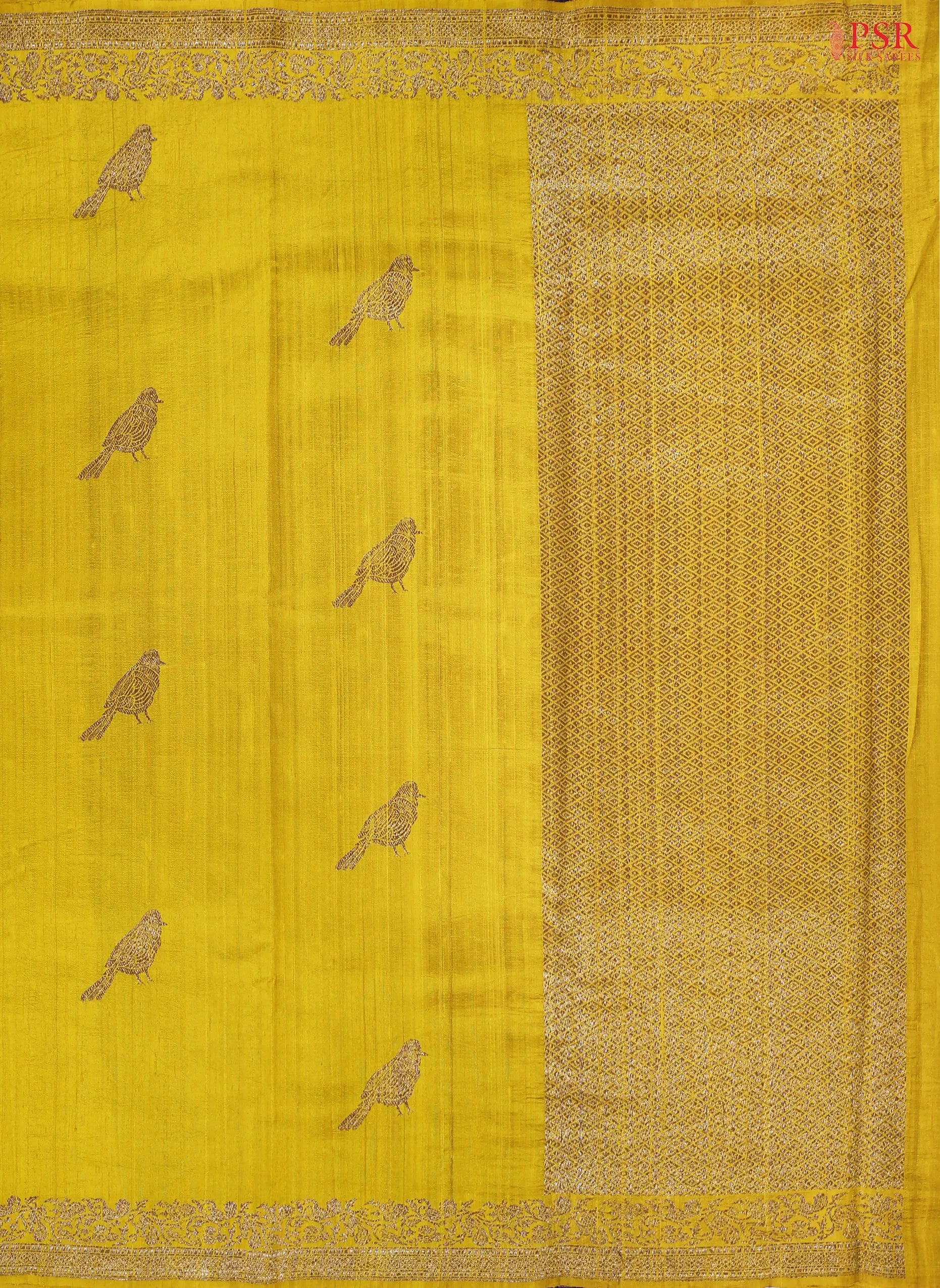 PSR Silk Sarees presents an enchanting Corn Yellow Banaras Jute Silk Saree, radiating warmth and elegance.