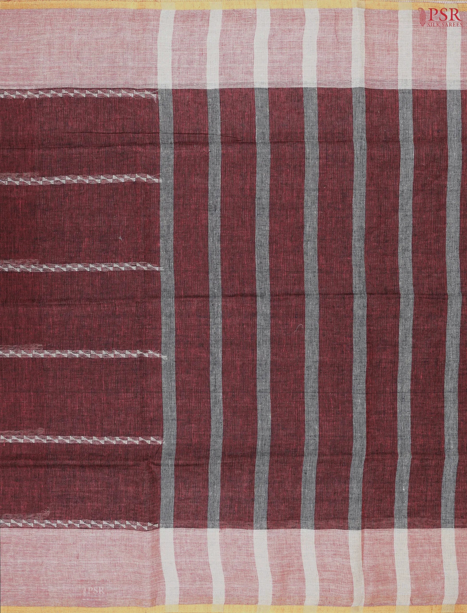 PSR Silk Sarees presents a Crimson Brown colored Linen saree.