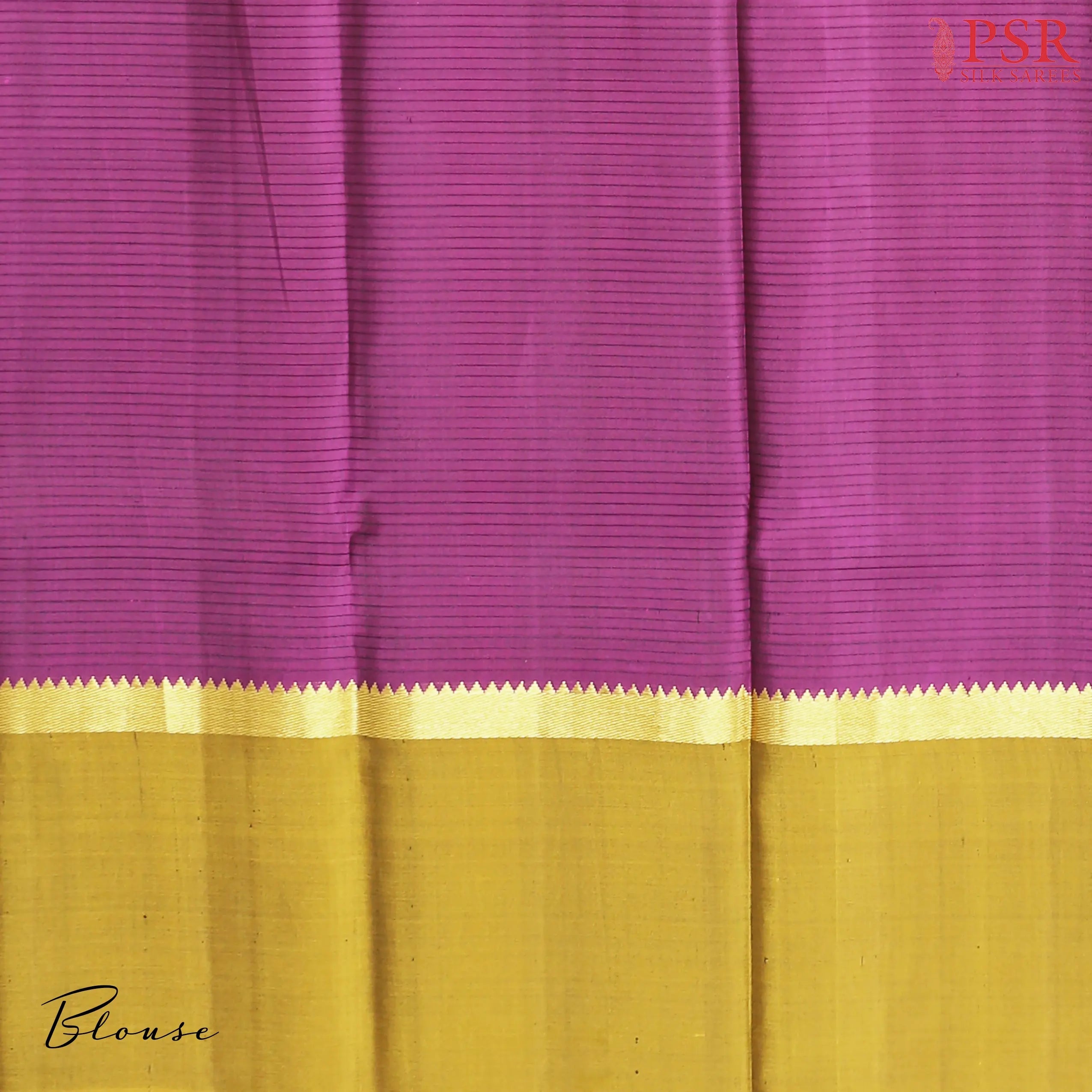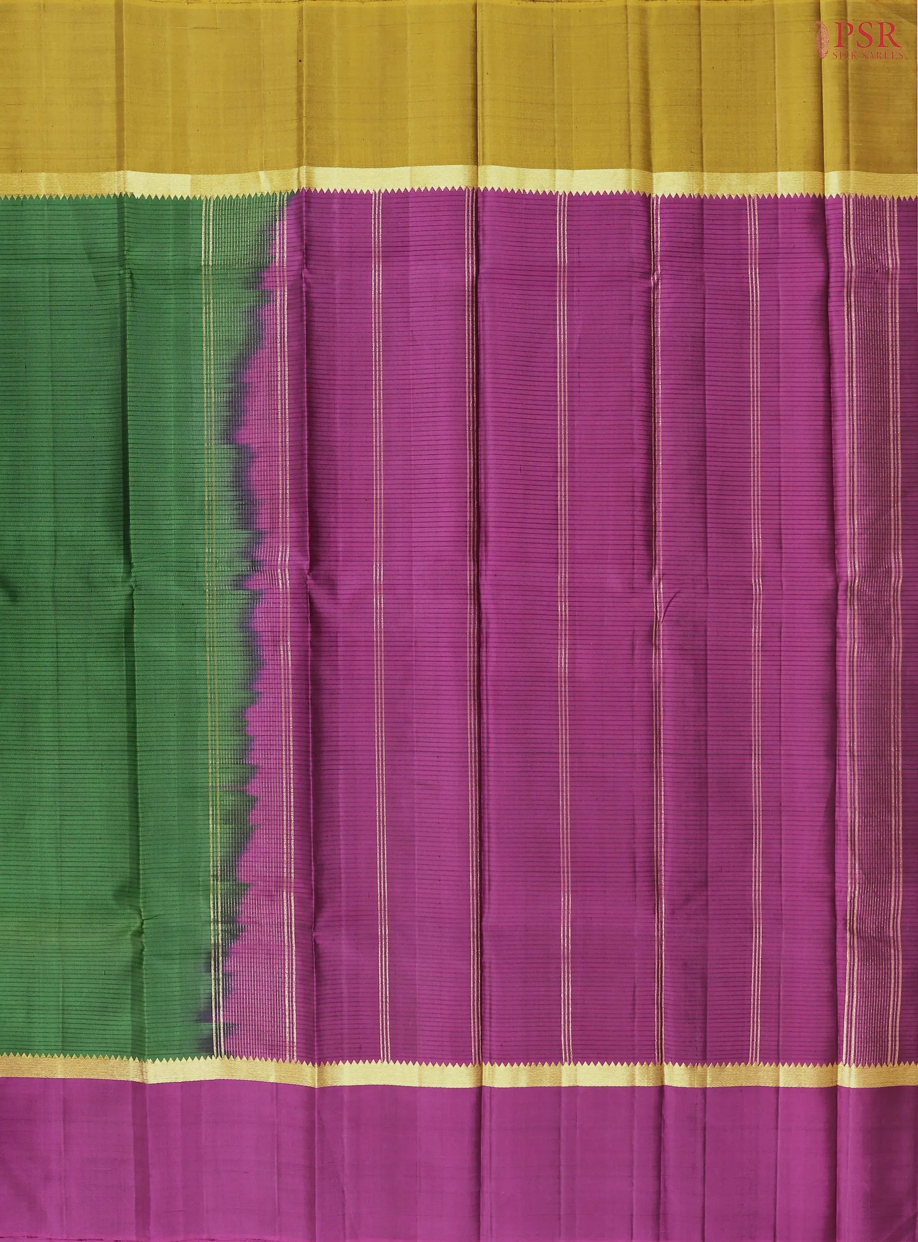 PSR Silk Sarees brings you a Dark Green Arani Silk with a refined blend of tradition and elegance with contrasting Magneta Purple combination.