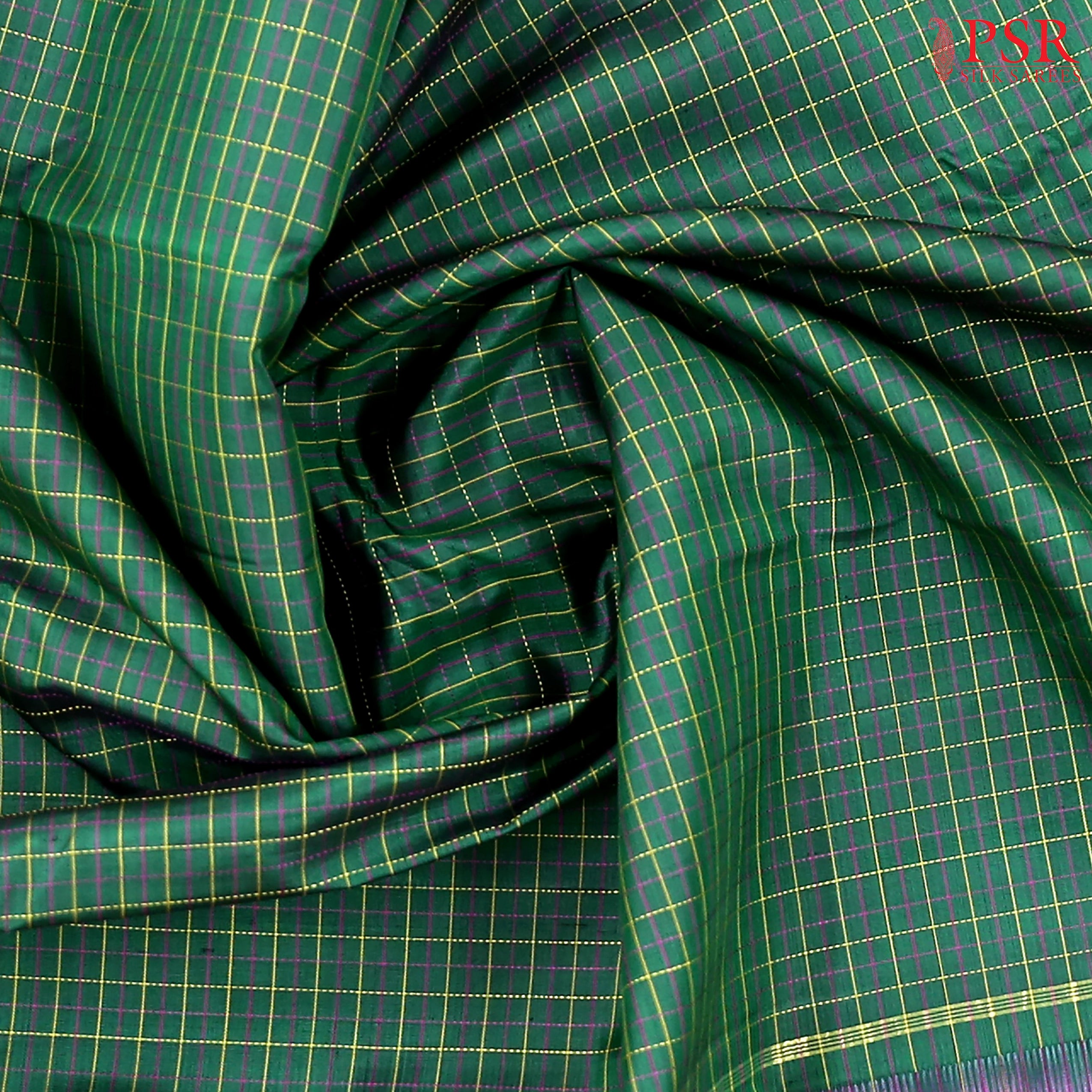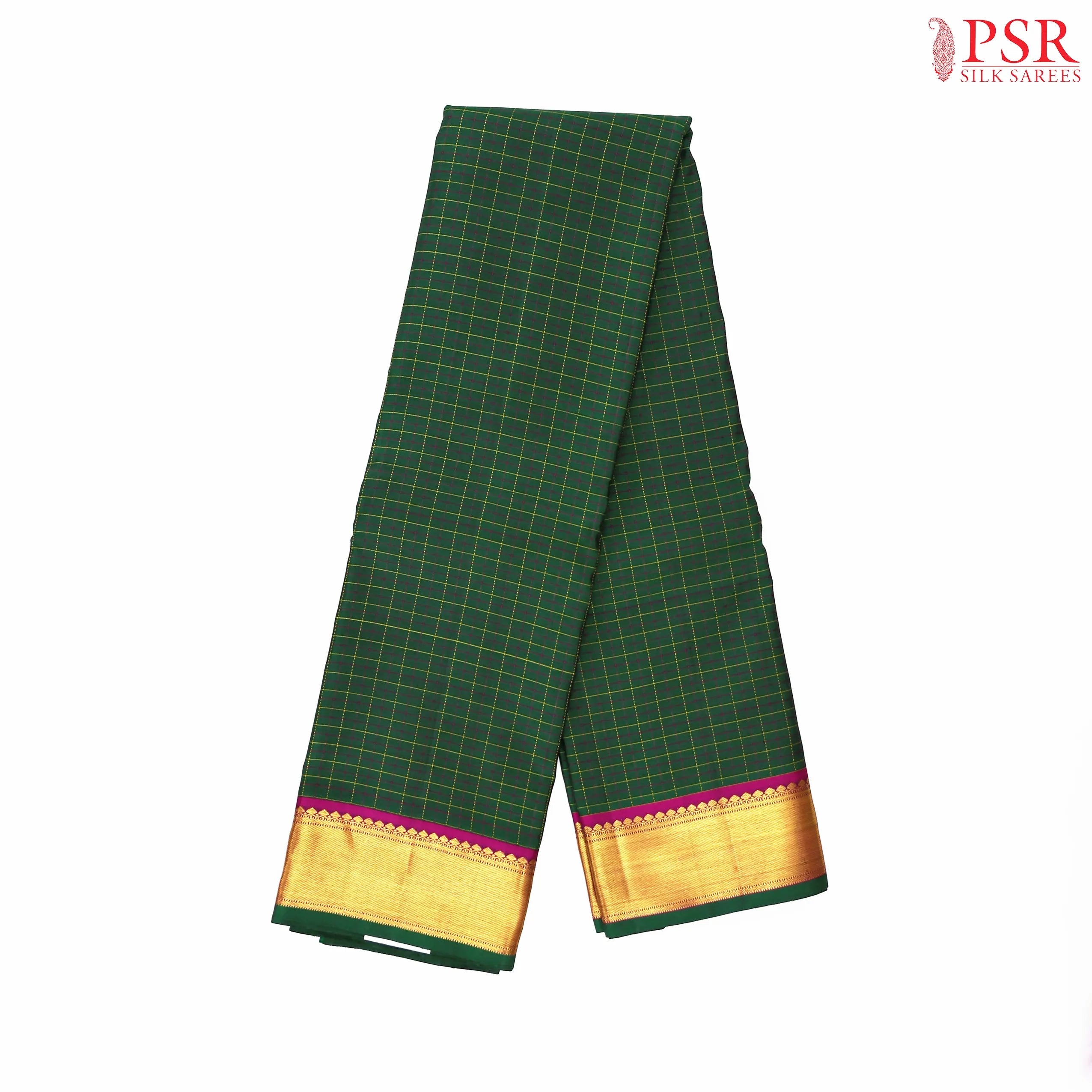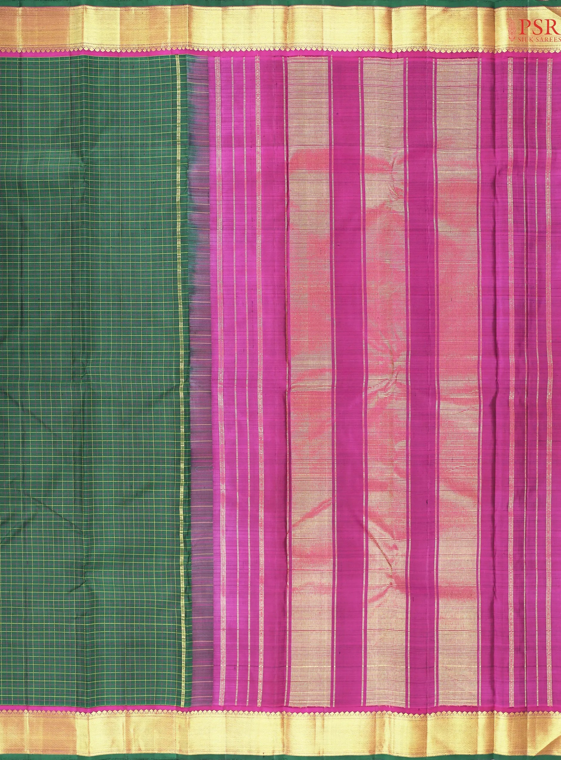 PSR Silk Sarees Presents: Dark Green Kanchipuram Silk Saree – A Timeless Classic with a Fandango Purple contrast