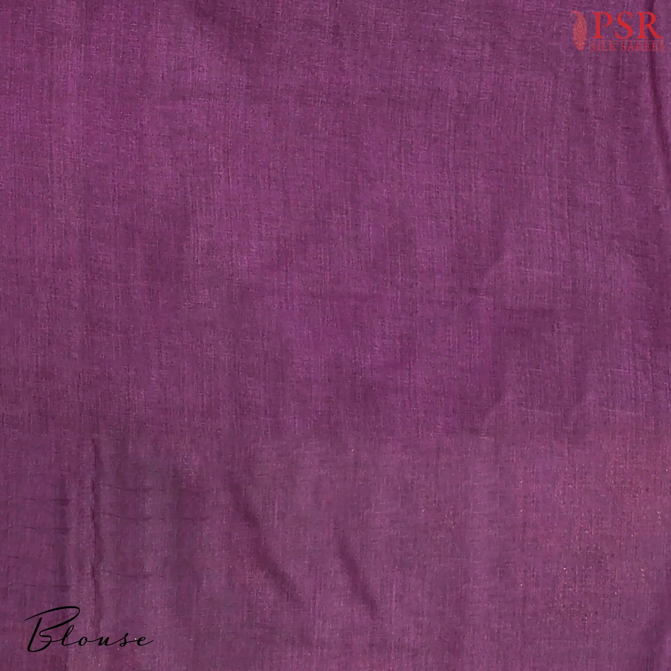 This refined saree features antique-style zari floral motifs , adding a subtle yet rich shimmer to its soft Tussar texture. The contrasting Dark Purple pallu and border are adorned with traditional zari work, enhancing its classic charm. Completing the ensemble is a plain Dark Purple blouse, perfectly complementing the saree’s graceful aesthetic.