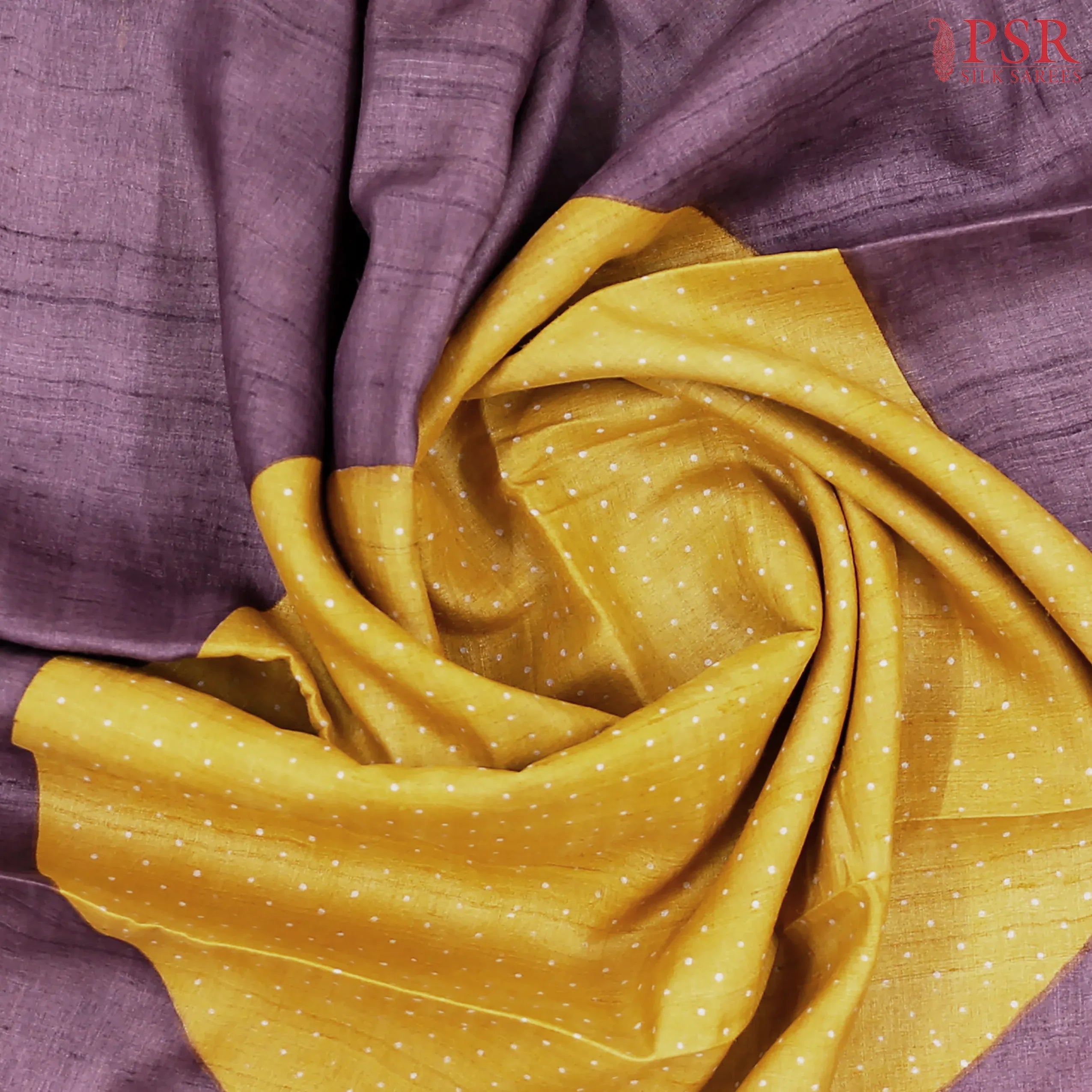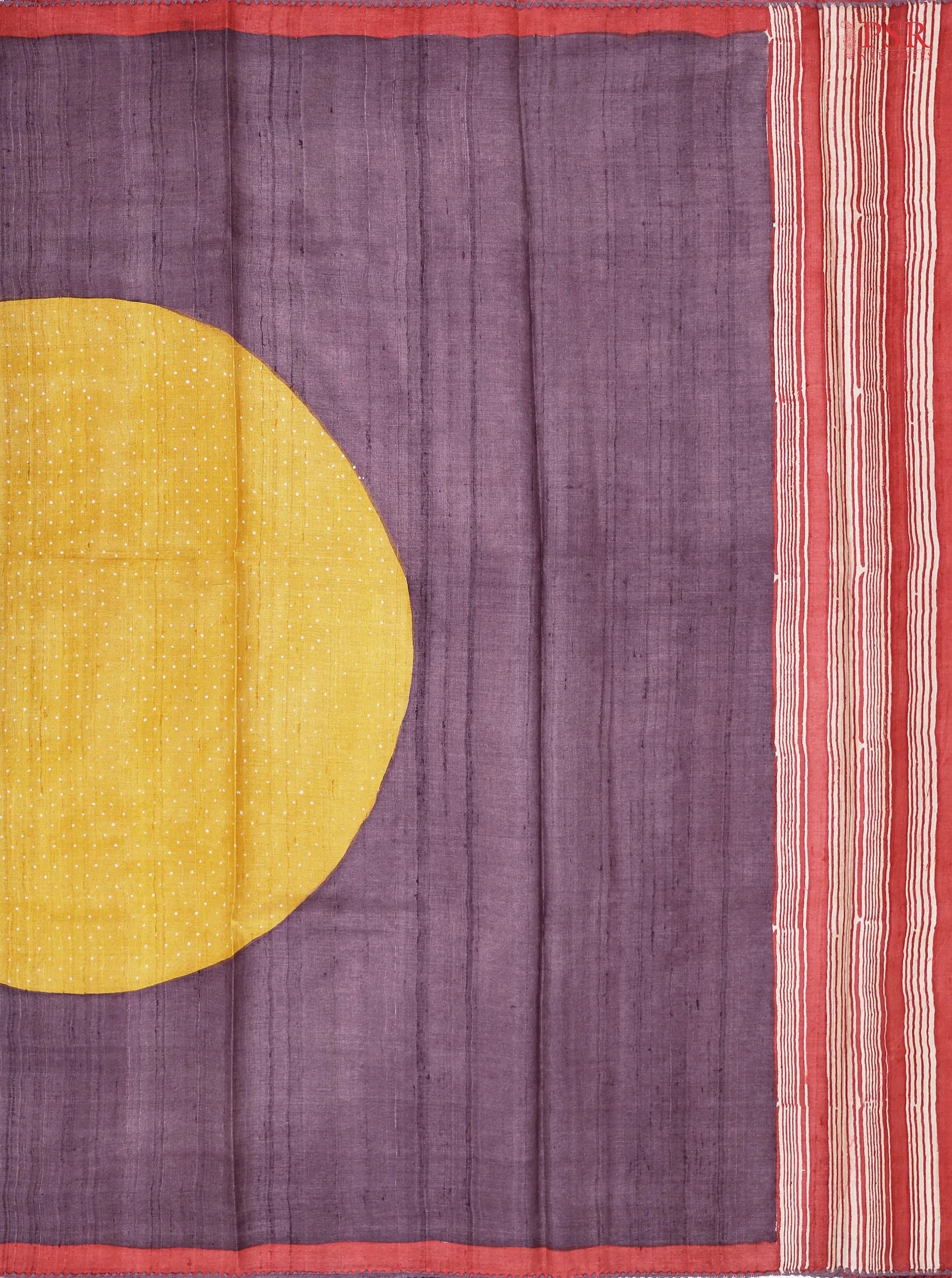 PSR Silk Sarees presents a Dark Purple Kadhi Tussar Silk saree with a vibrant combination of Cardinal Red, blending contemporary charm with traditional elegance.