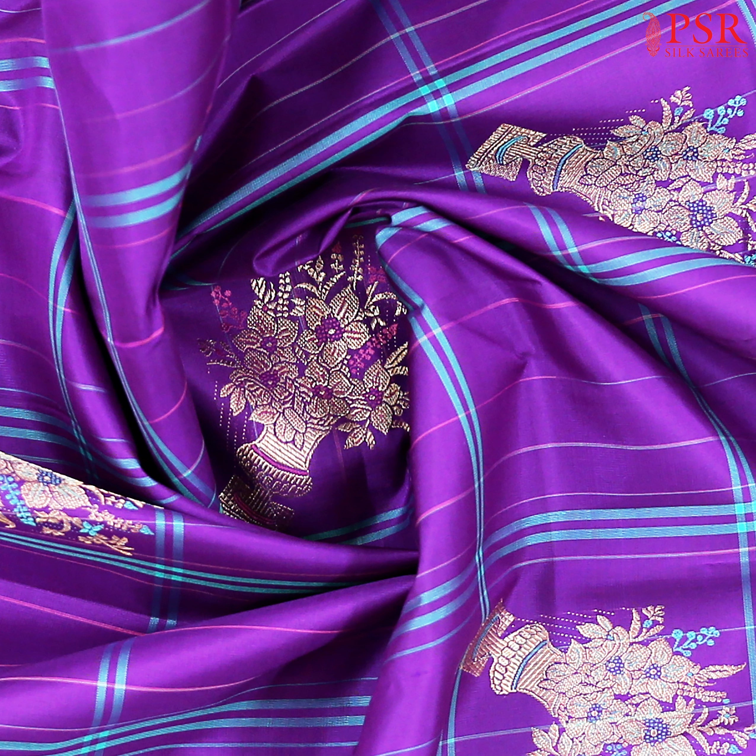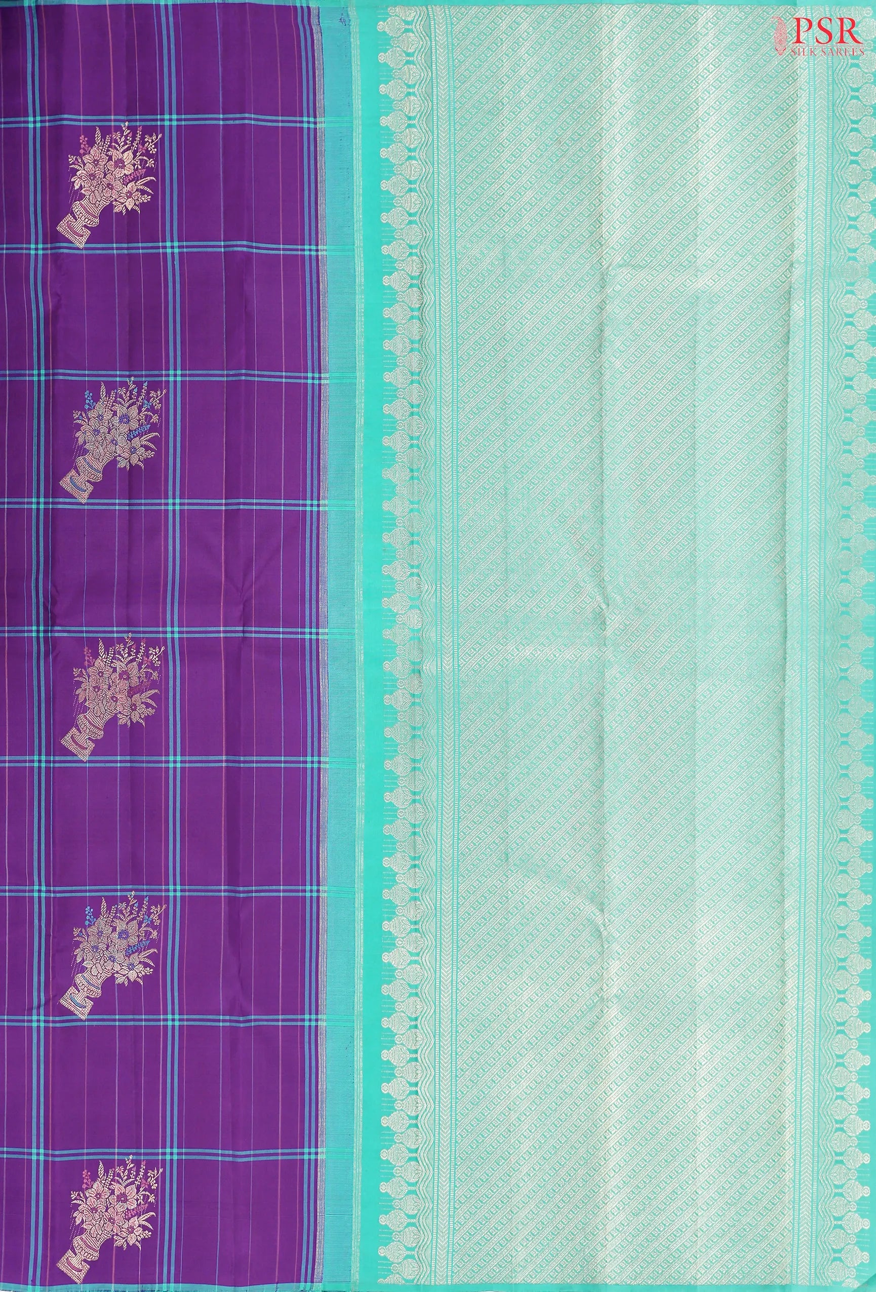 PSR Silk Sarees presents a regal Dark Purple Kanchipuram Silk Saree from our elegant āSmartika Kanjivaramā collection, paired with a graceful Sea Green contrast.