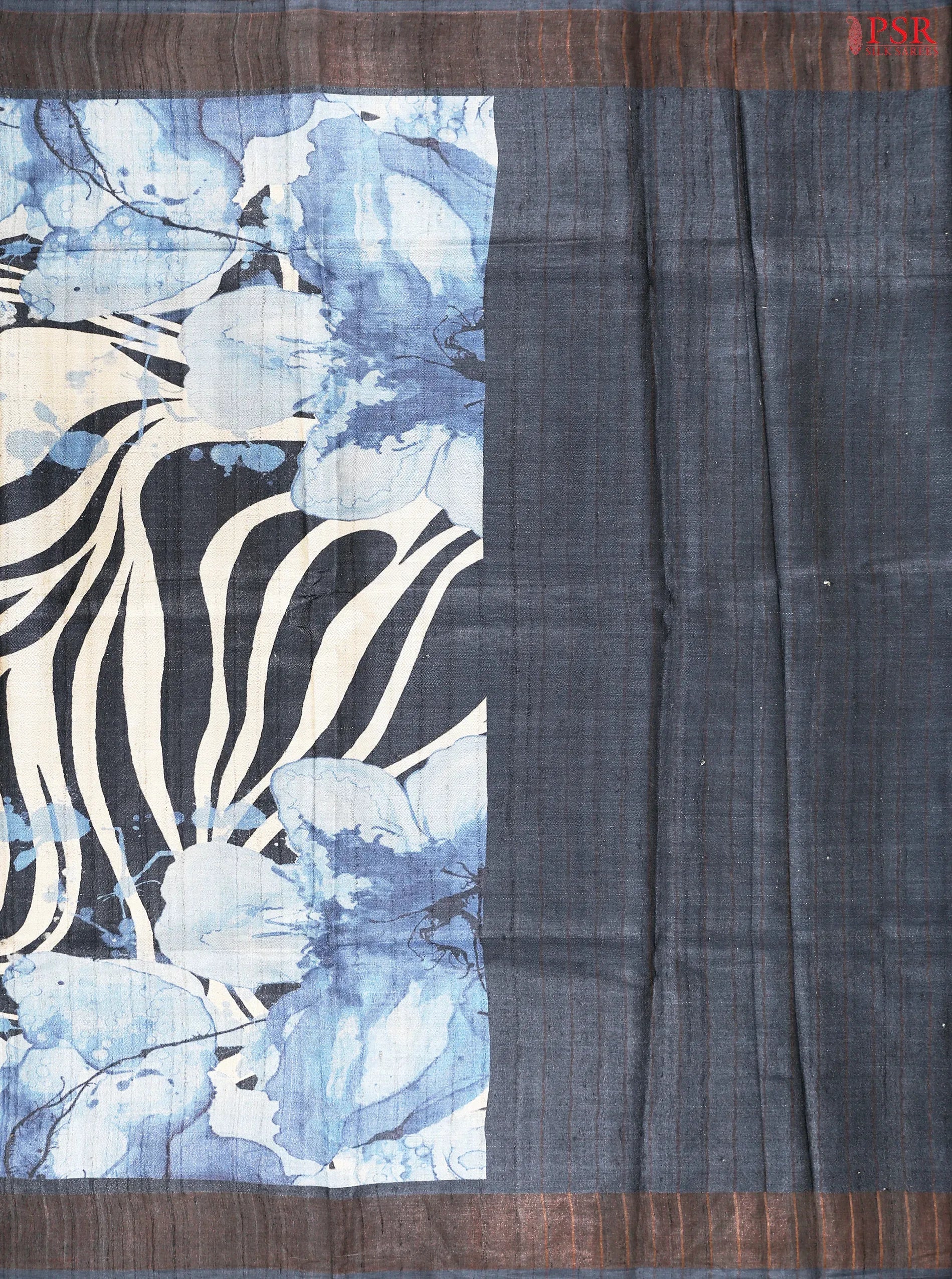 Dark Spruce Blue & Blue Tussar Silk Saree