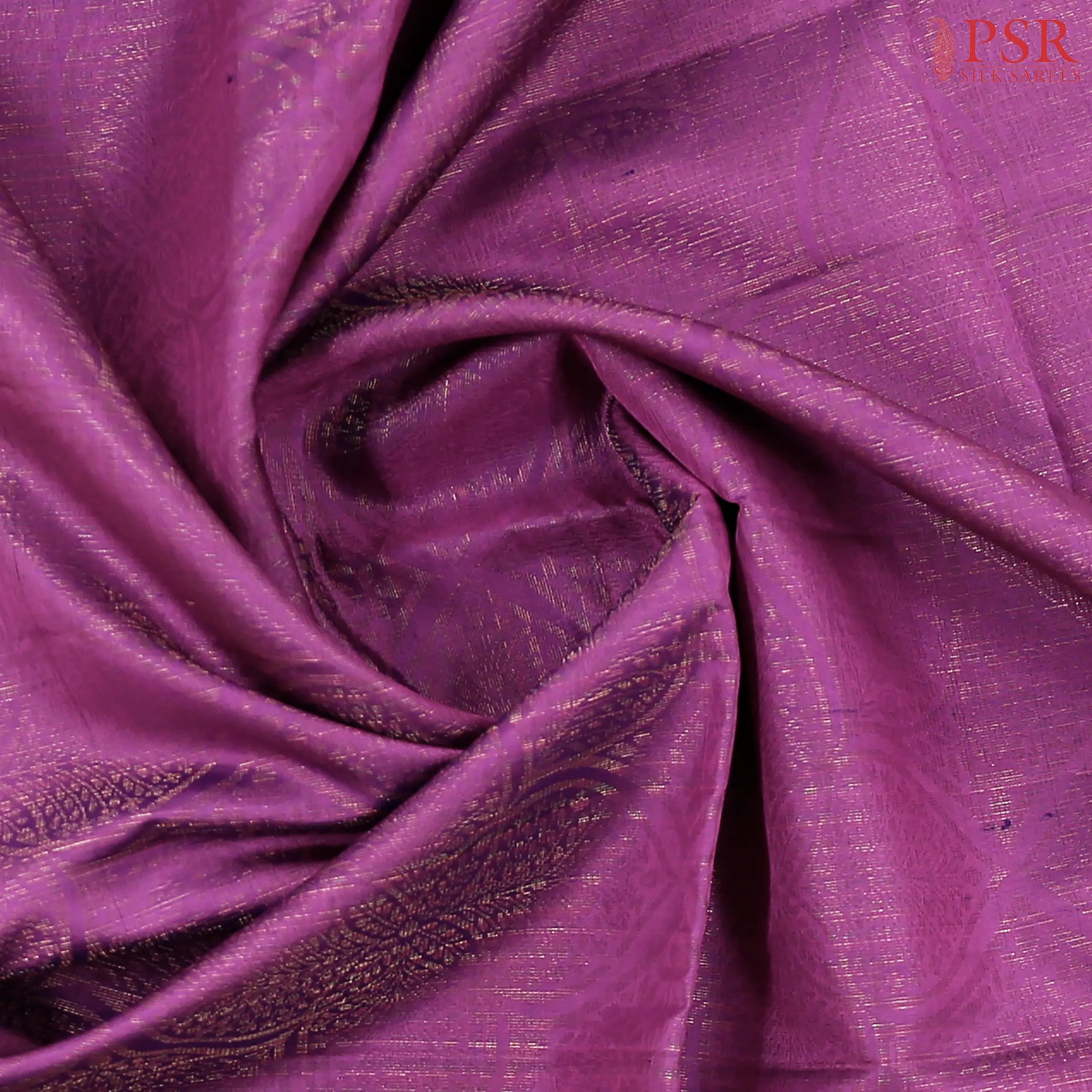 Make a striking statement with this luxurious Fandango Purple Soft Silk Saree from PSR Silks, beautifully paired with a vibrant Olive Green pallu. This elegant saree features an intricate mixed color zari big floral ogee jacquard pattern, offering a contemporary twist to traditional design. The contrasting pallu & border, adorned with rich mixed color zari work, adds an extra layer of sophistication. Complete the look with the sleek plain Olive Green blouse, perfect for special occasions and festivities.