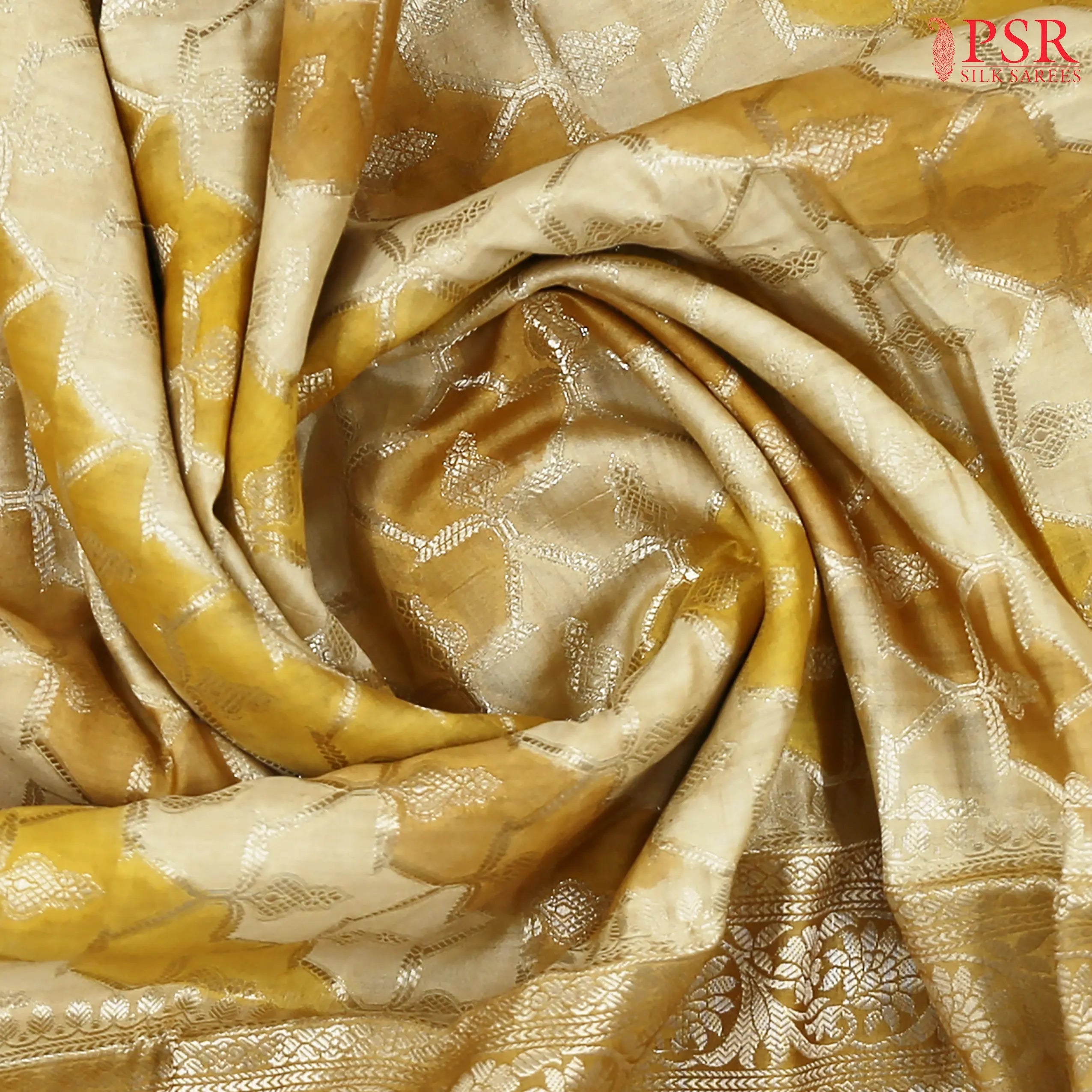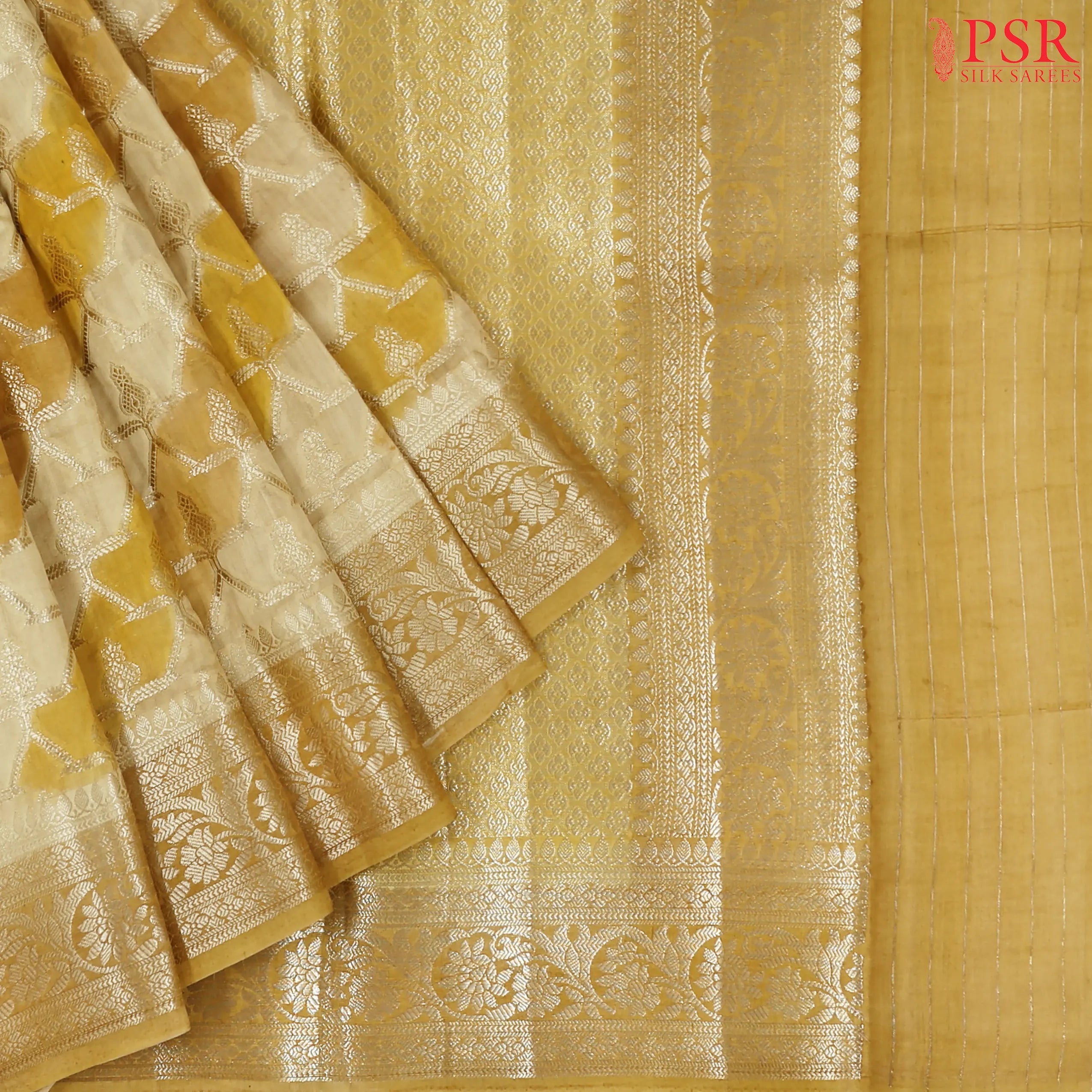 Ethereal Elegance – Fawn & Mustard Chiniya Silk Saree by PSR Silk Sarees