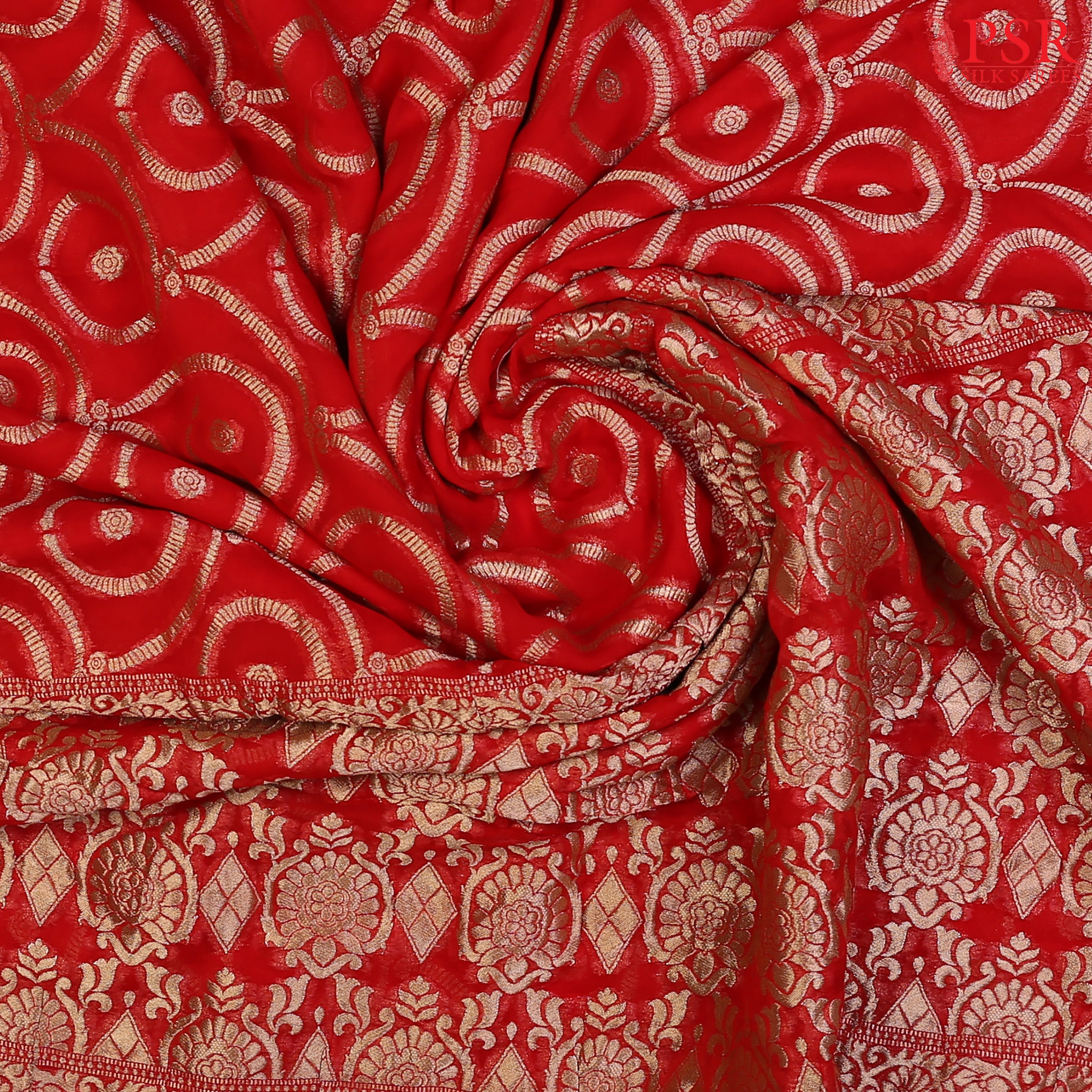 PSR Silks presents a Red colored Georgette Saree with zari work.