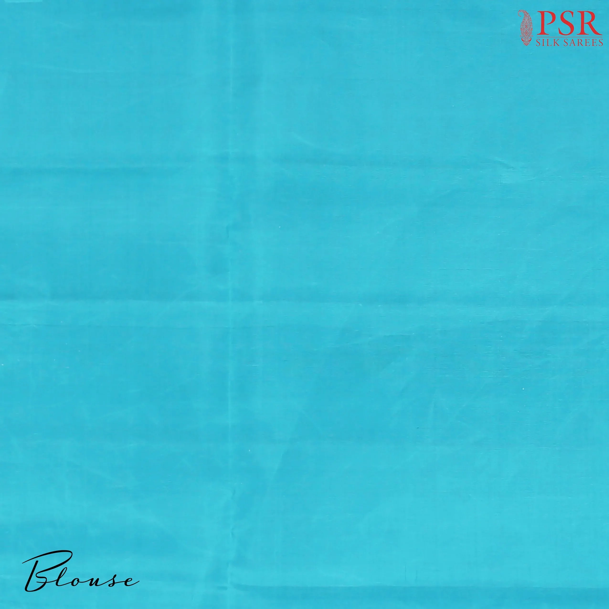 Make a striking statement with this luxurious Indigo Soft Silk Saree from PSR Silks, beautifully paired with a vibrant Cyan Blue pallu. This elegant plain border saree features an intricate zari jacquard lines pattern, offering a contemporary twist to traditional design. The contrasting pallu, adorned with rich zari work, adds an extra layer of sophistication. Complete the look with the sleek & plain Cyan Blue blouse, perfect for special occasions and festivities.