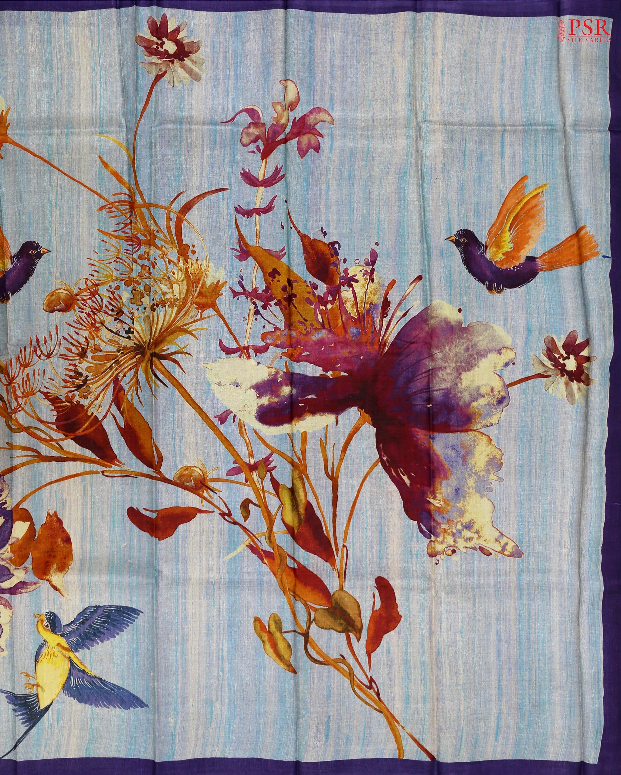 This graceful saree features abstract and colorful  floral prints, adding depth and sophistication to its design. The pallu is adorned with matching floral prints, giving the saree a rich and textured finish. As a small border saree, it maintains a sleek and contemporary look, paired perfectly with a plain Amethyst Purple blouse.