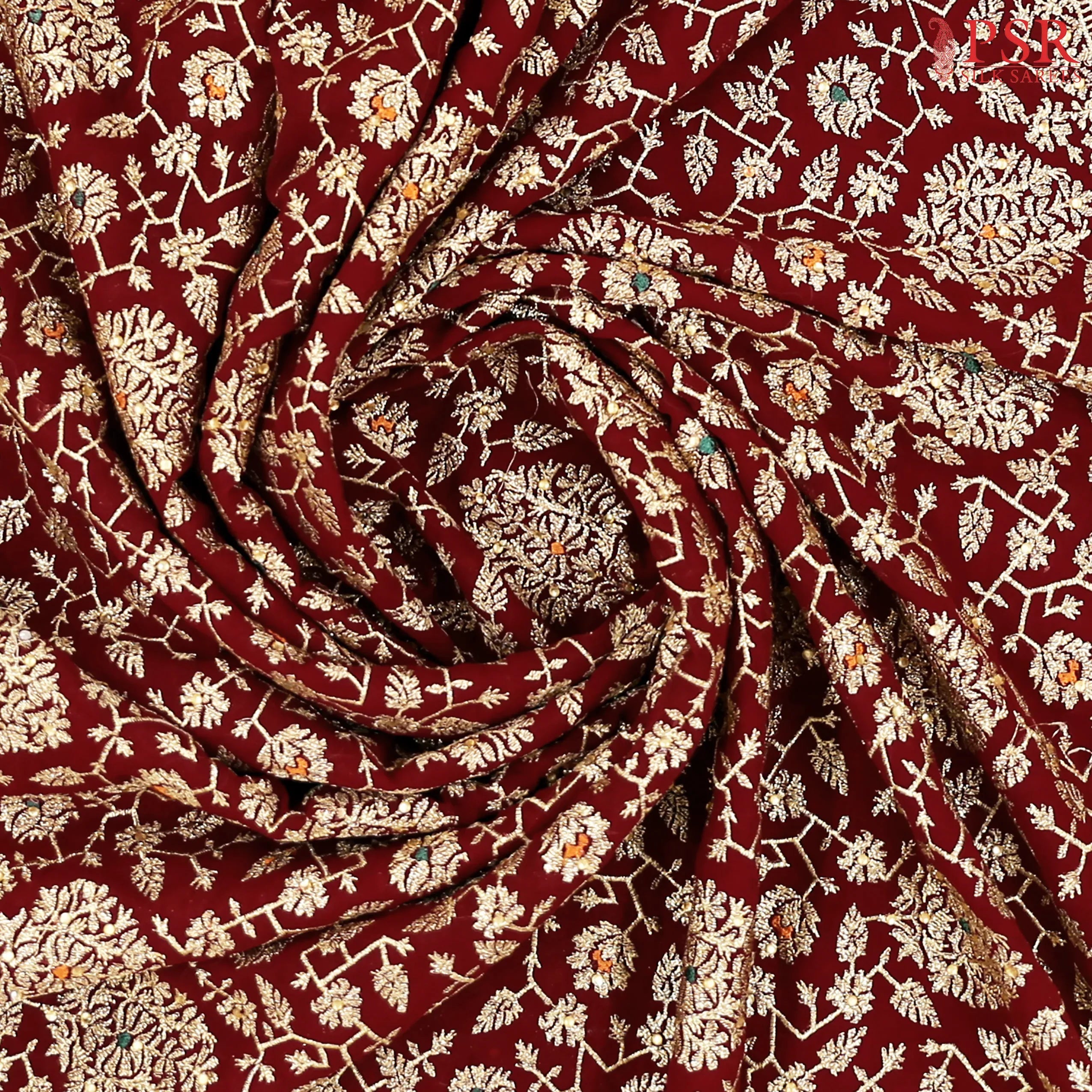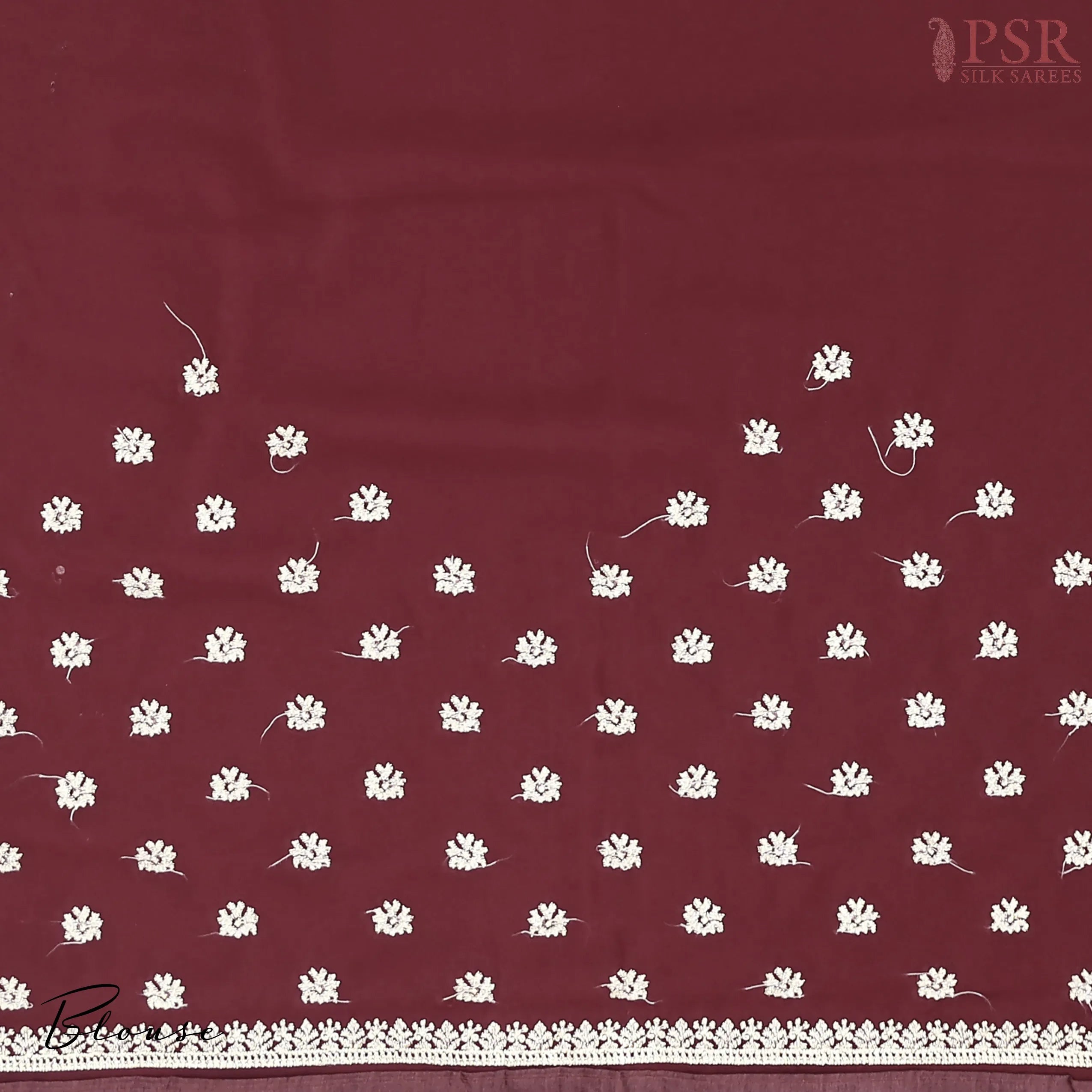 PSR Silks presents a Maroon colored Georgette Saree with an enchanting Embroidery Work.