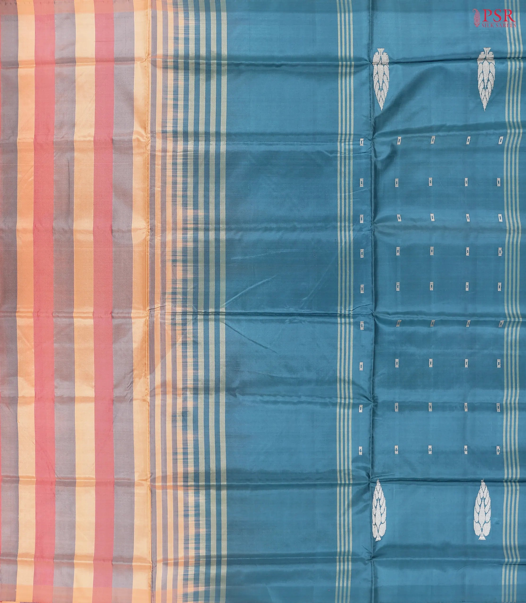 PSR Silk Sarees presents a Multicolor Vazhainaar Silk saree with combination of Teal Grey color.