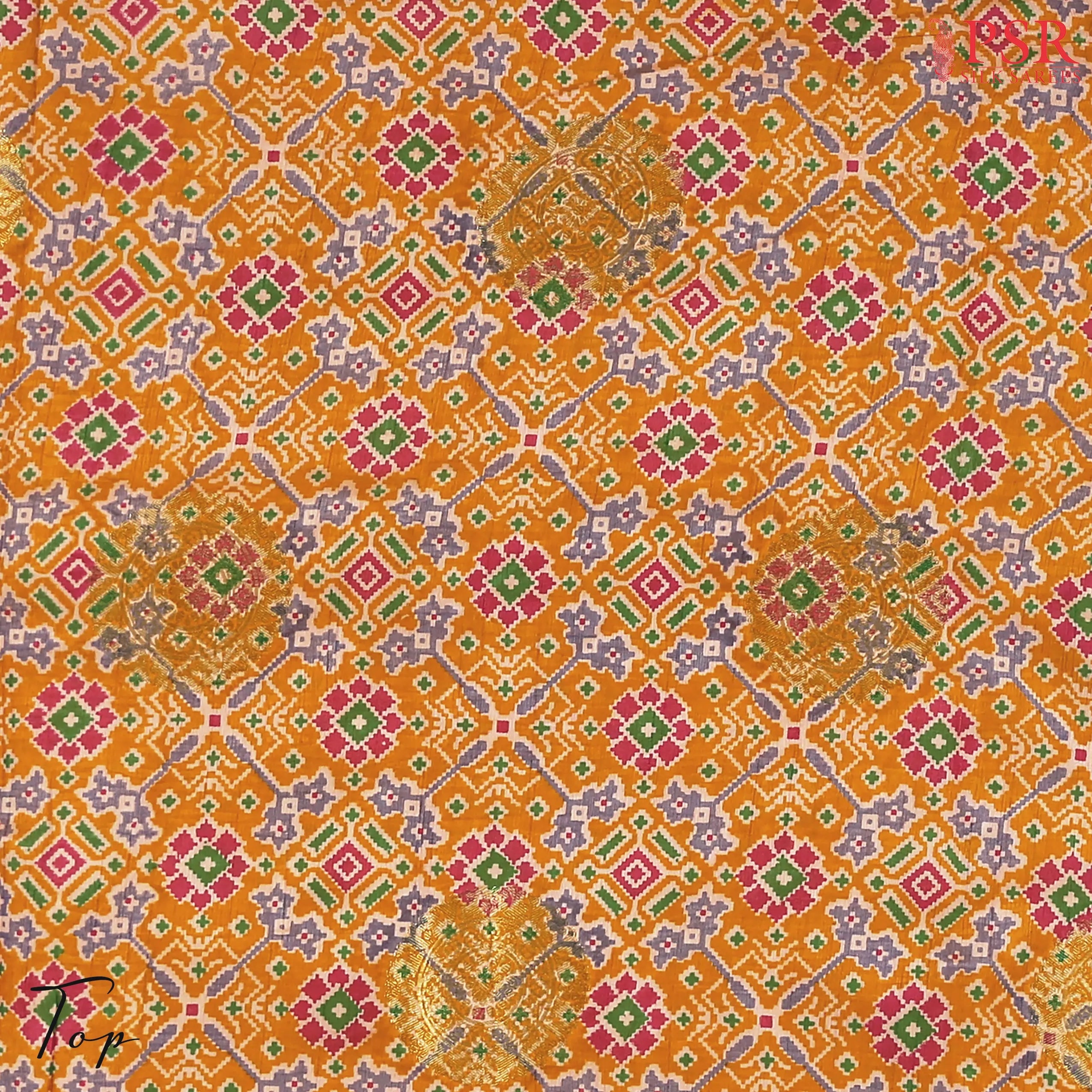 PSR Silks presents Mustard Yellow Soft Patola Semi Silk Dress Material with combination of Pink color.