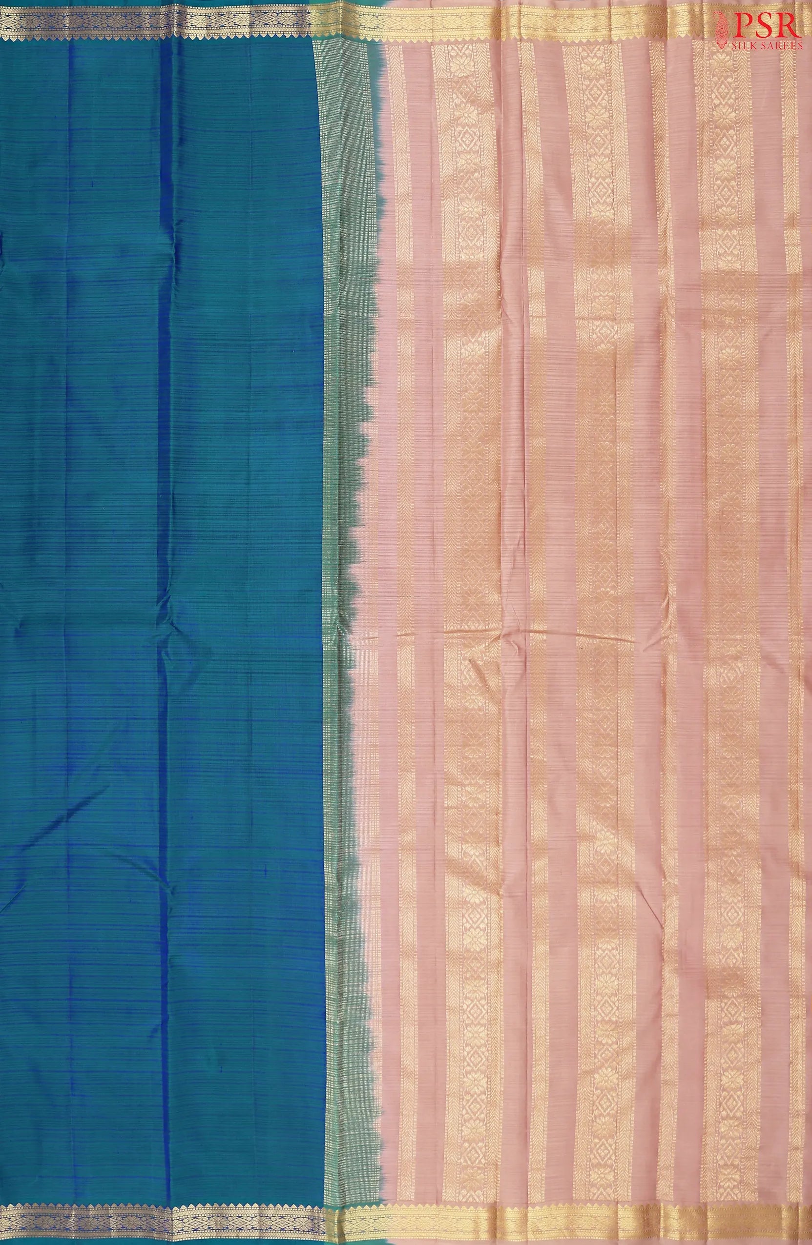 PSR Silk Sarees brings you a Peacock Blue Arani Silk with a refined blend of tradition and elegance with contrasting Sepia Beige combination.