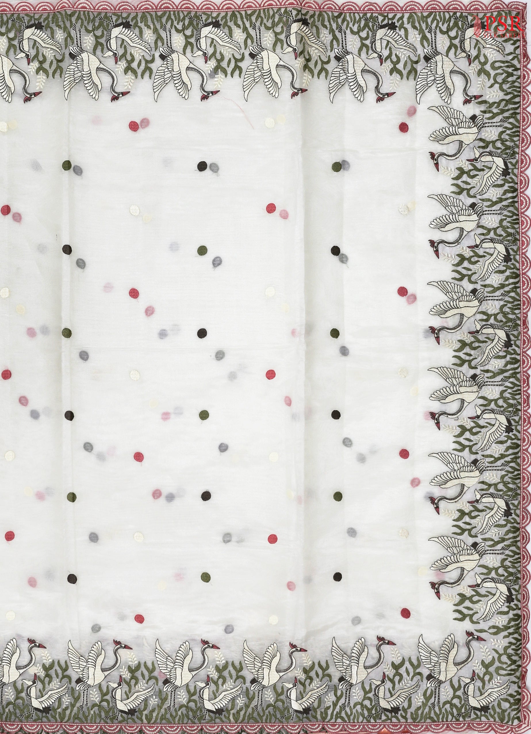 PSR Silk Sarees presents a Pearl White colored Organza embroidery saree.