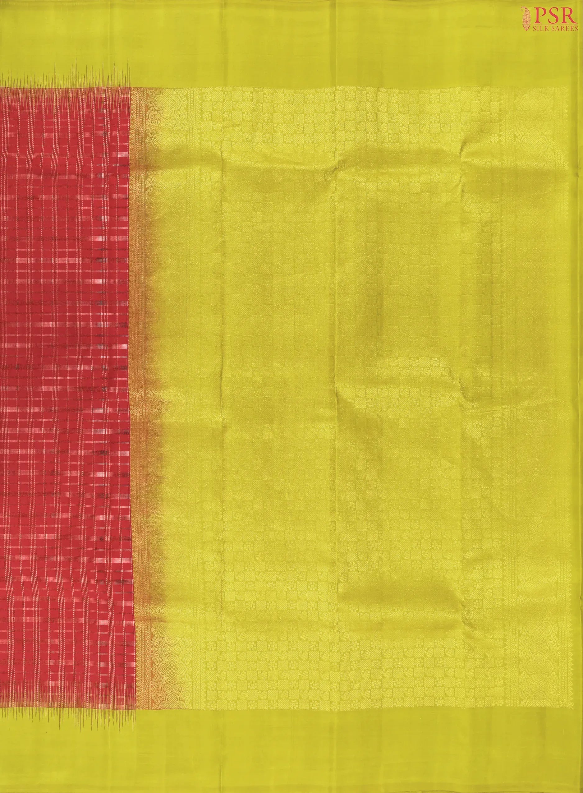 PSR Silk Sarees presents a Red colored Fancy Kanchipuram Silk with combination of Olive Yellow.