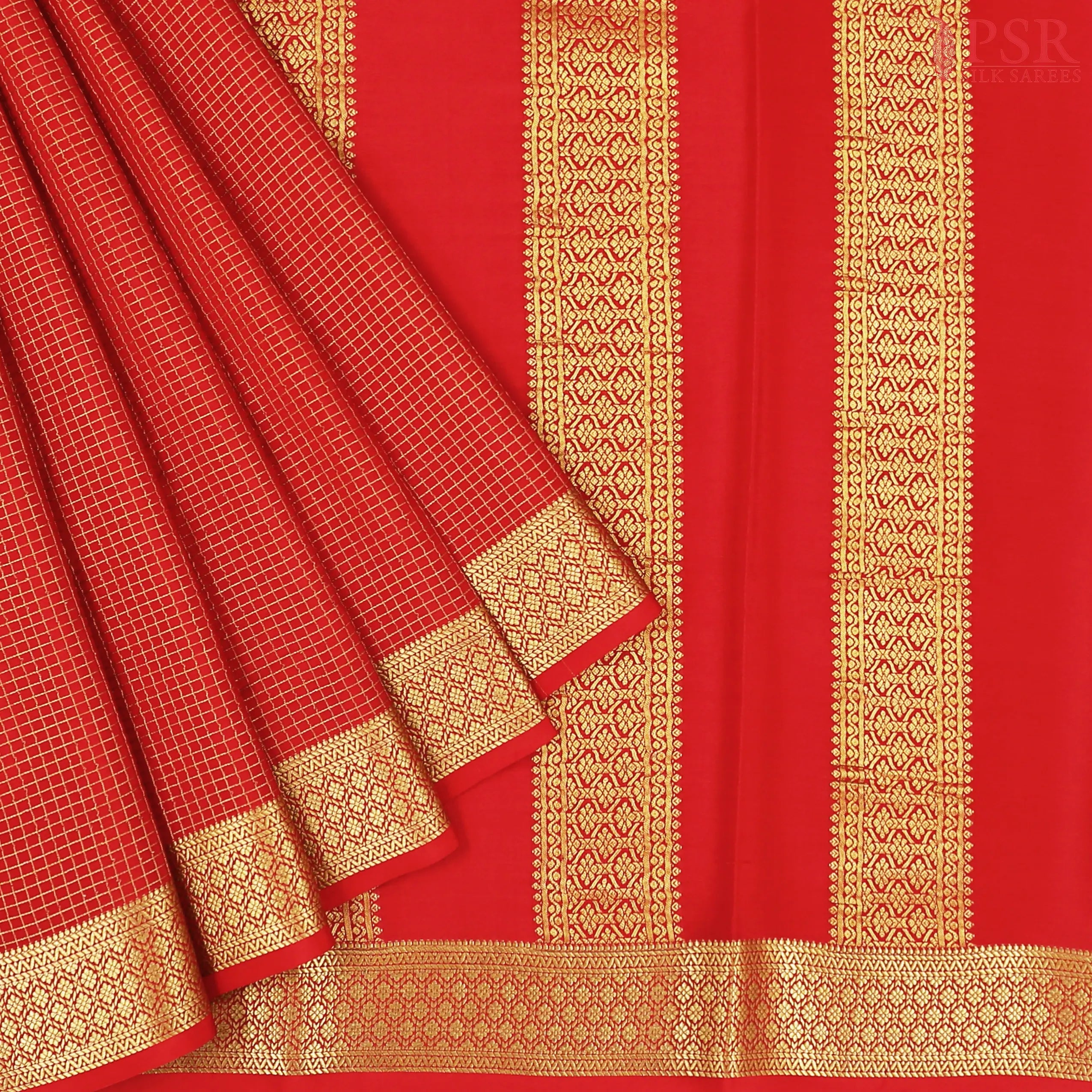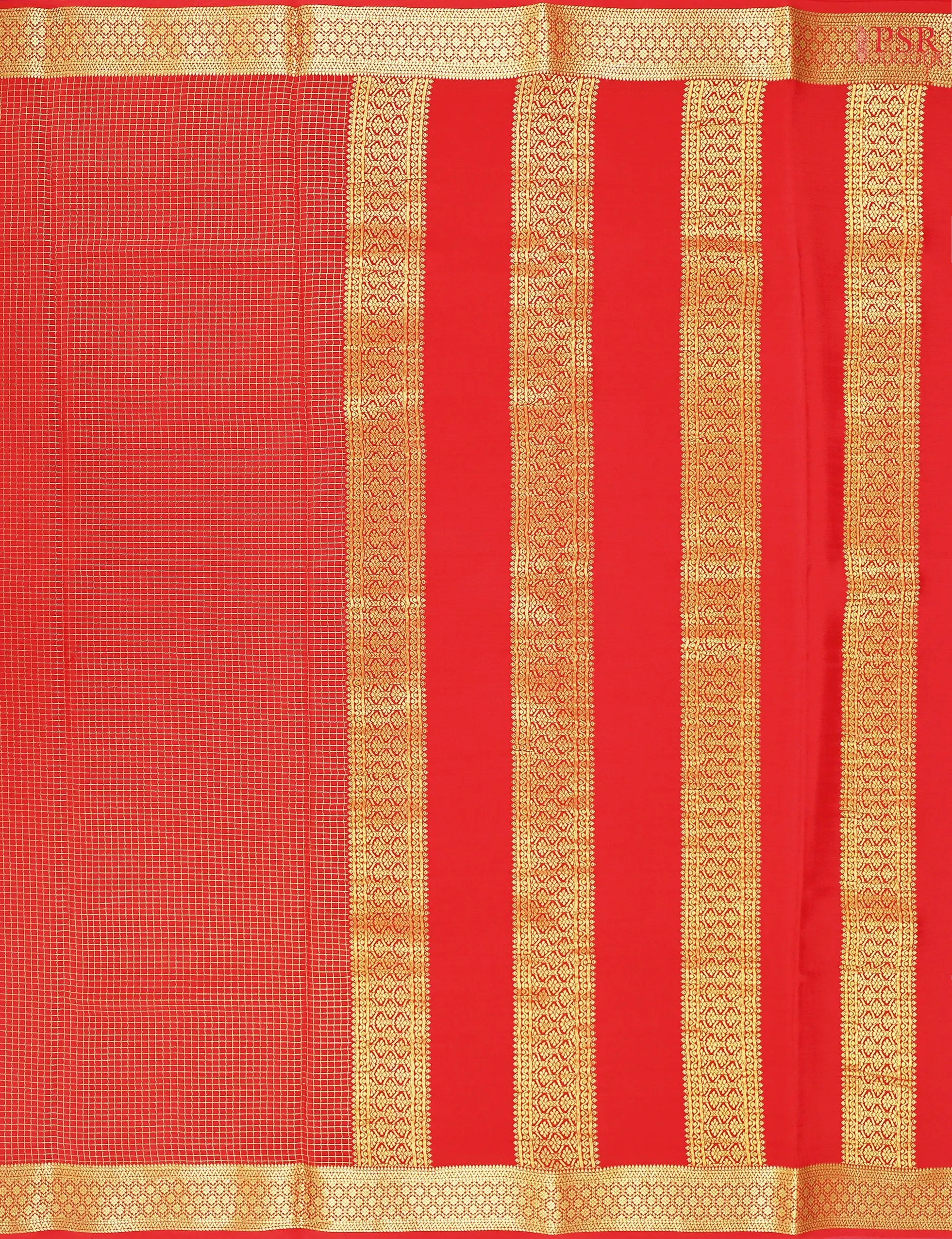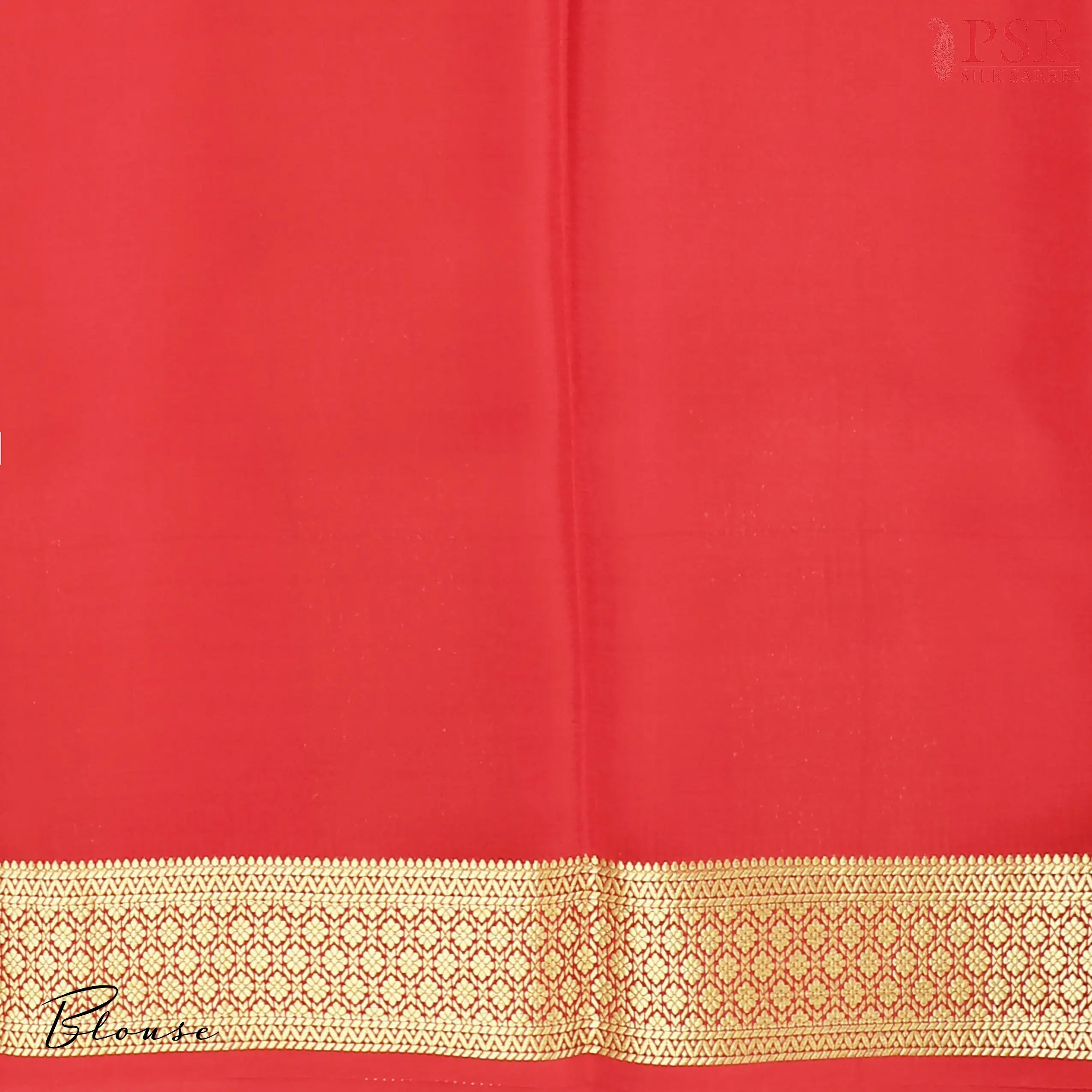 PSR Silk Sarees presents a stunning Red Mysore Silk Saree, crafted in smooth and luxurious fabric that drapes beautifully with classic elegance.