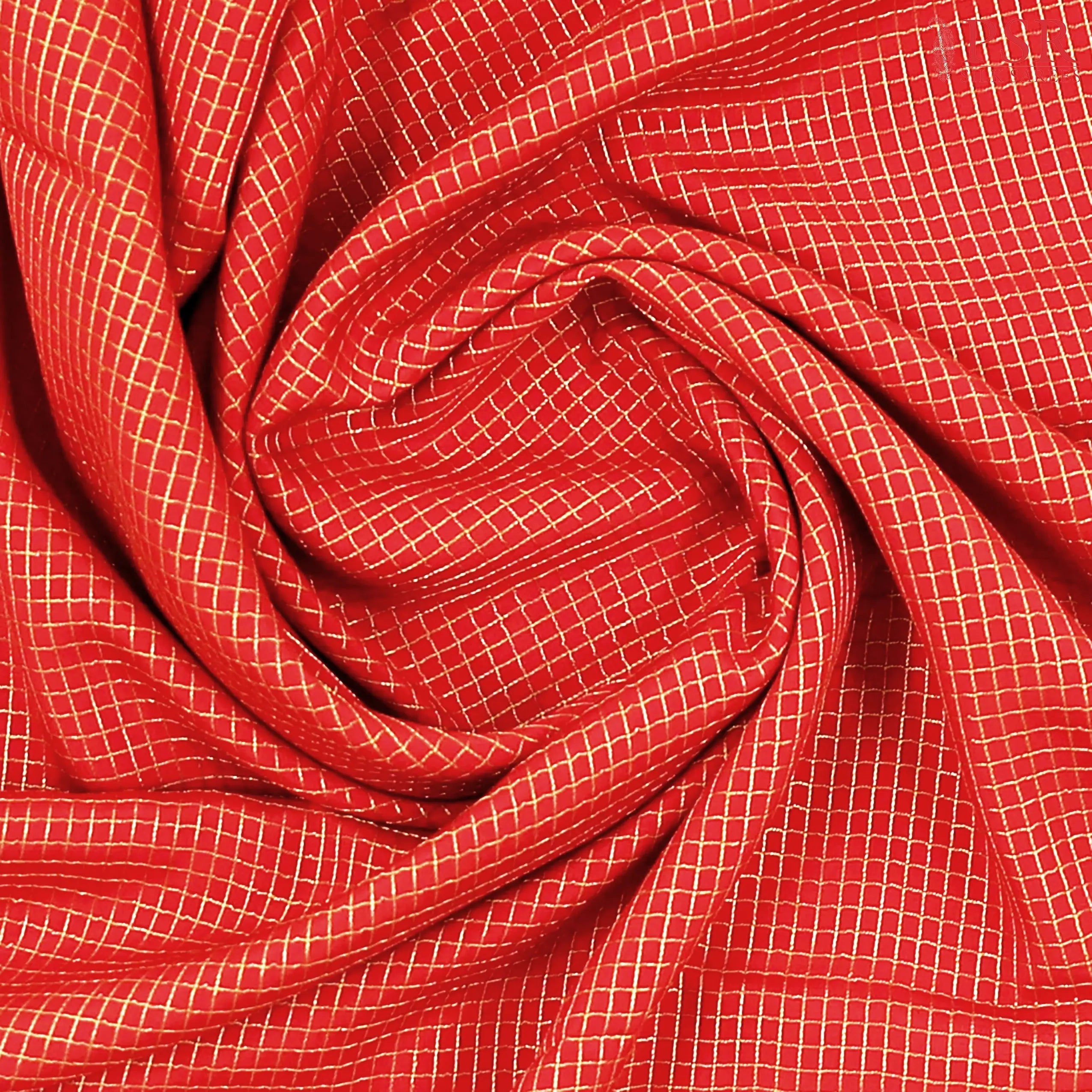 The saree features a delicate small zari checkered pattern, adding subtle texture and charm. It is complemented by a traditional zari work pallu and matching border, enhancing its timeless appeal. Completing the ensemble is a plain matching blouse, making it a versatile choice for festive and formal occasions.
