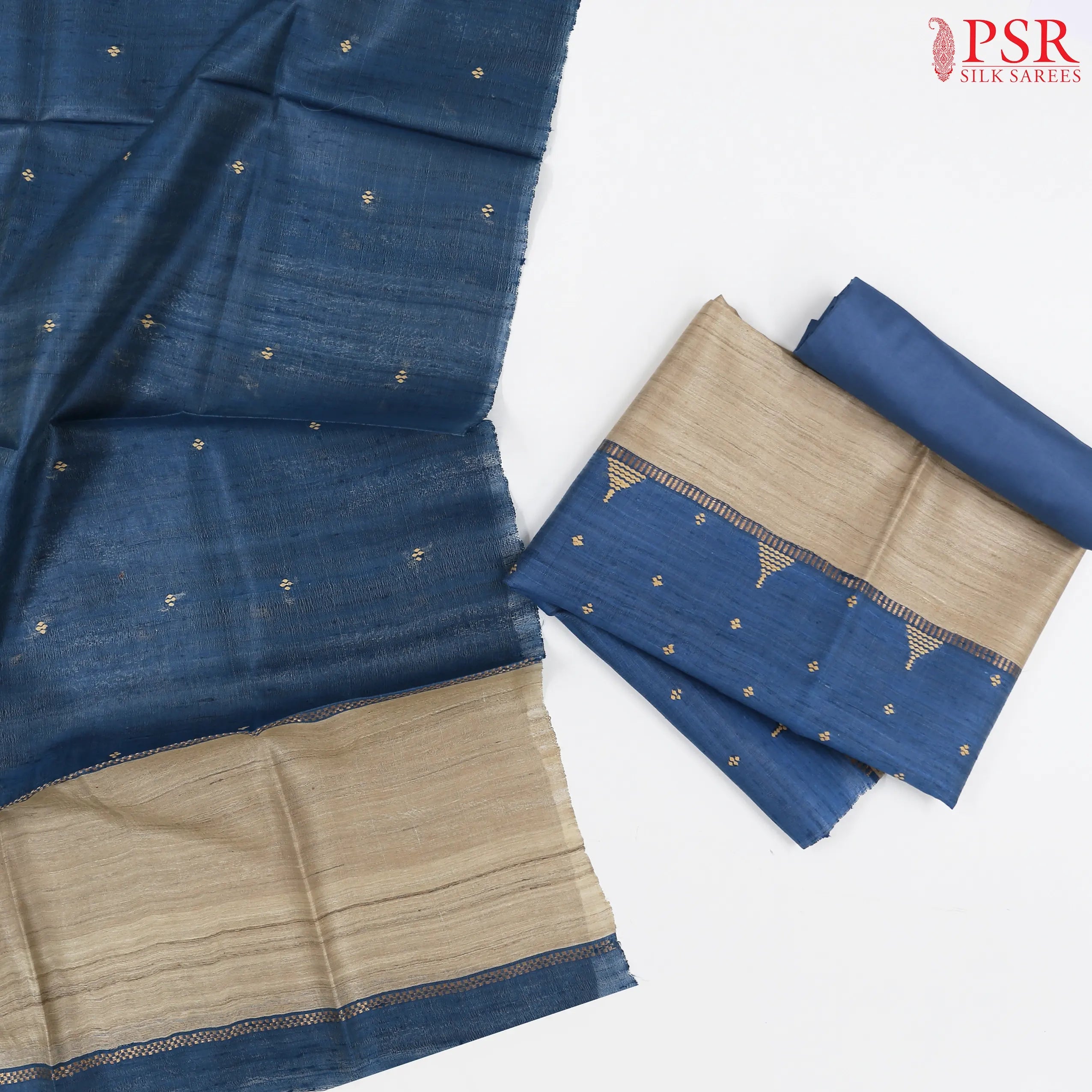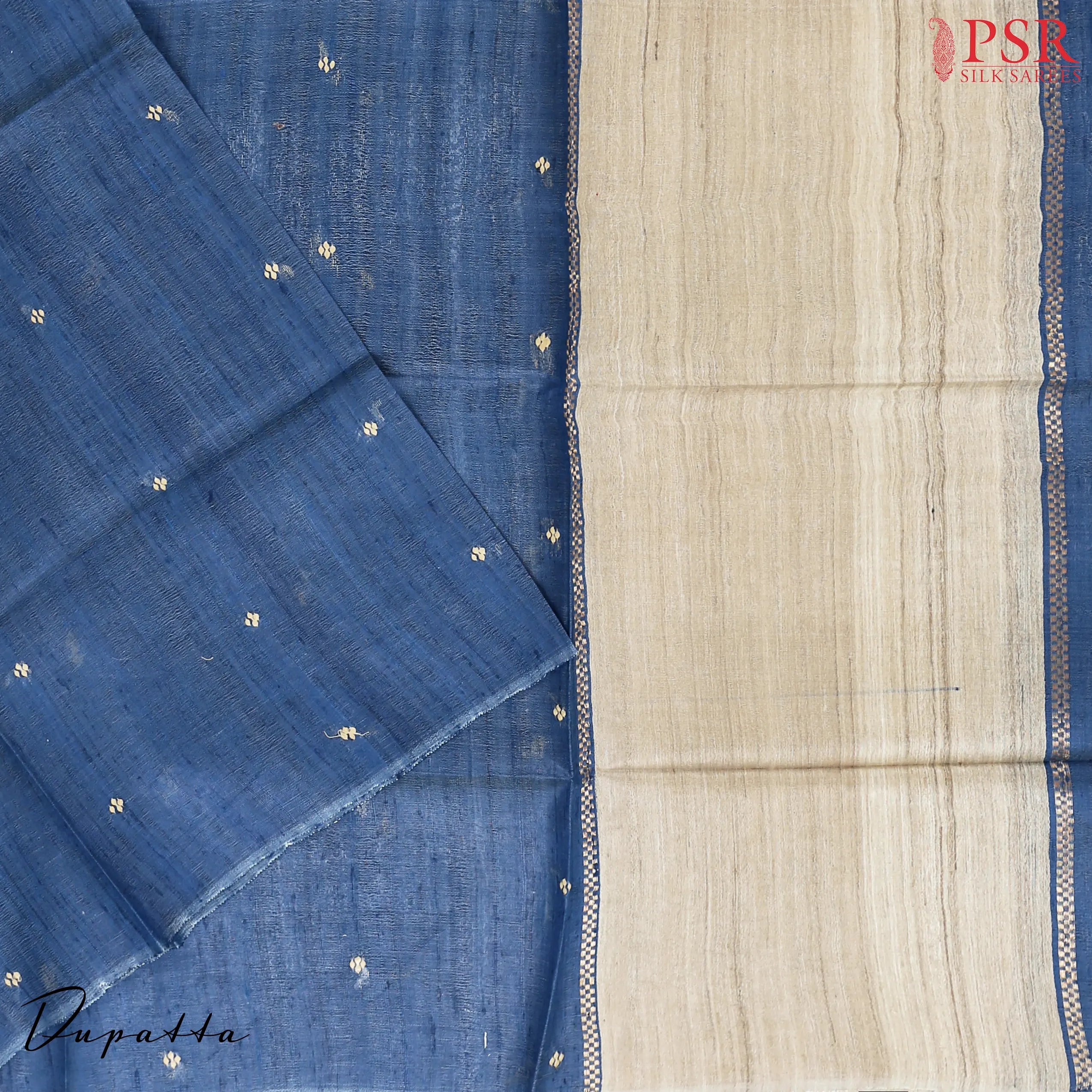 PSR Silks presents Royal Beige & Blue colored Kadhi Tussar Silk Dress Material.