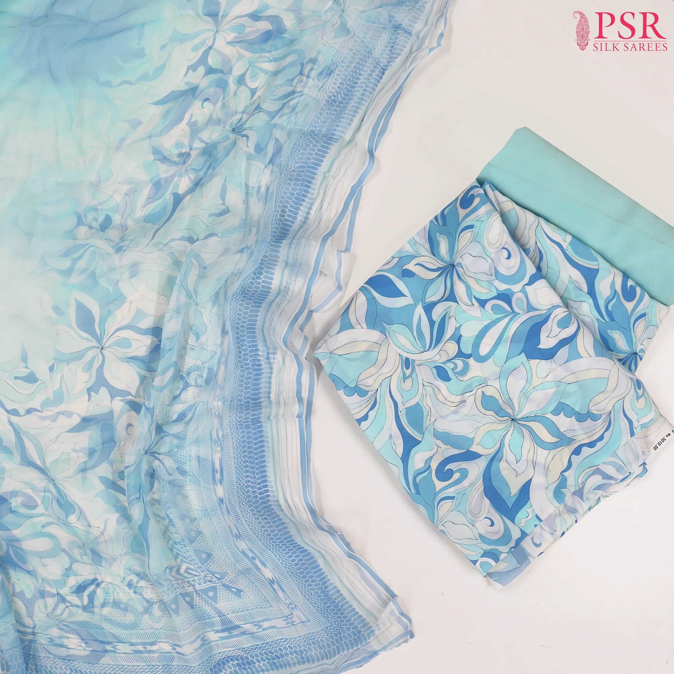 PSR Silks presents Shades Of Blue Semi Crape Dress Material.