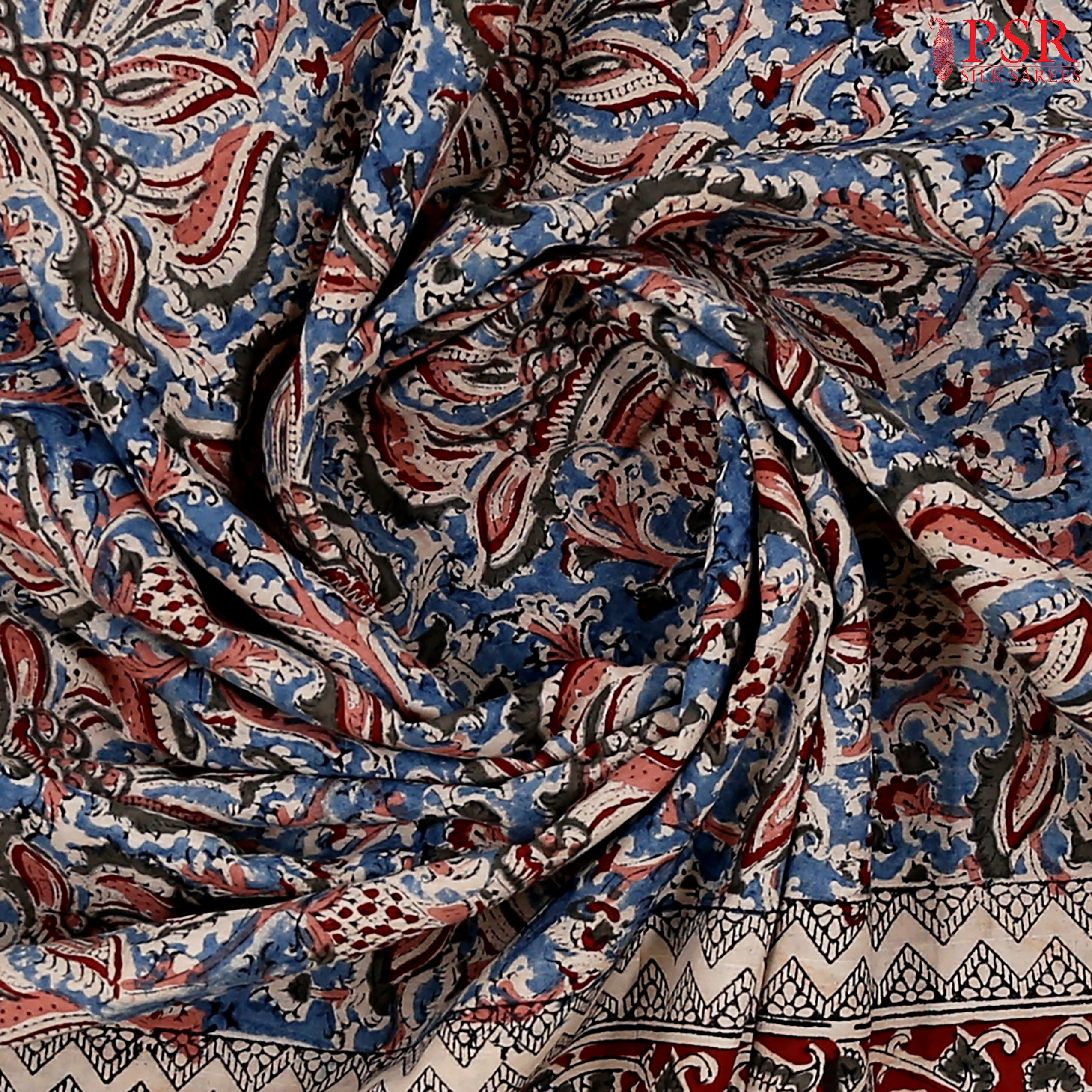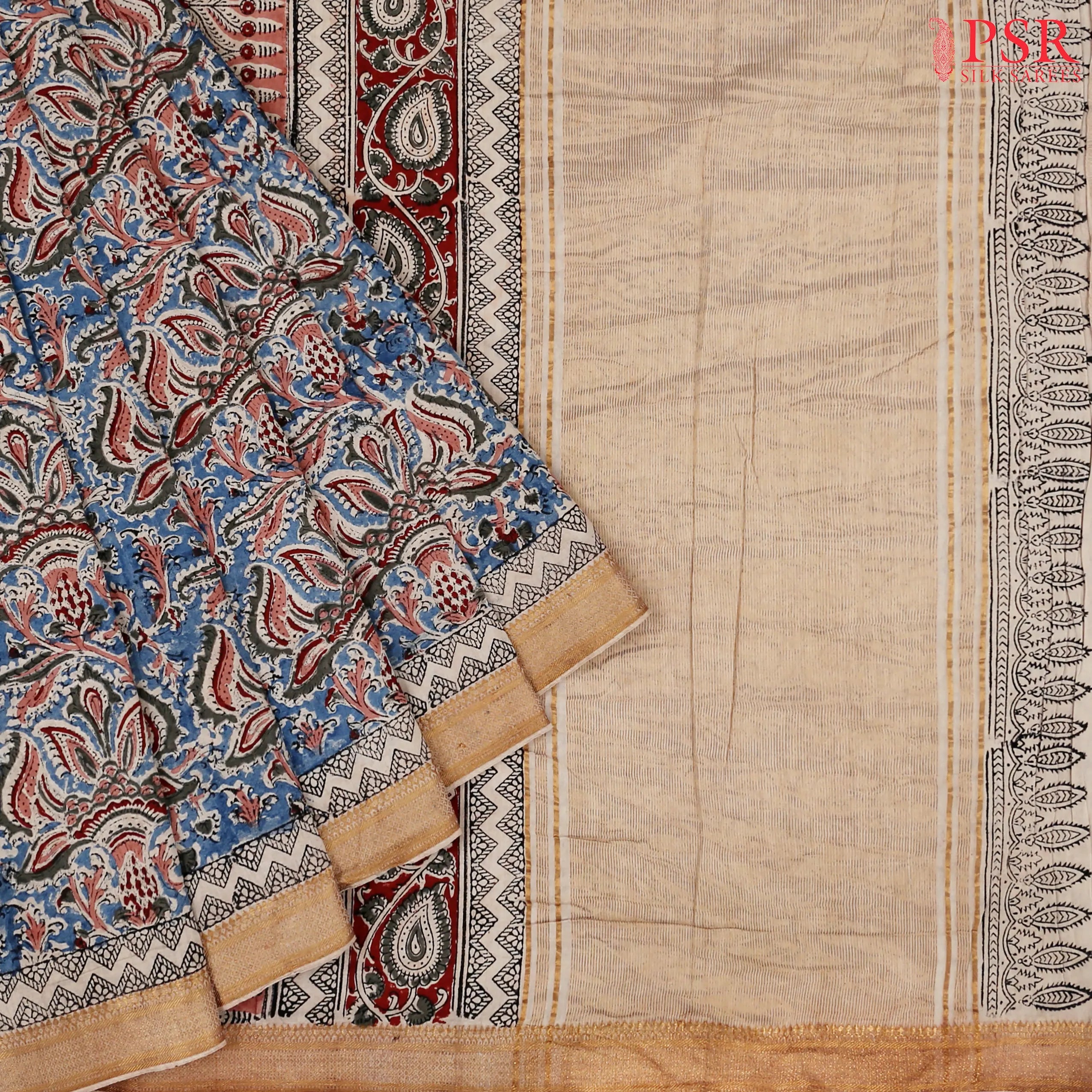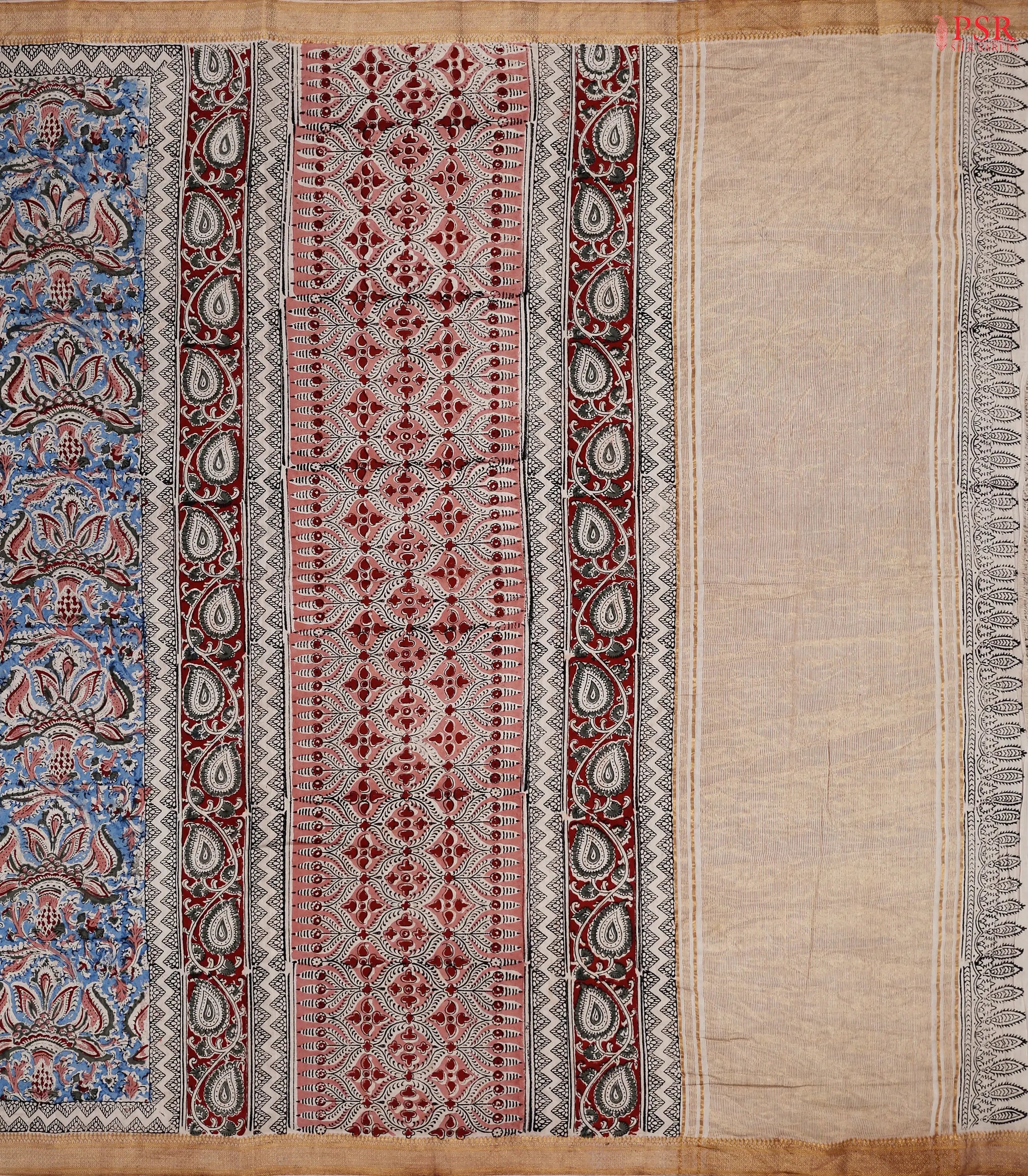 PSR Silk Sarees presents a Steel Blue colored Mangalagiri Cotton Saree with combination of Sepia Beige color.