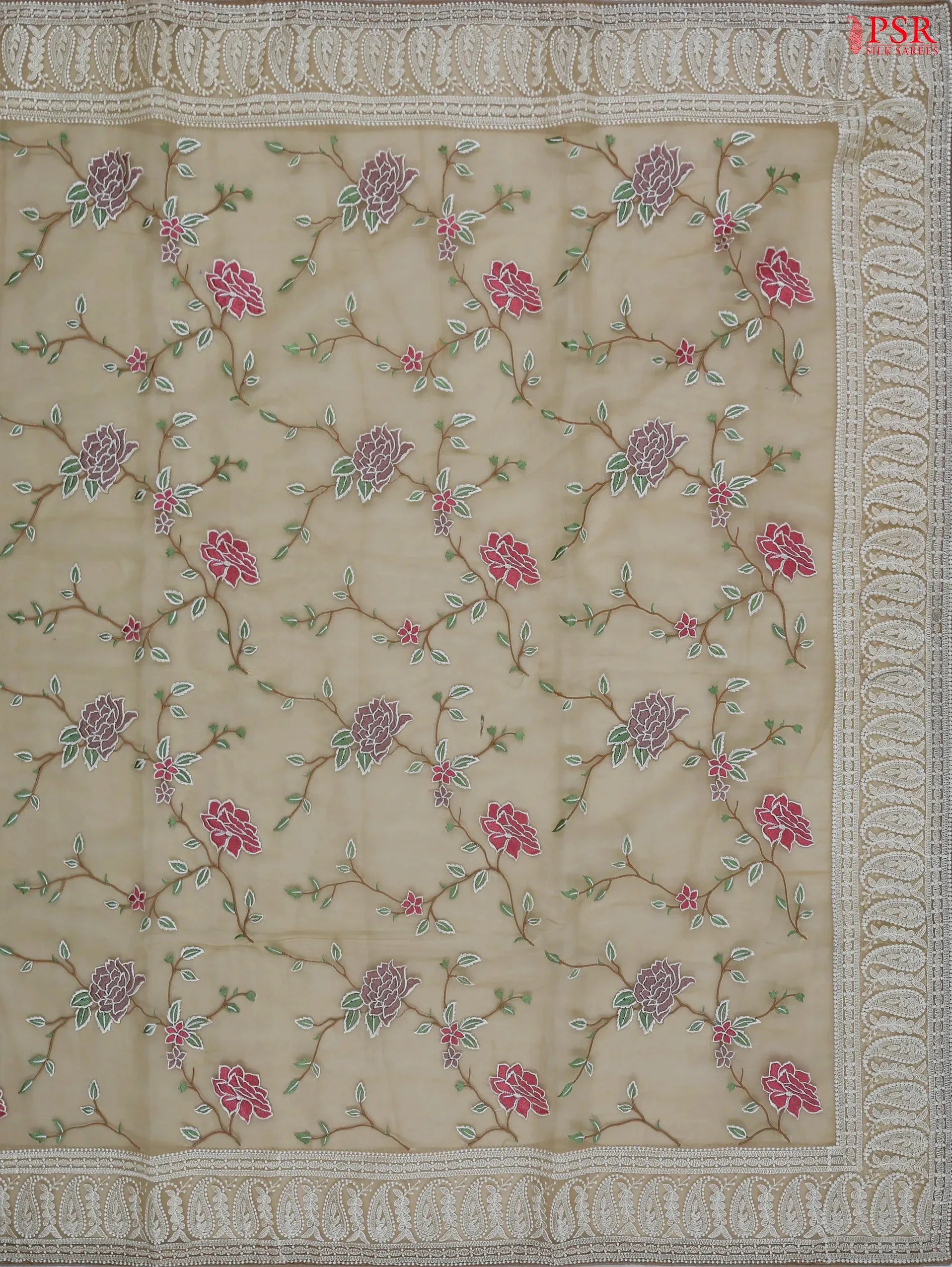PSR Silk Sarees presents a Tan colored Organza embroidery saree.