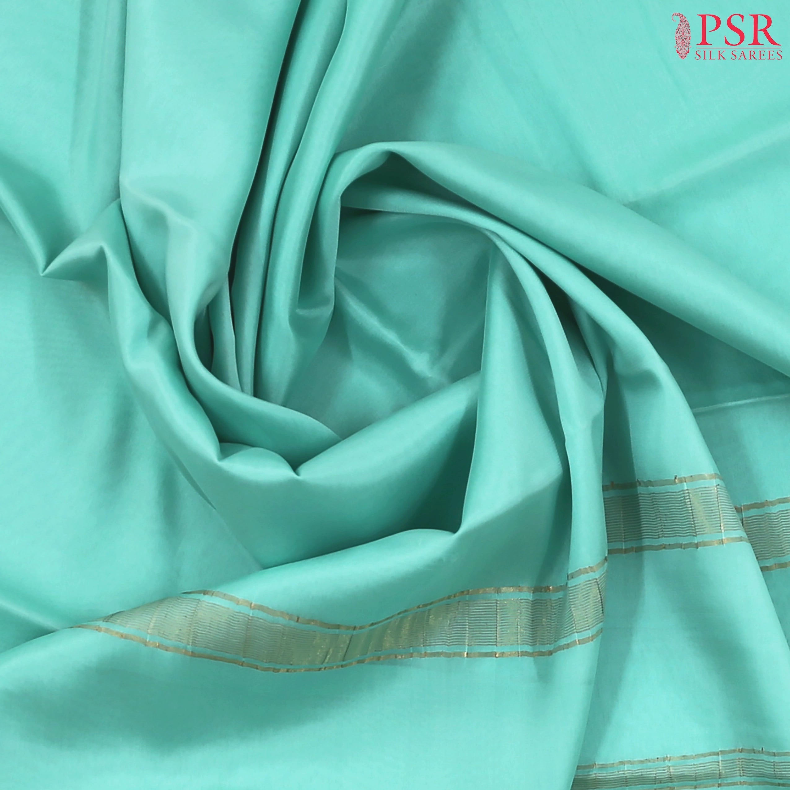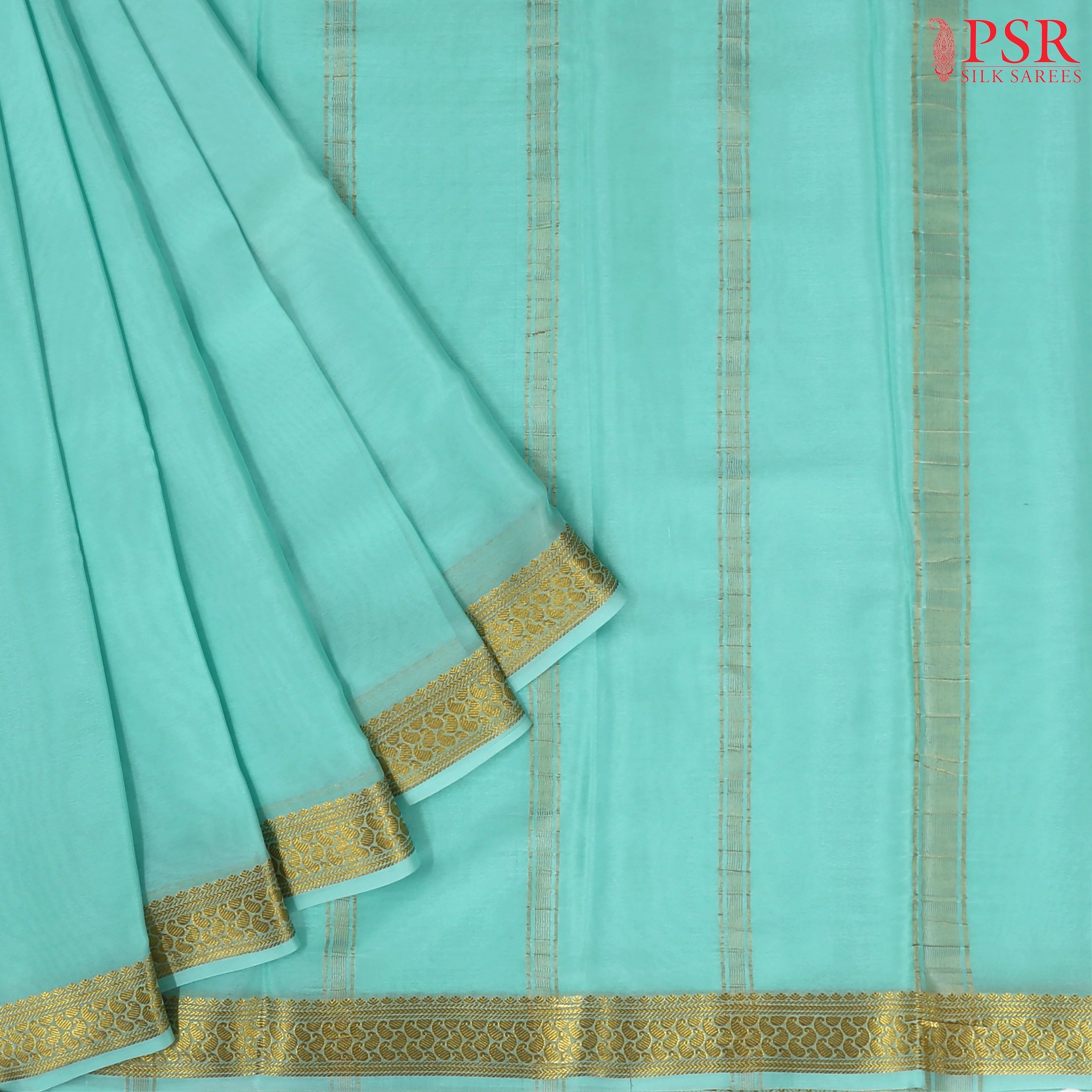 PSR Silks presents a Tiffany Blue colored Mysore Silk saree.