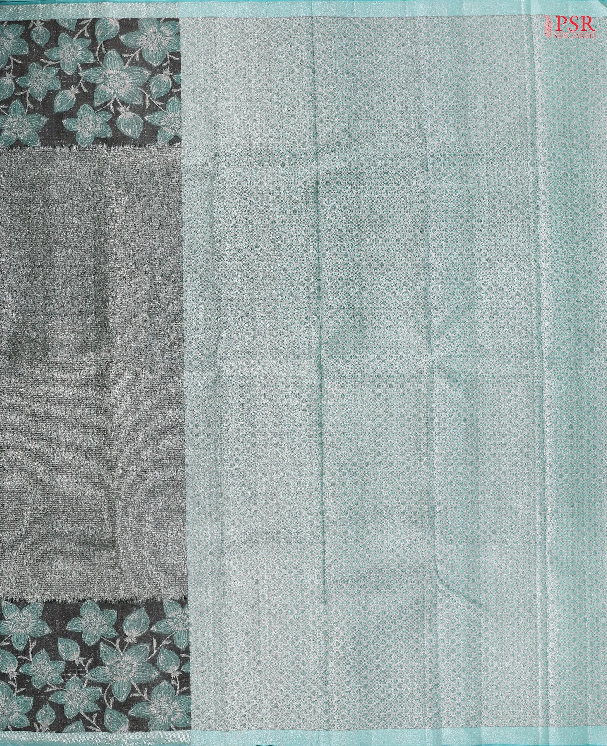 Turquoise Grey Kanchipuram Tissue Silk Saree