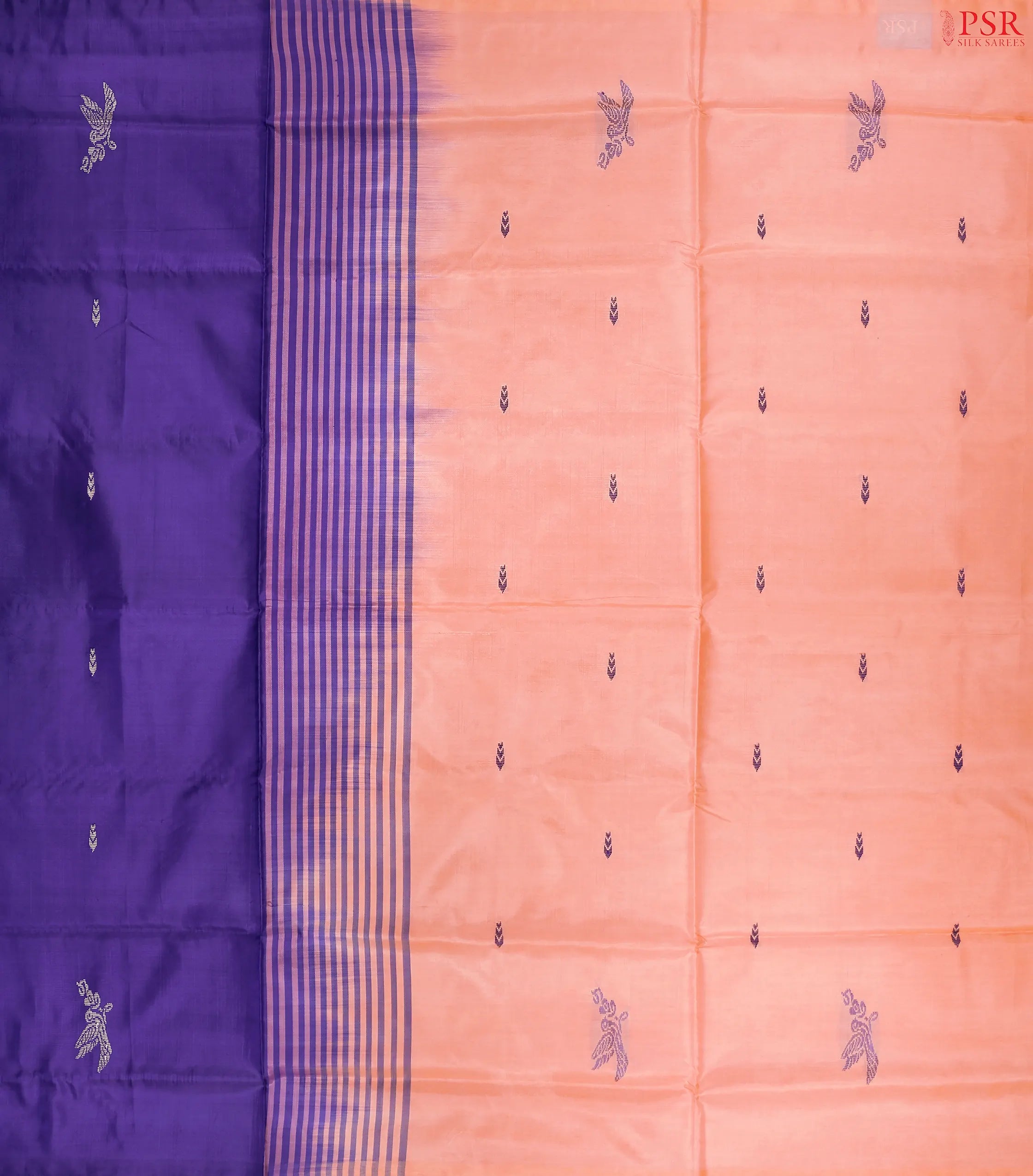 PSR Silk Sarees presents a Violet Vazhainaar Silk saree with combination of Peach color.