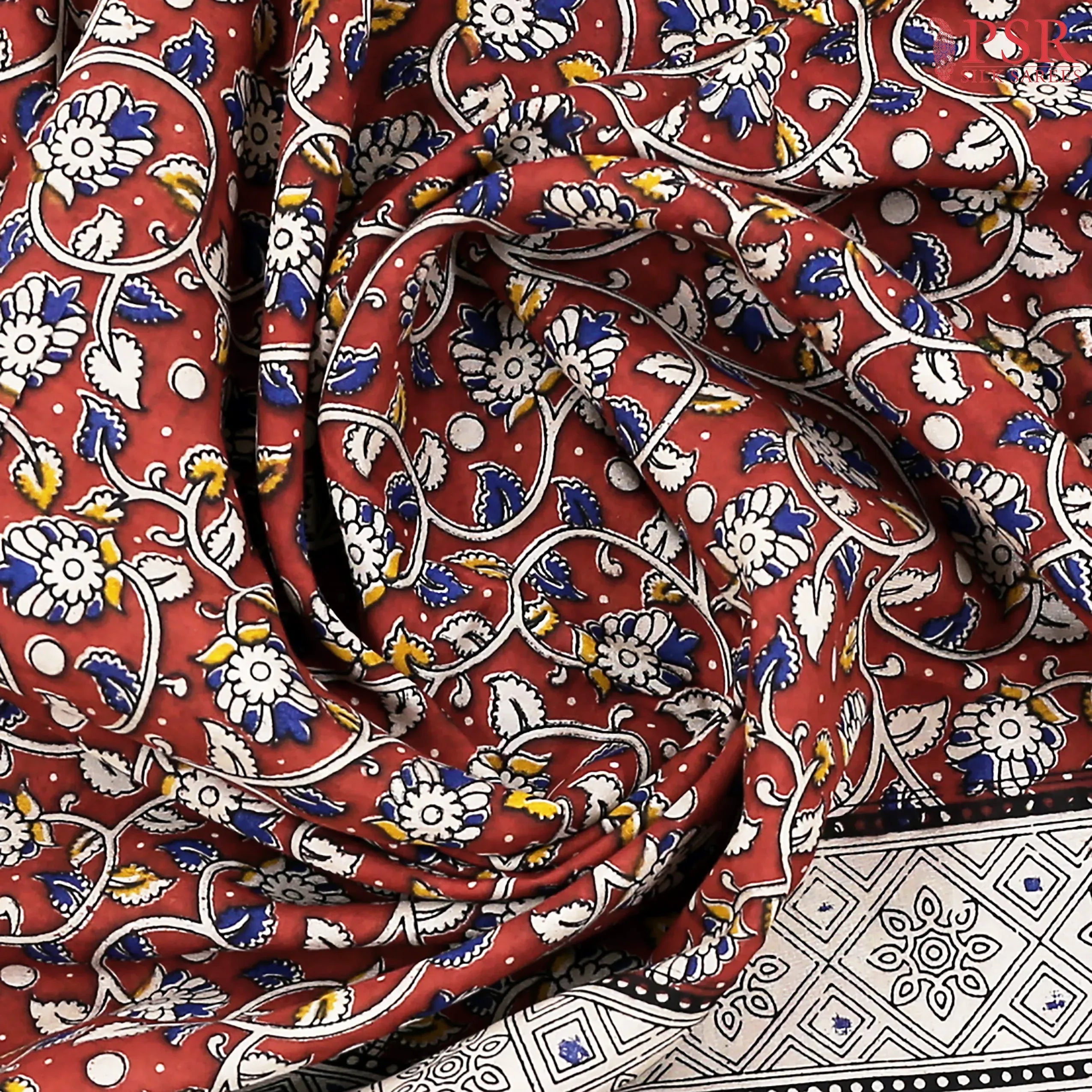 PSR Silk Sarees presents a Antique Red Kalamkari Silk printed saree with combination of Beige color.