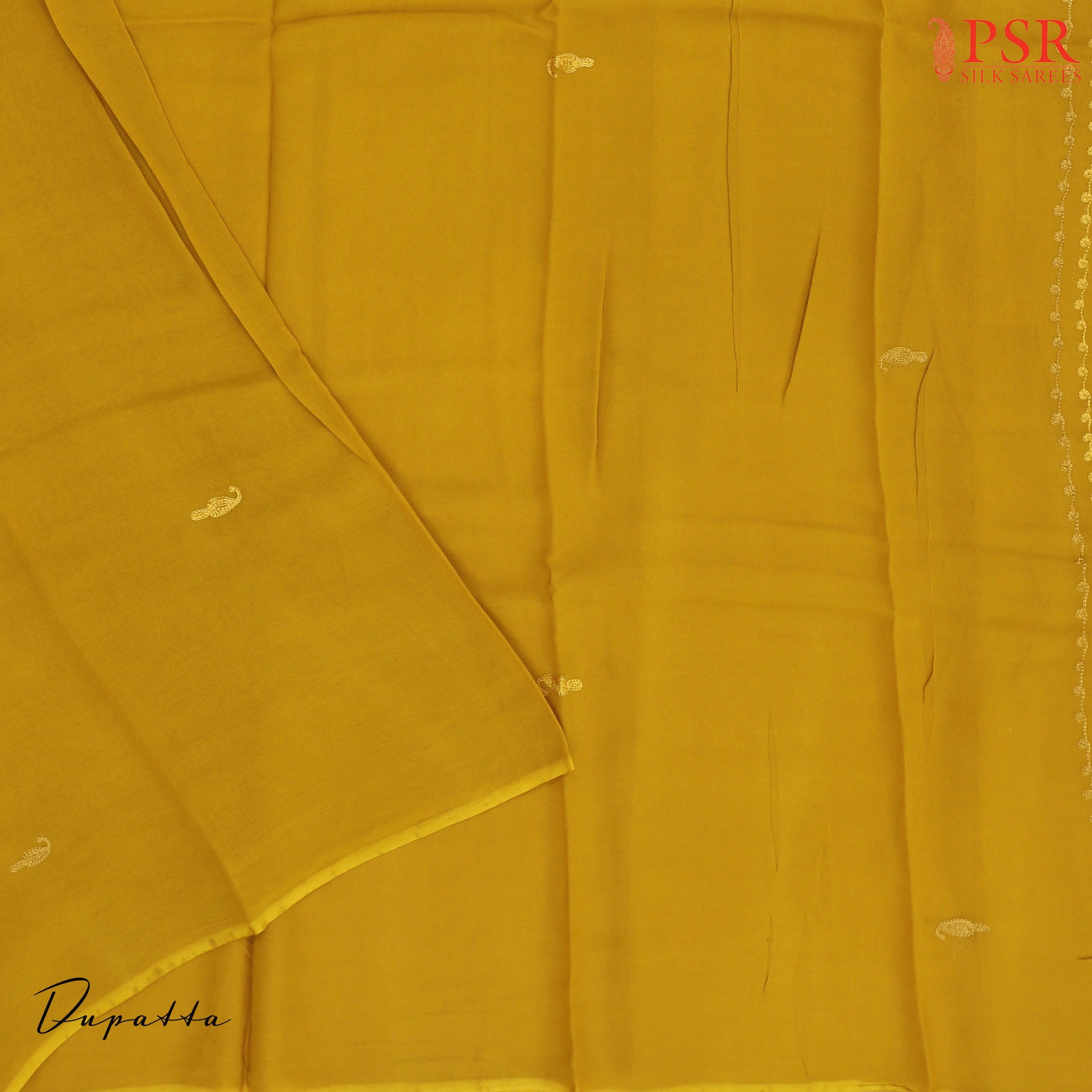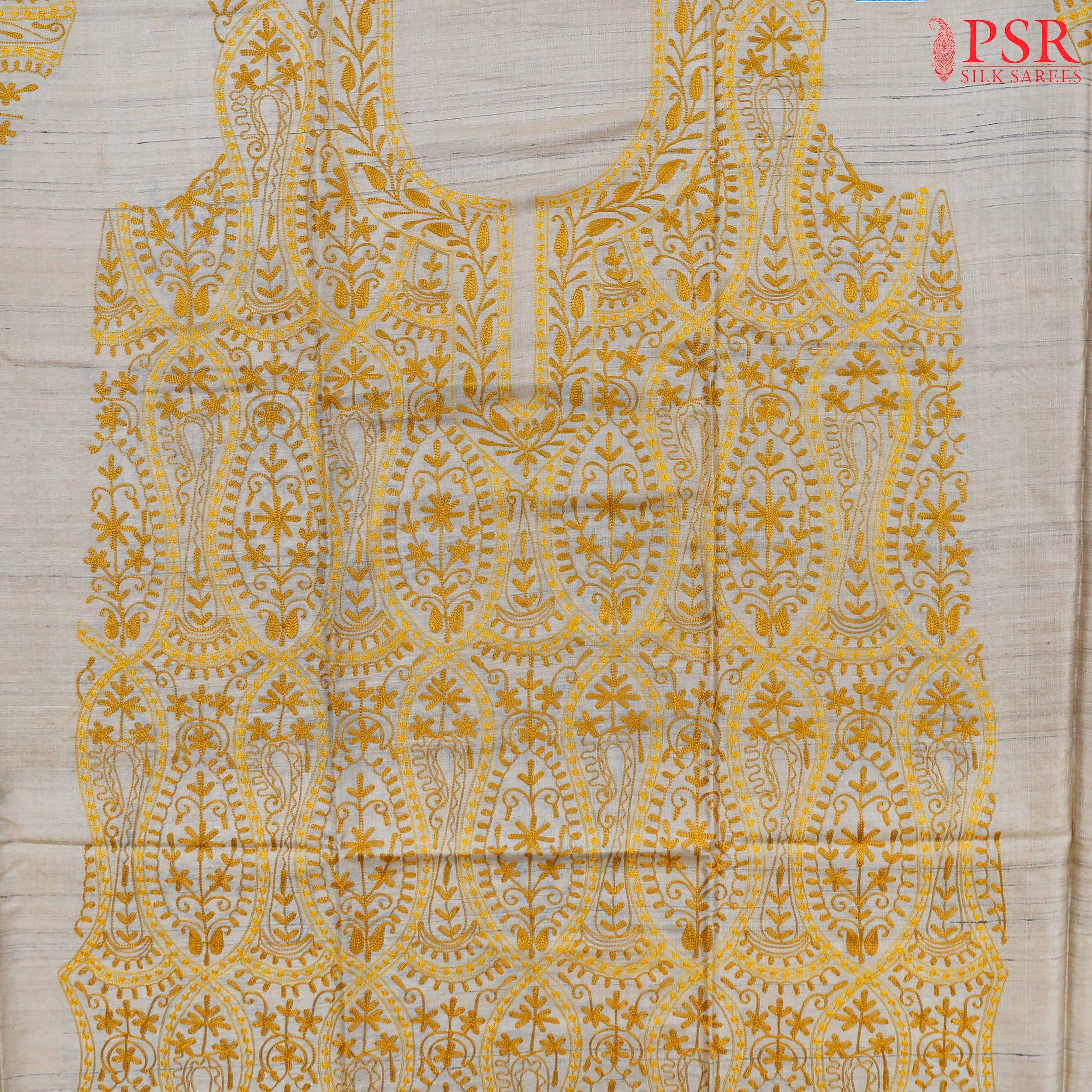 Beige & Mustard Yellow Tussar Silk Dress Material