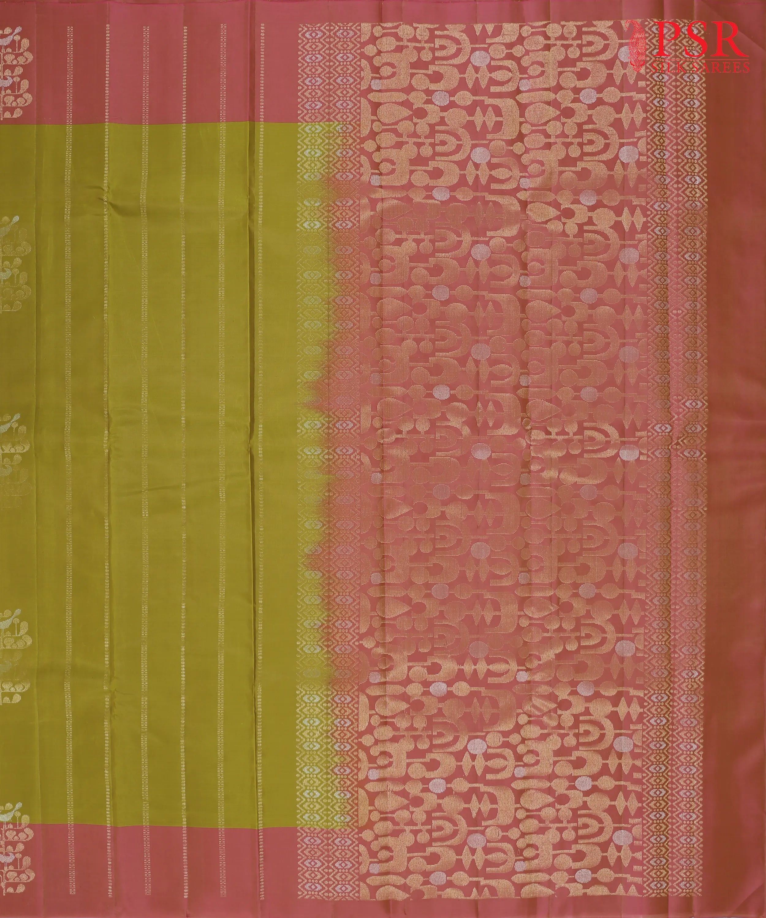 PSR Silk Sarees presents an Olive Green colored Soft Silk saree with combination of Dark Pink color.