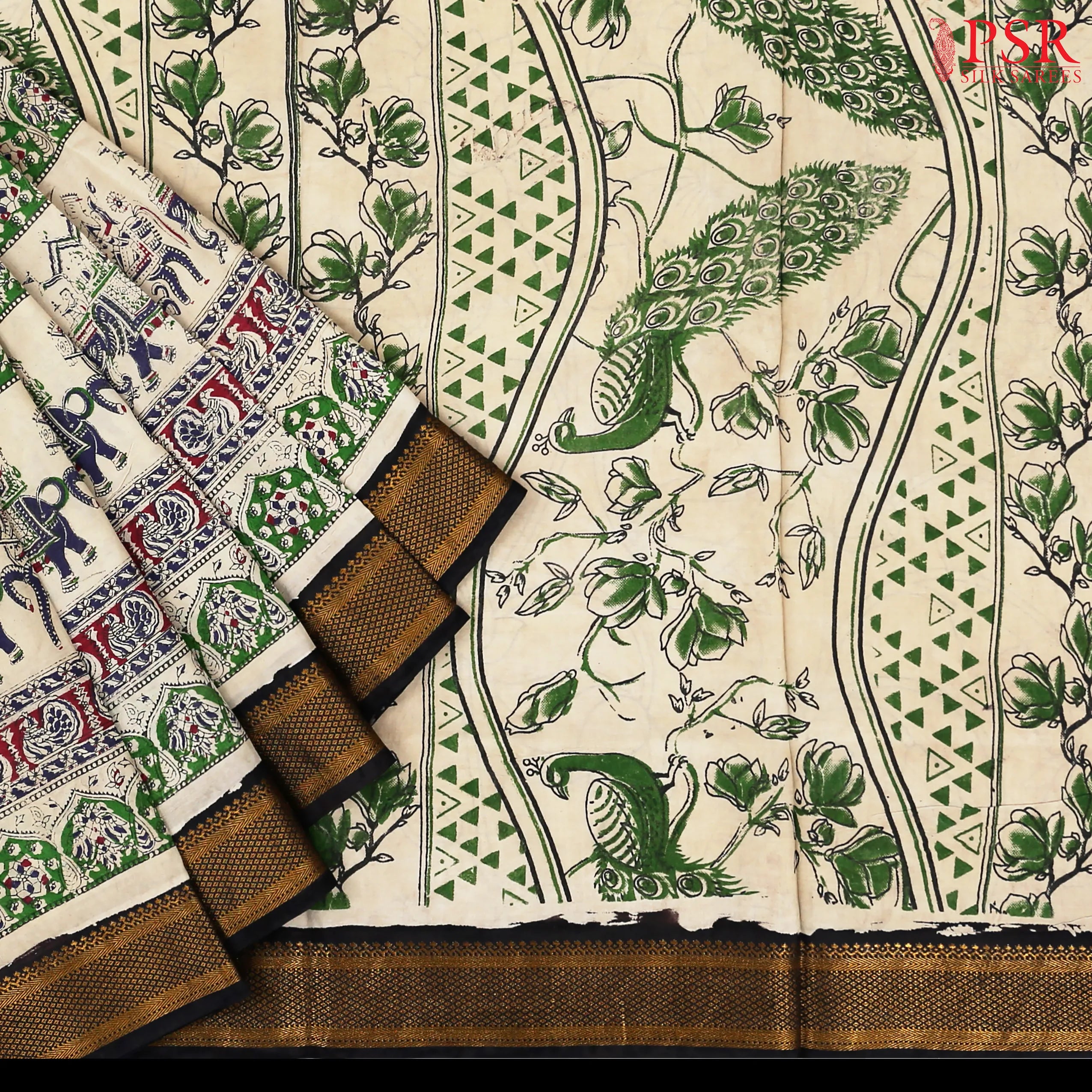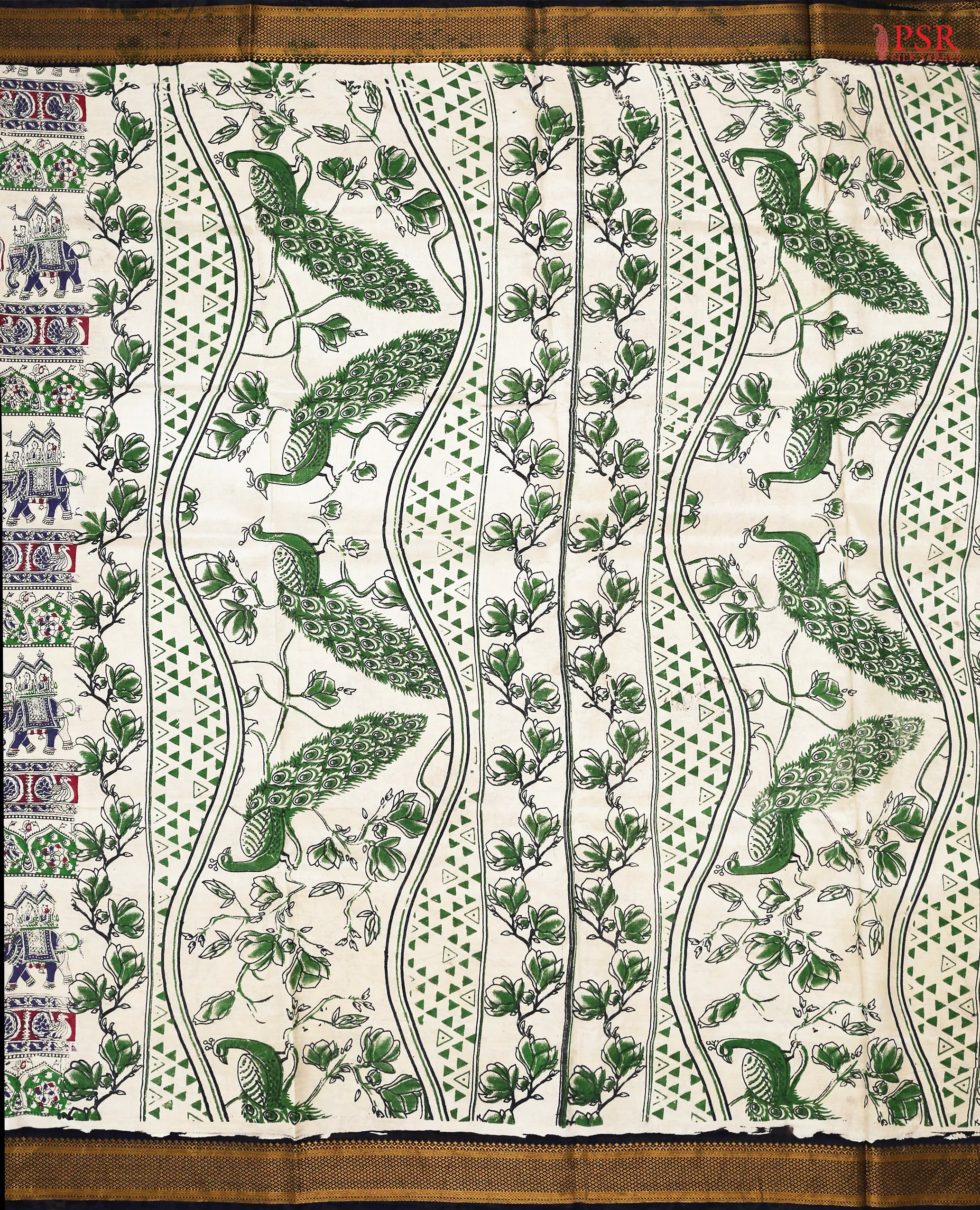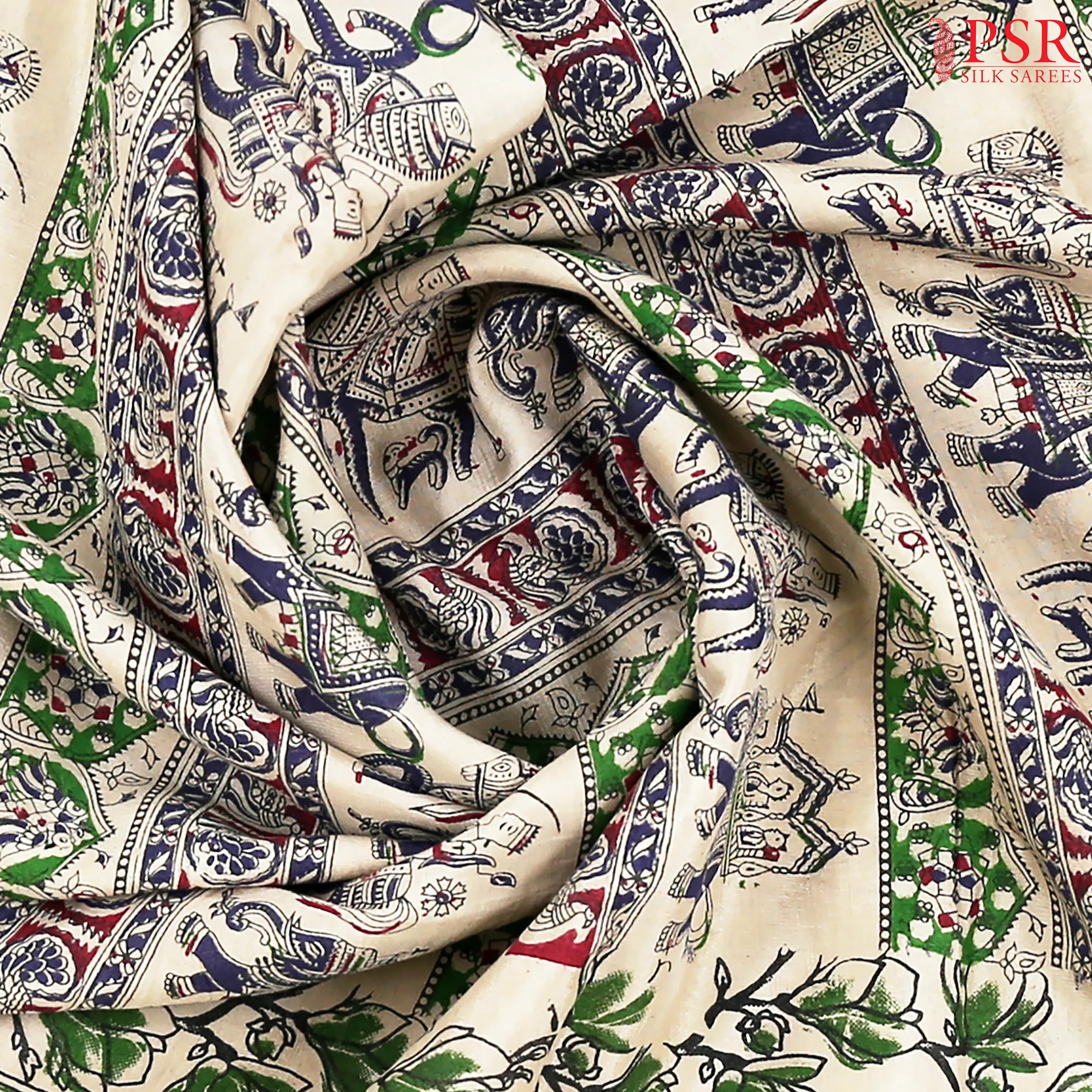 PSR Silk Sarees presents a Royal Beige Kalamkari Silk printed saree.