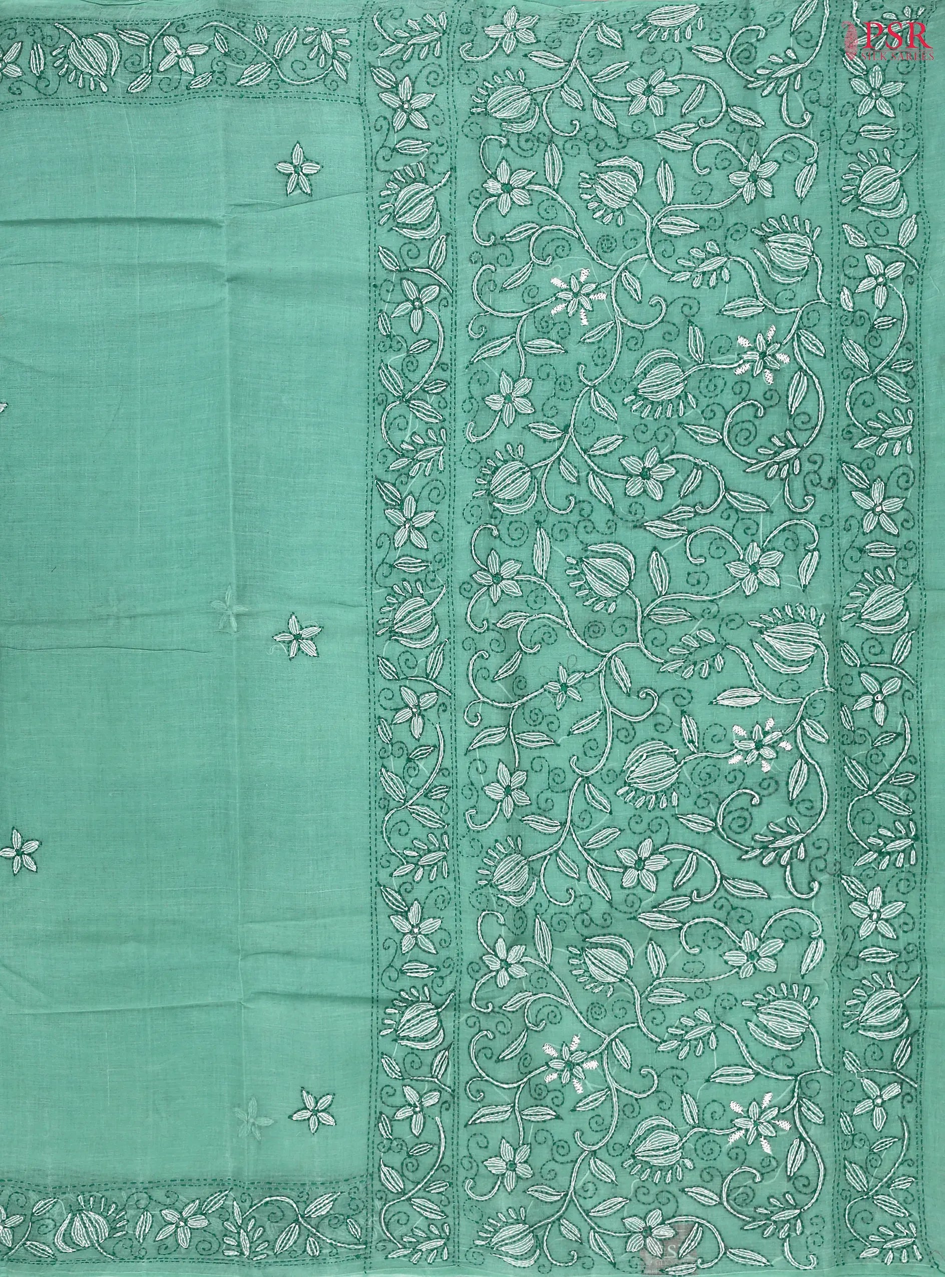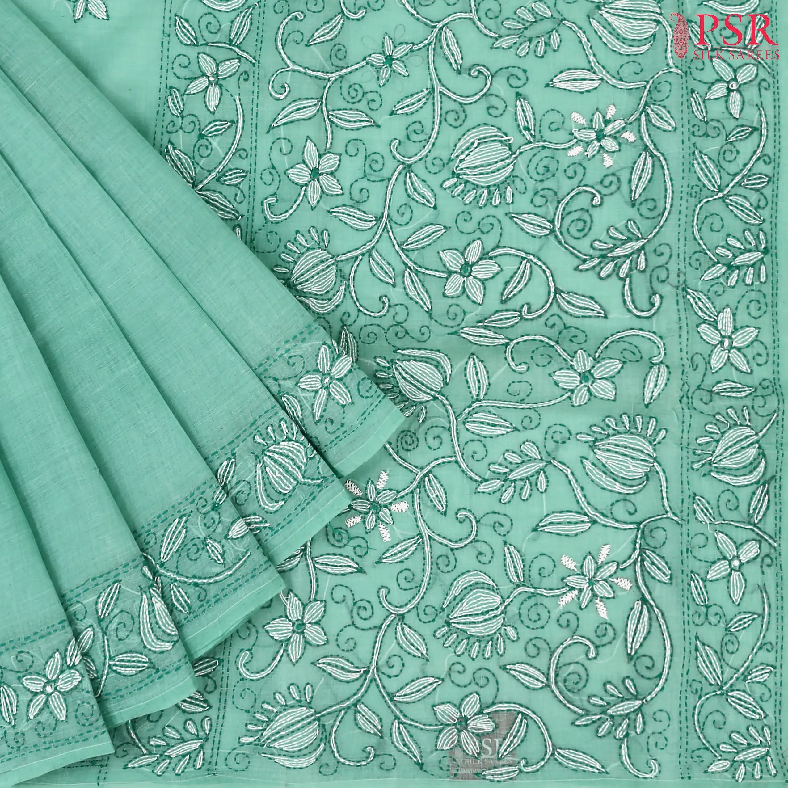PSR Silk Sarees presents an Aqua Pearl colored Bengal Cottton saree.