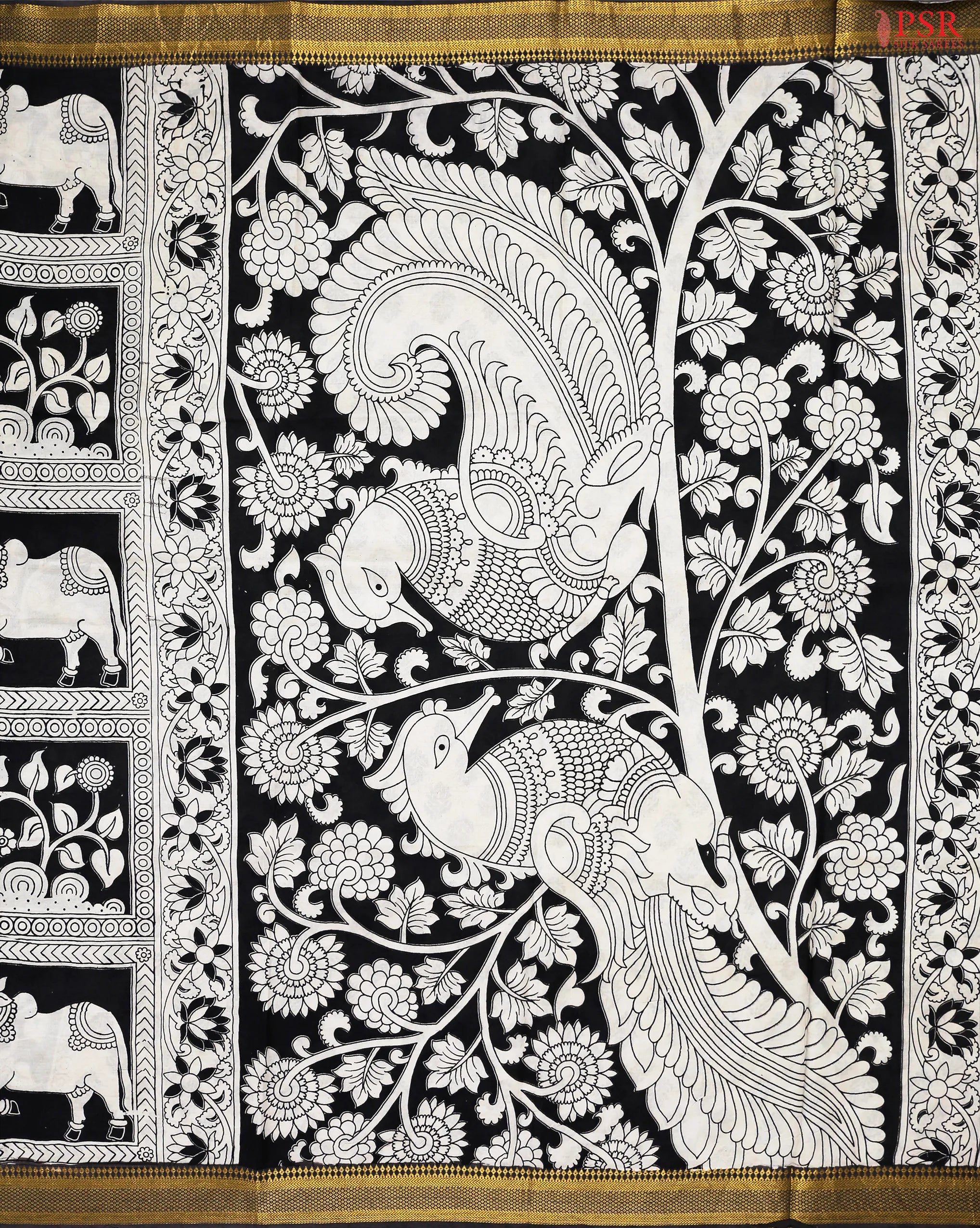 PSR Silk Sarees presents a Beige & Black Kalamkari Silk printed saree.