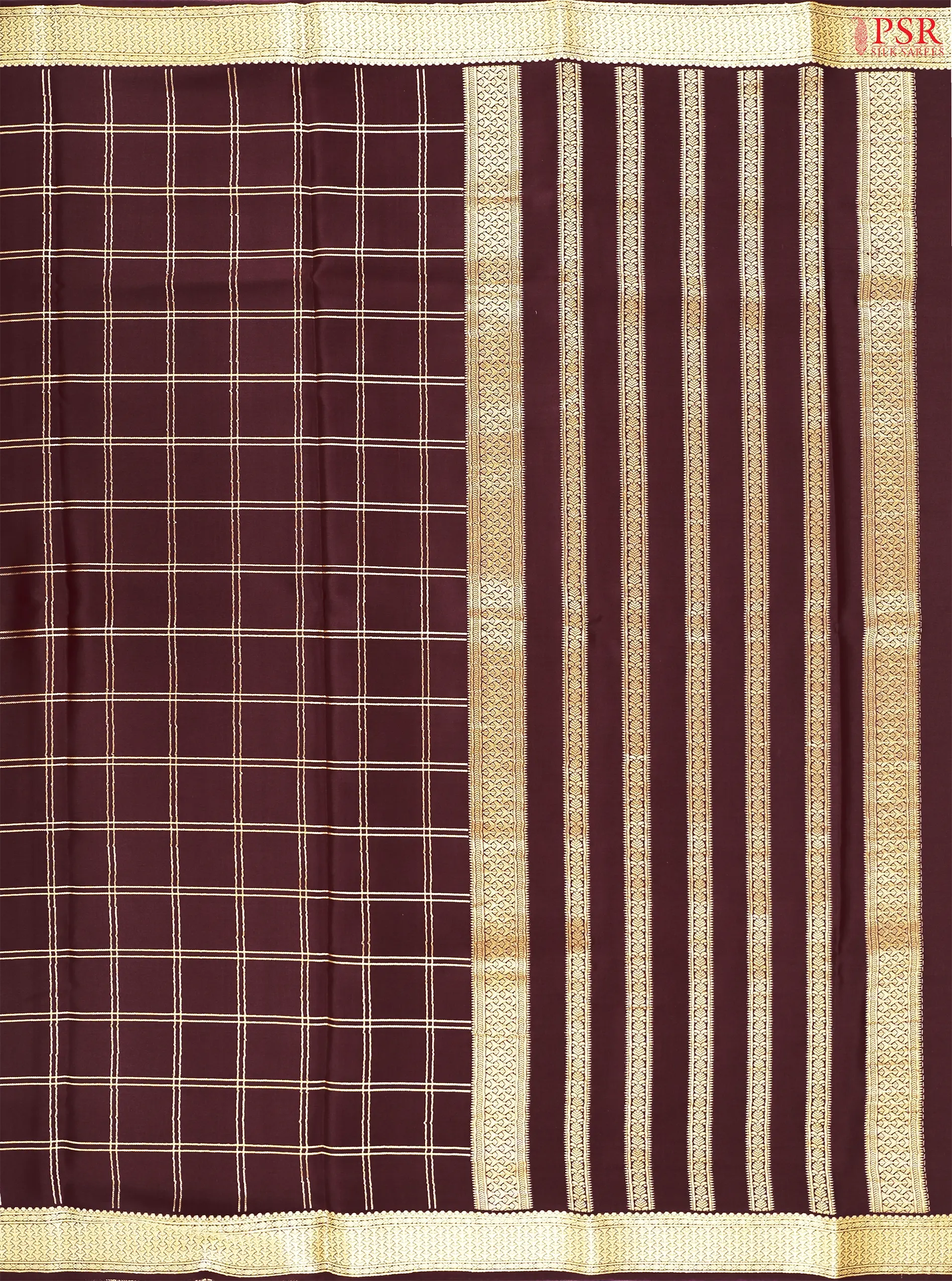 PSR Silk Sarees presents a stunning Brown Mysore Silk Saree, crafted in smooth and luxurious fabric that drapes beautifully with classic elegance.