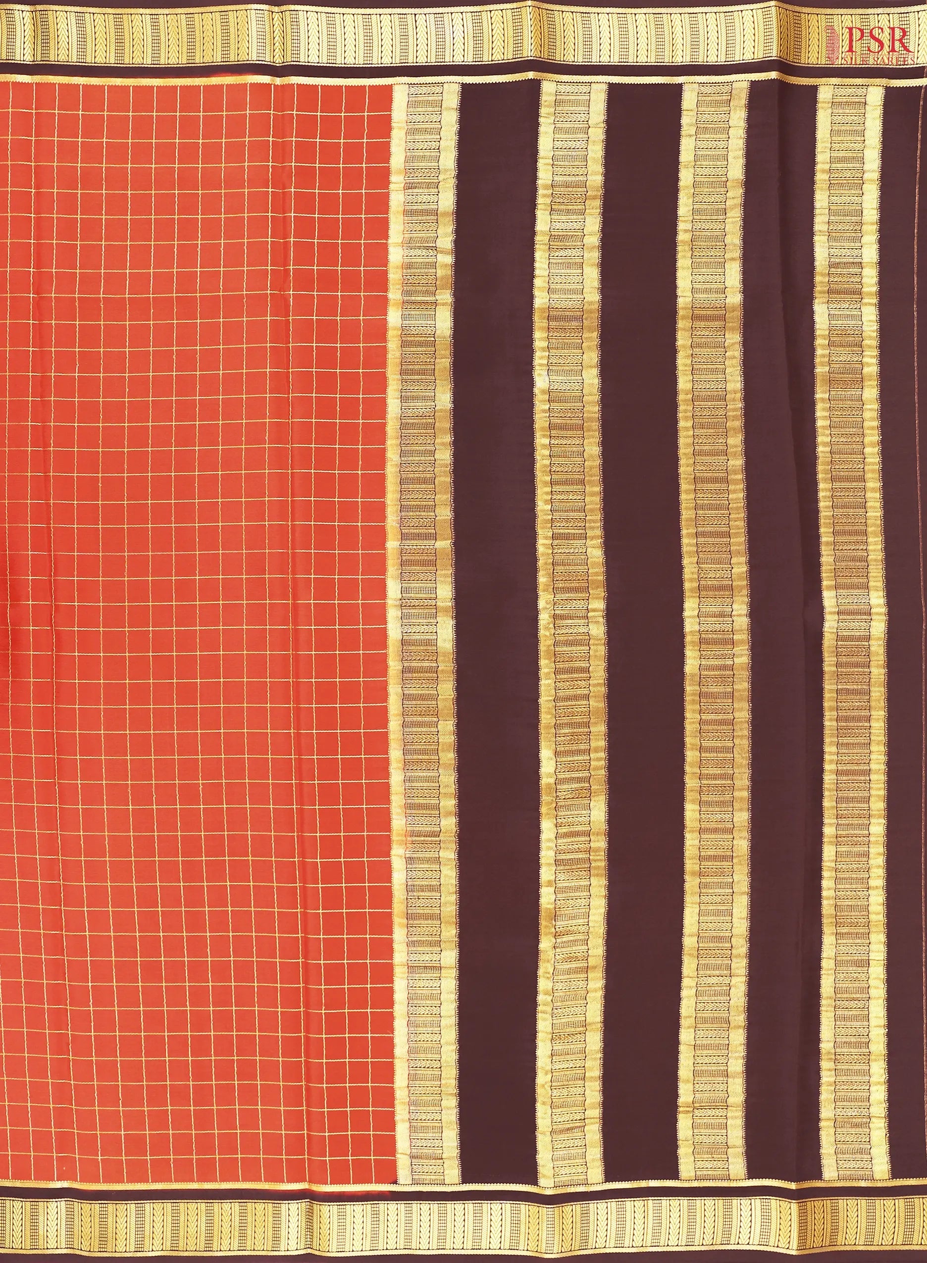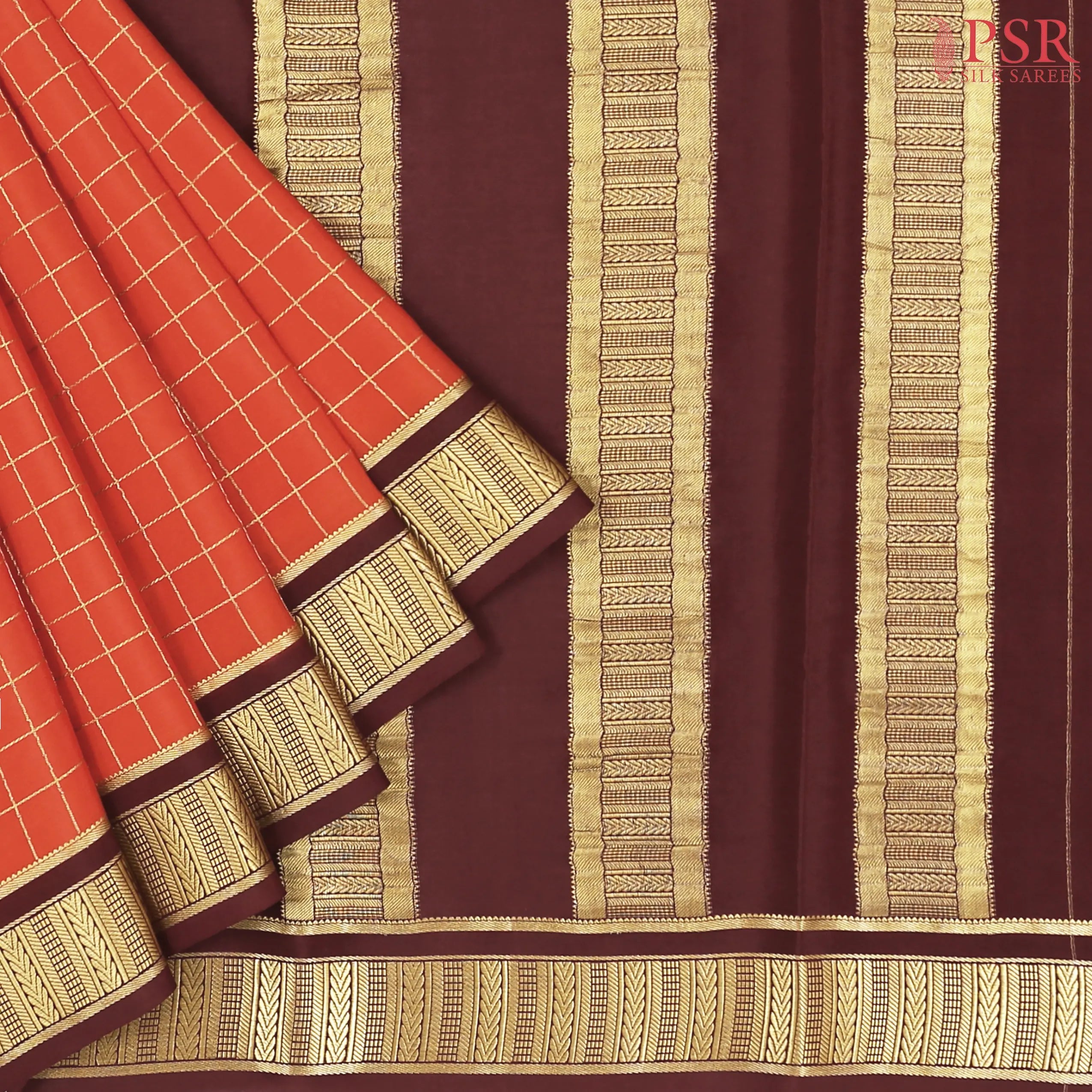 Burnt Orange & Brown Mysore Silk Saree | PSR Silk Sarees