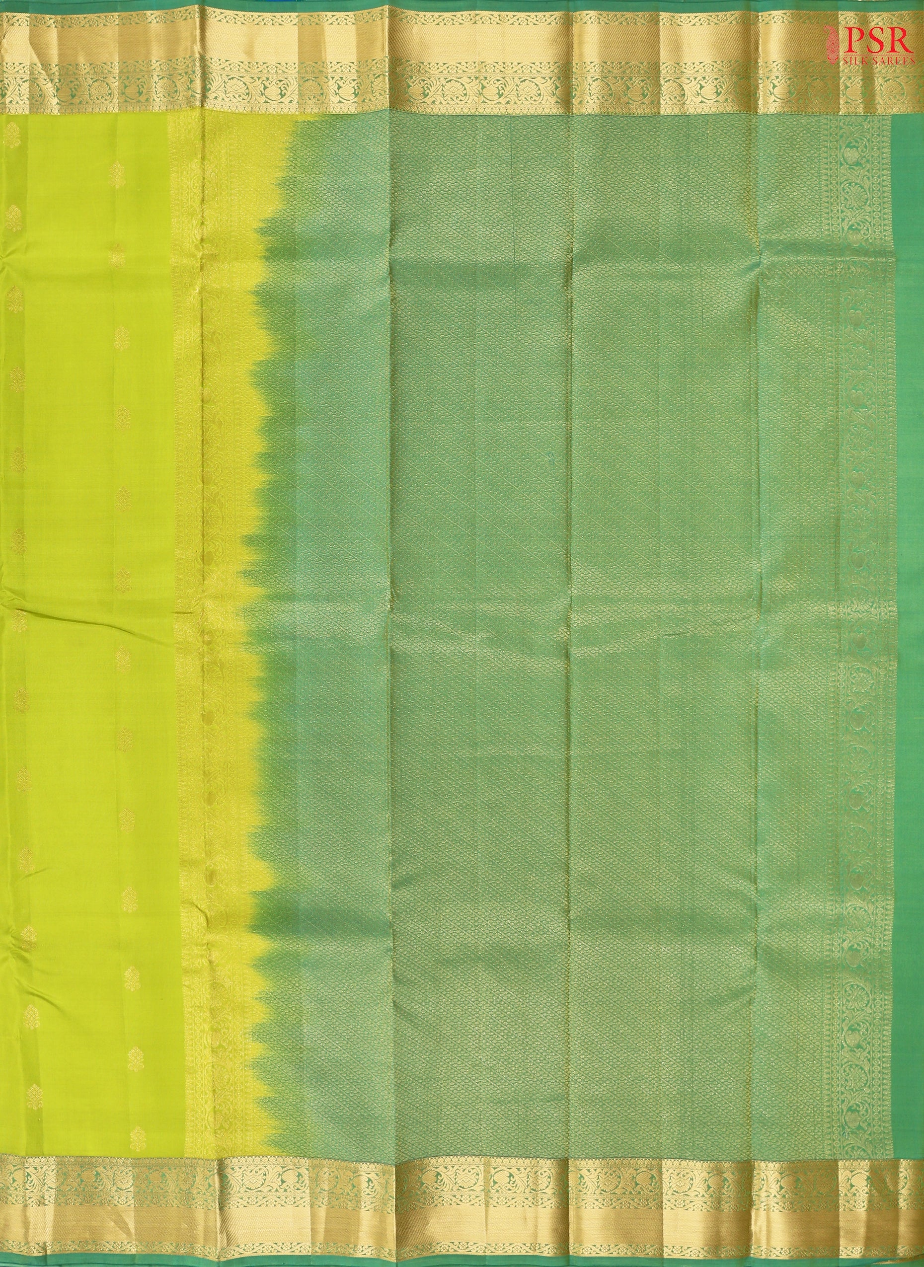 PSR Silk Sarees presents a Chartreuse Green colored Fancy Kanchipuram Silk with combinaion of Jade Green color.