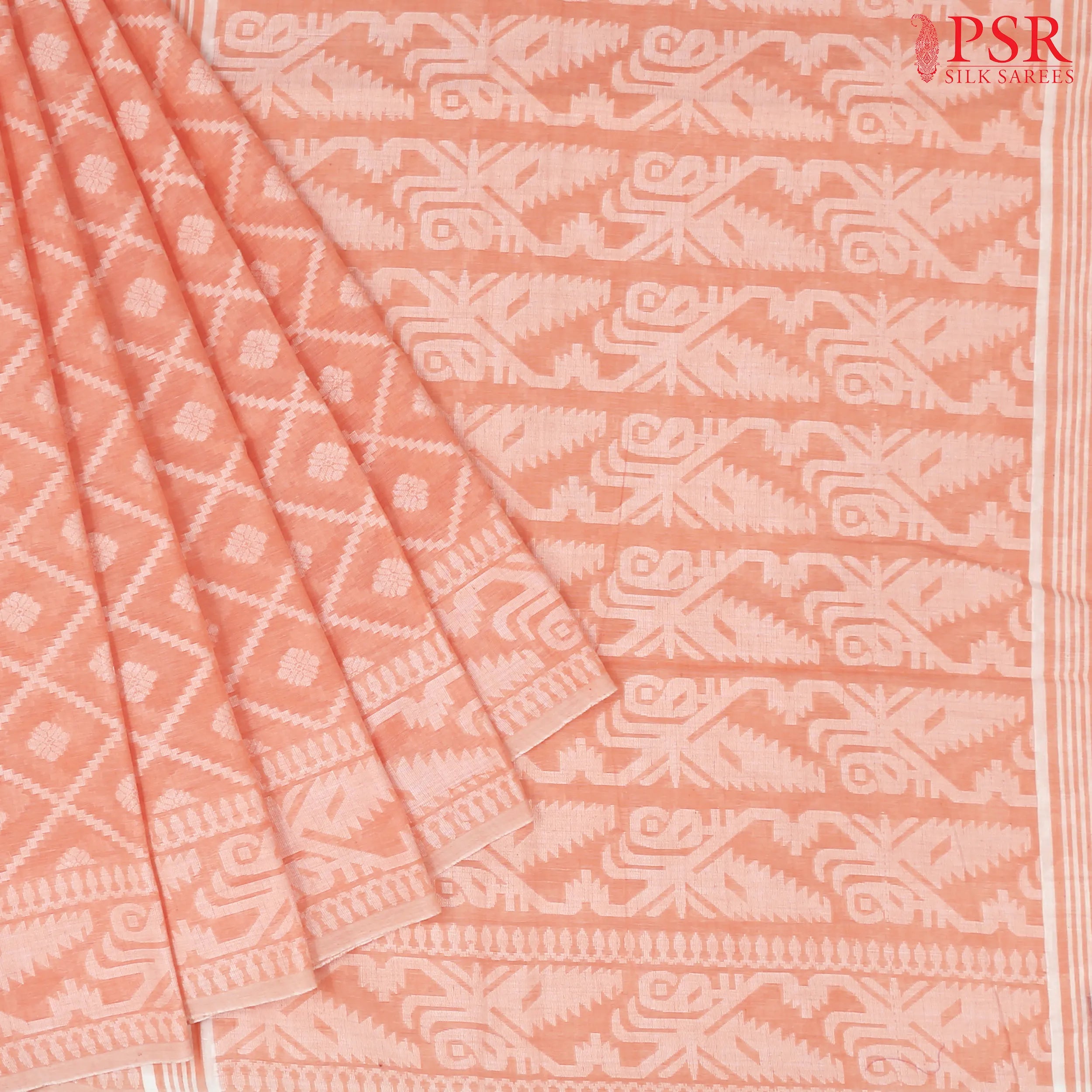 PSR Silk Sarees presents a Light Coral Peach colored Byloom Cotton saree.