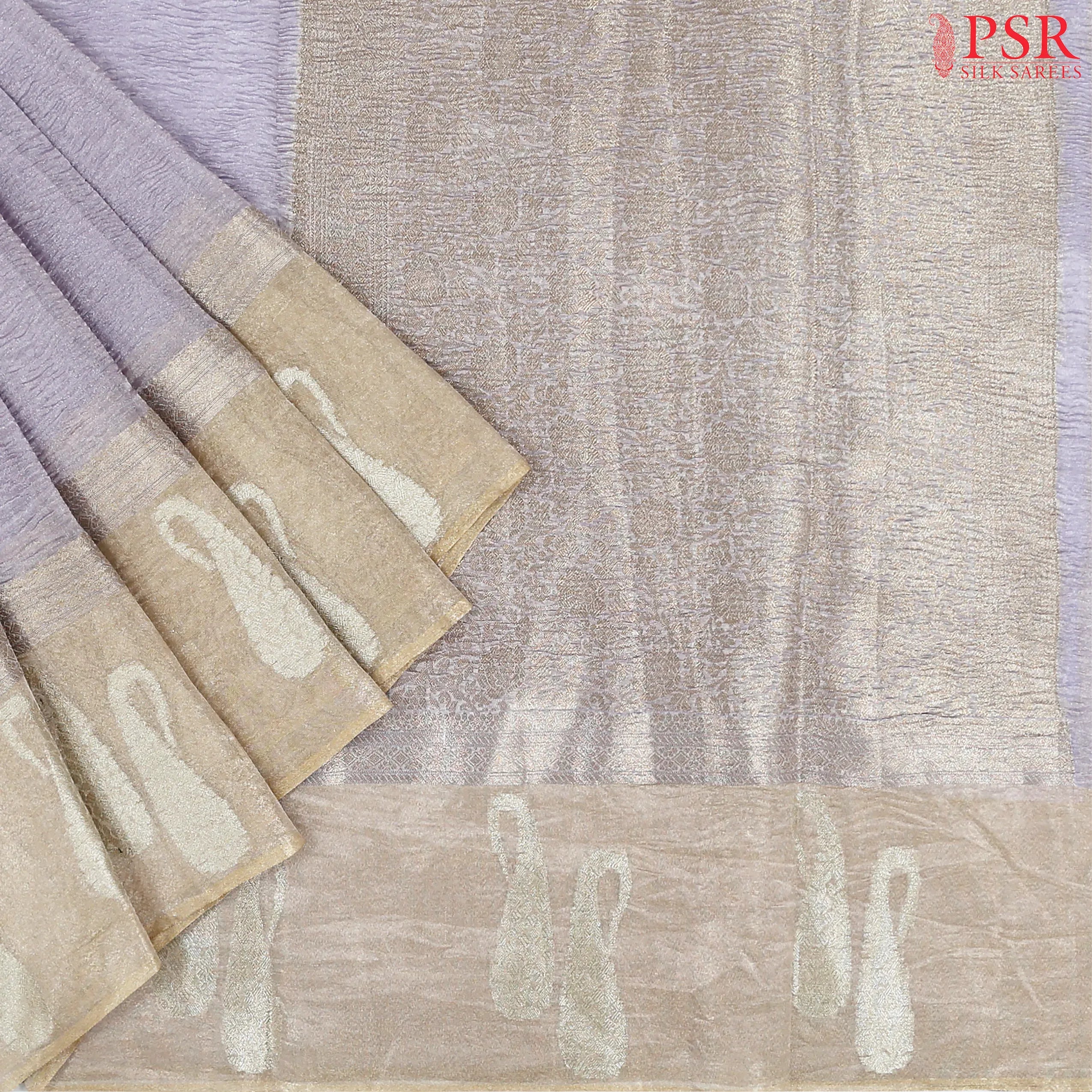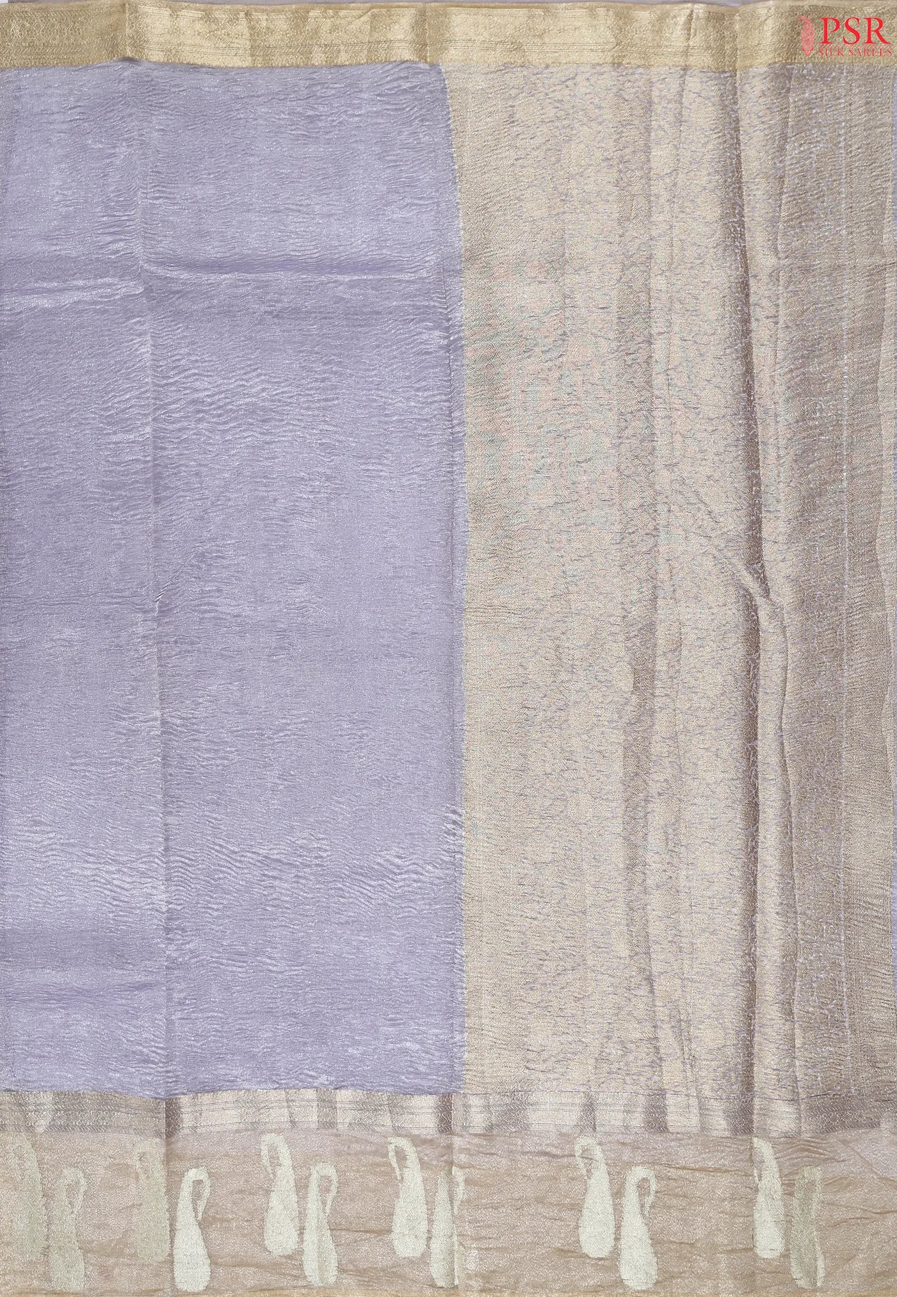 PSR Silk Sarees presents a stunning Pastel Lavender Semi Crushed Tissue Saree, designed to showcase contemporary elegance with artistic detailing.