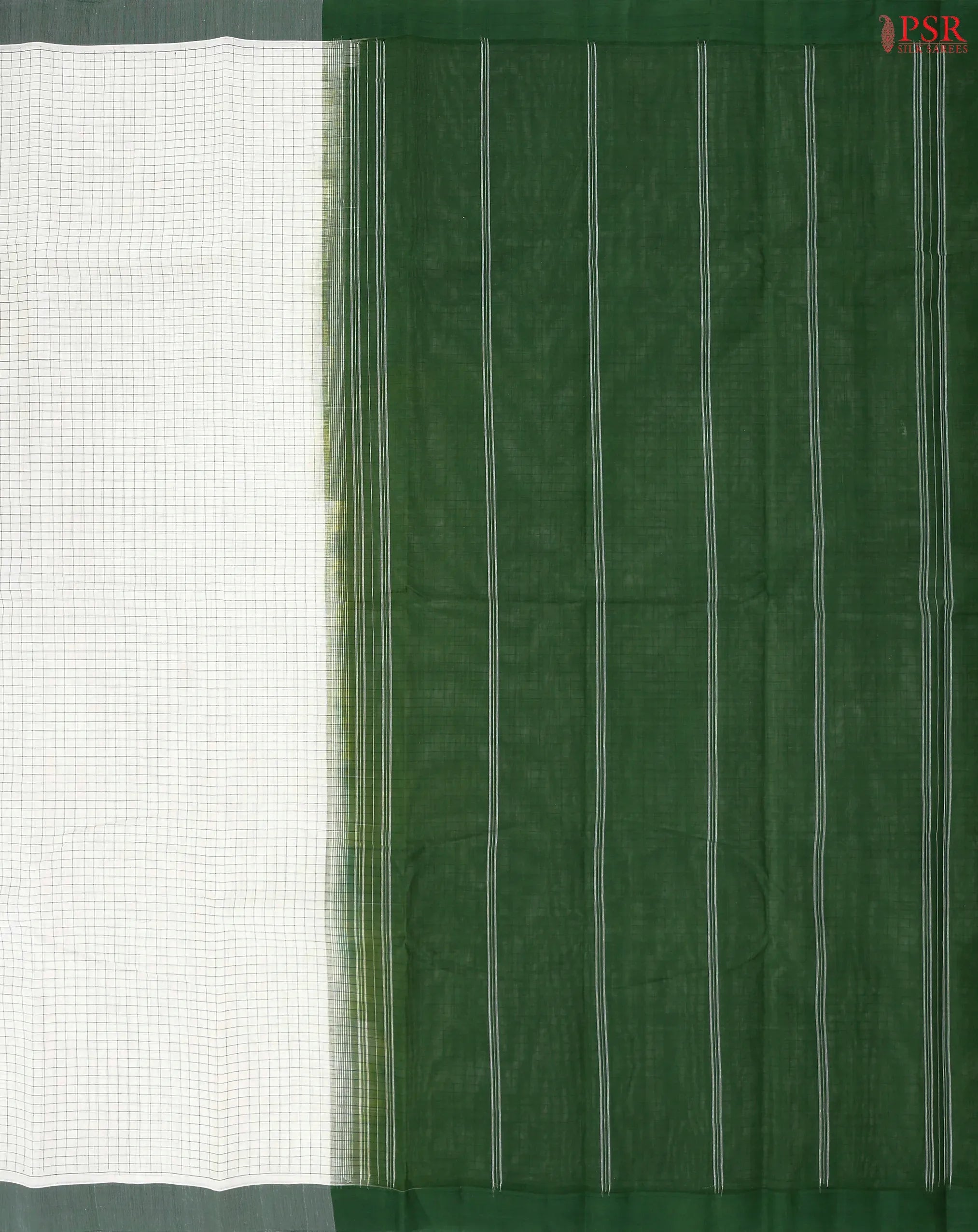 PSR Silk Sarees presents a Off White Kanchi cotton saree with combination of Dark Green color.