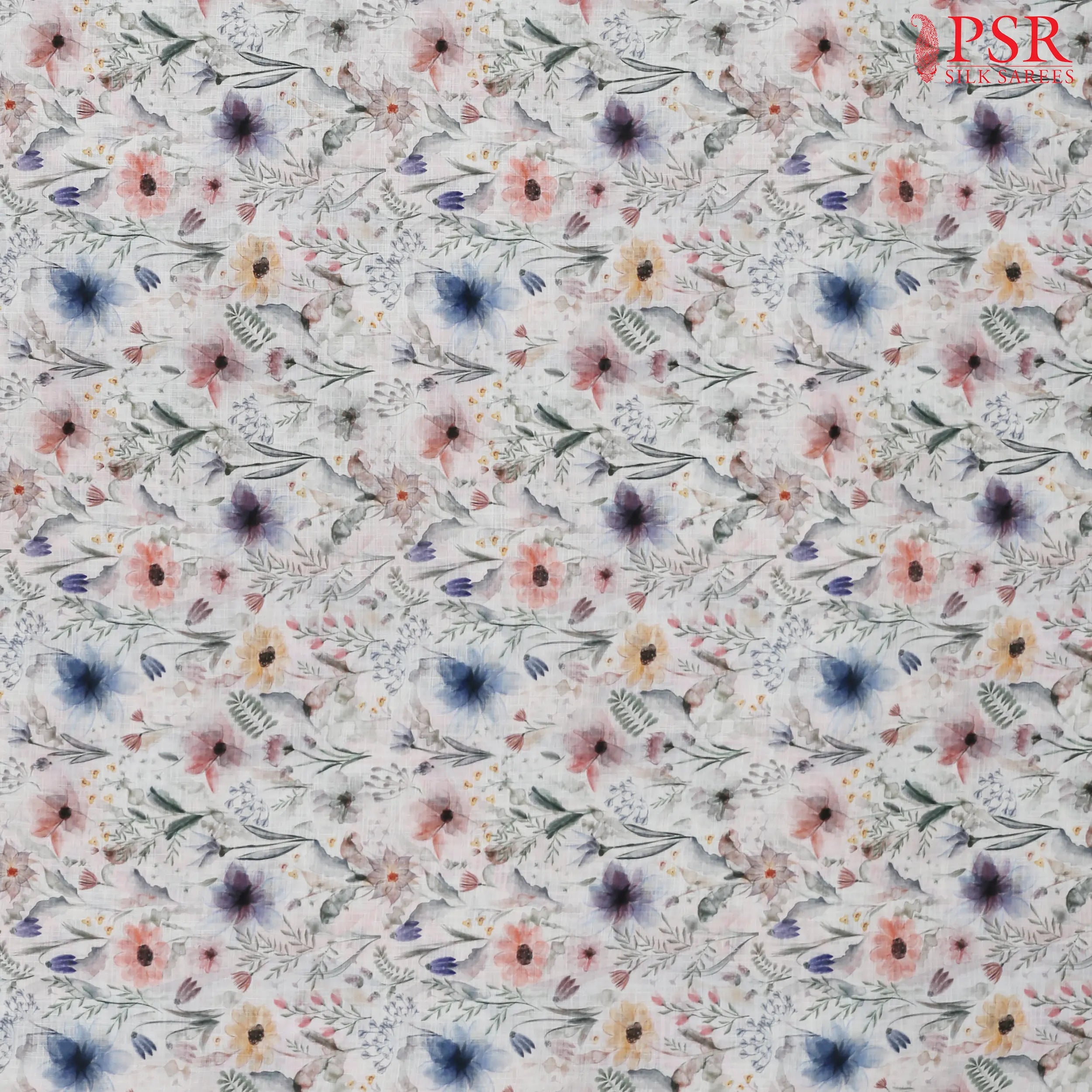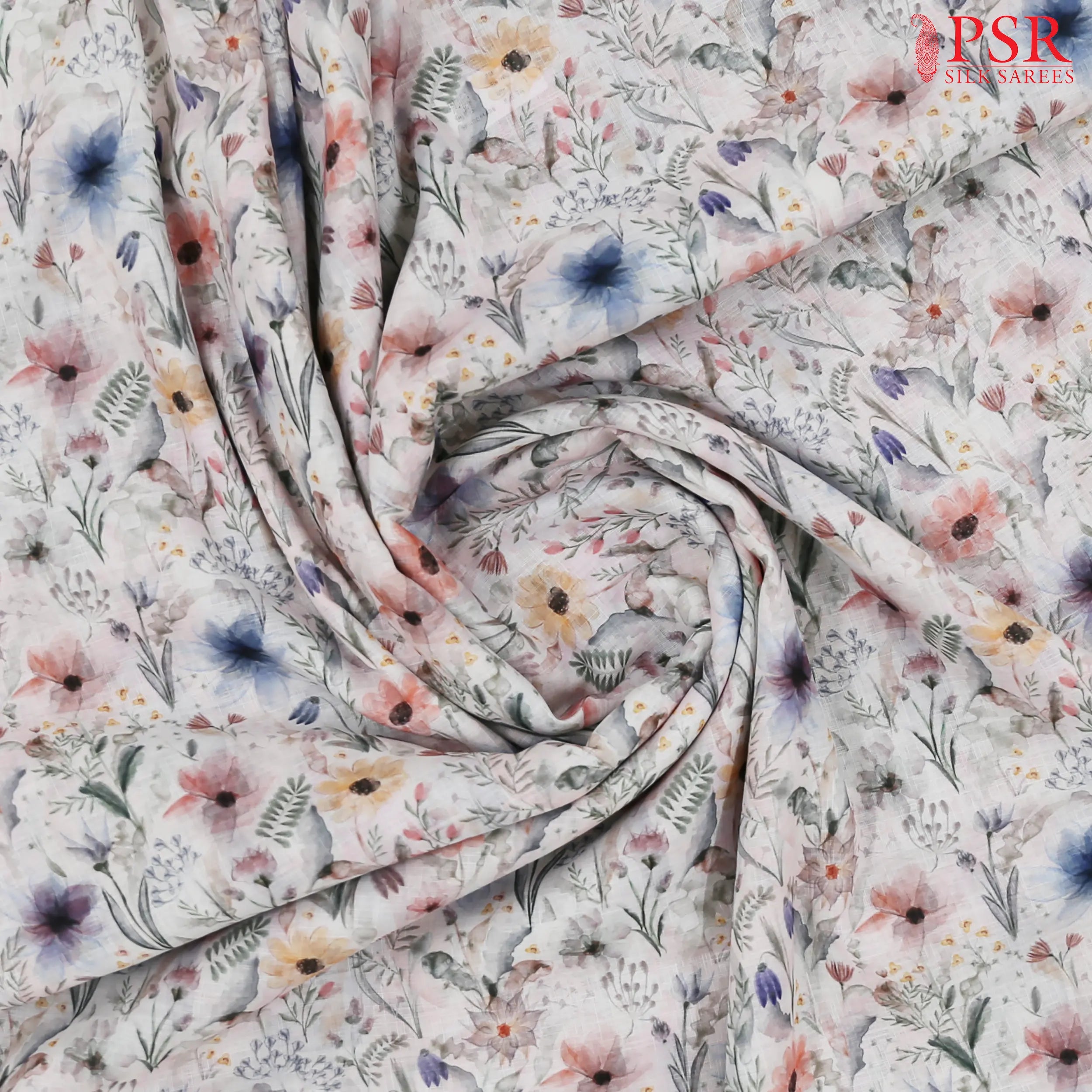 PSR Silk Sarees presents an Off White Linen floral printed Running Material