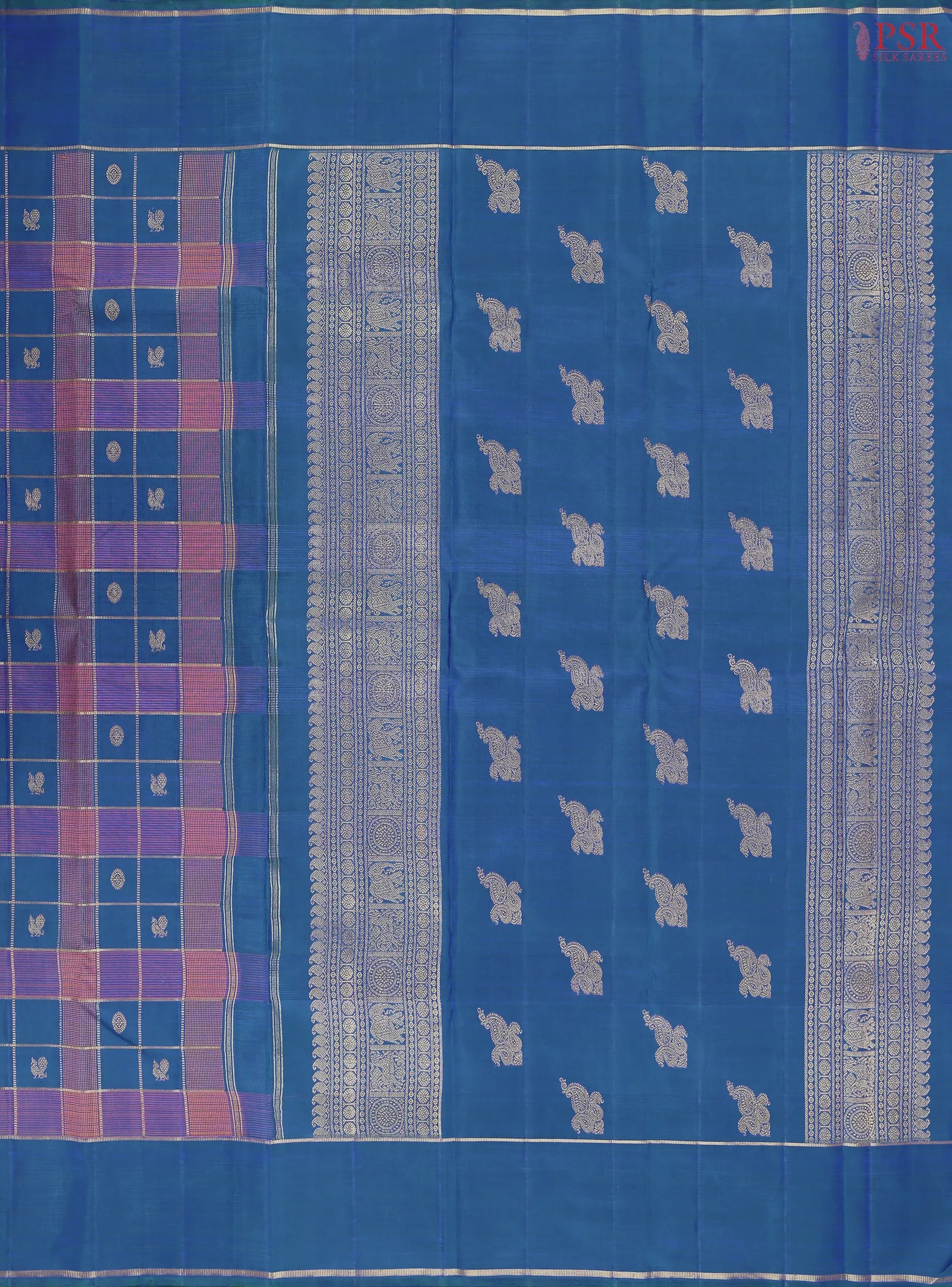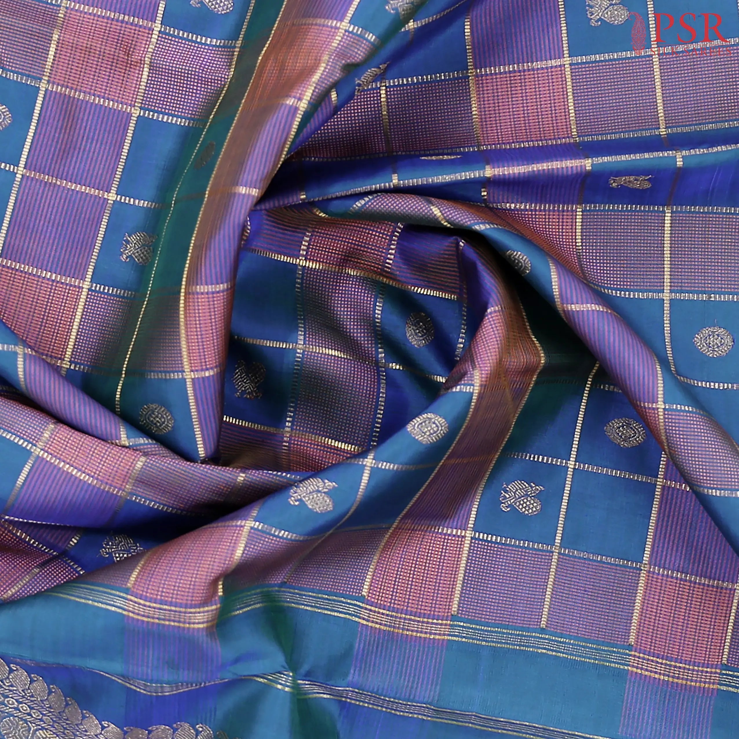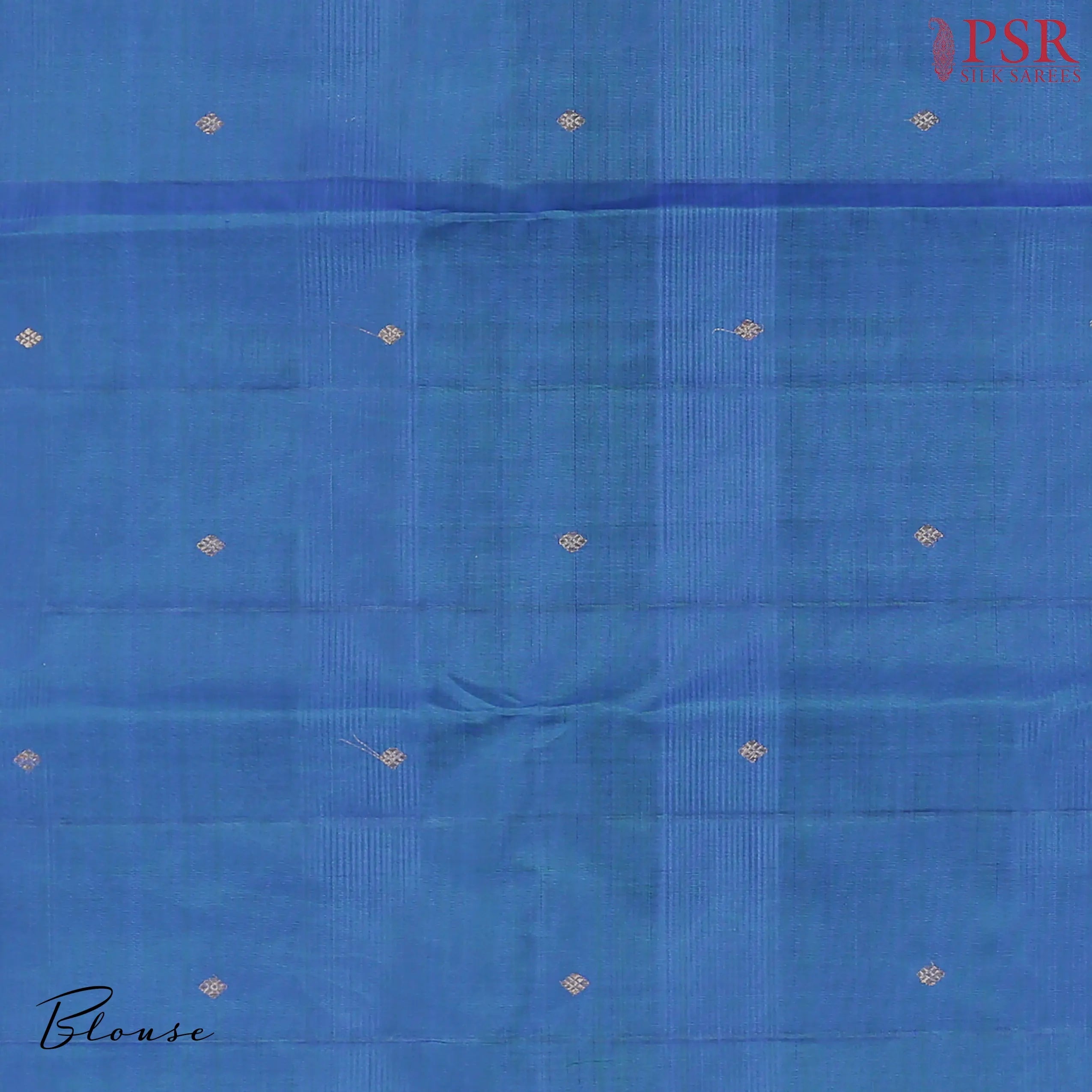 PSR Silk Sarees presents a French Blue Kanchipuram Silk saree, crafted to radiate regal elegance and timeless tradition.