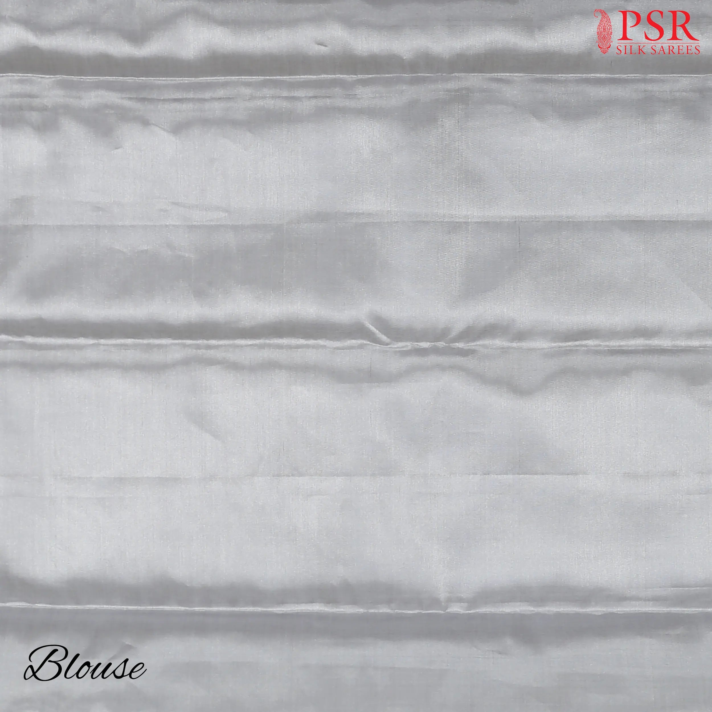 PSR Silk Sarees presents an elegant Silver Kanchipuram Tissue Jacquard Silk Saree, exuding refined beauty and traditional craftsmanship.
